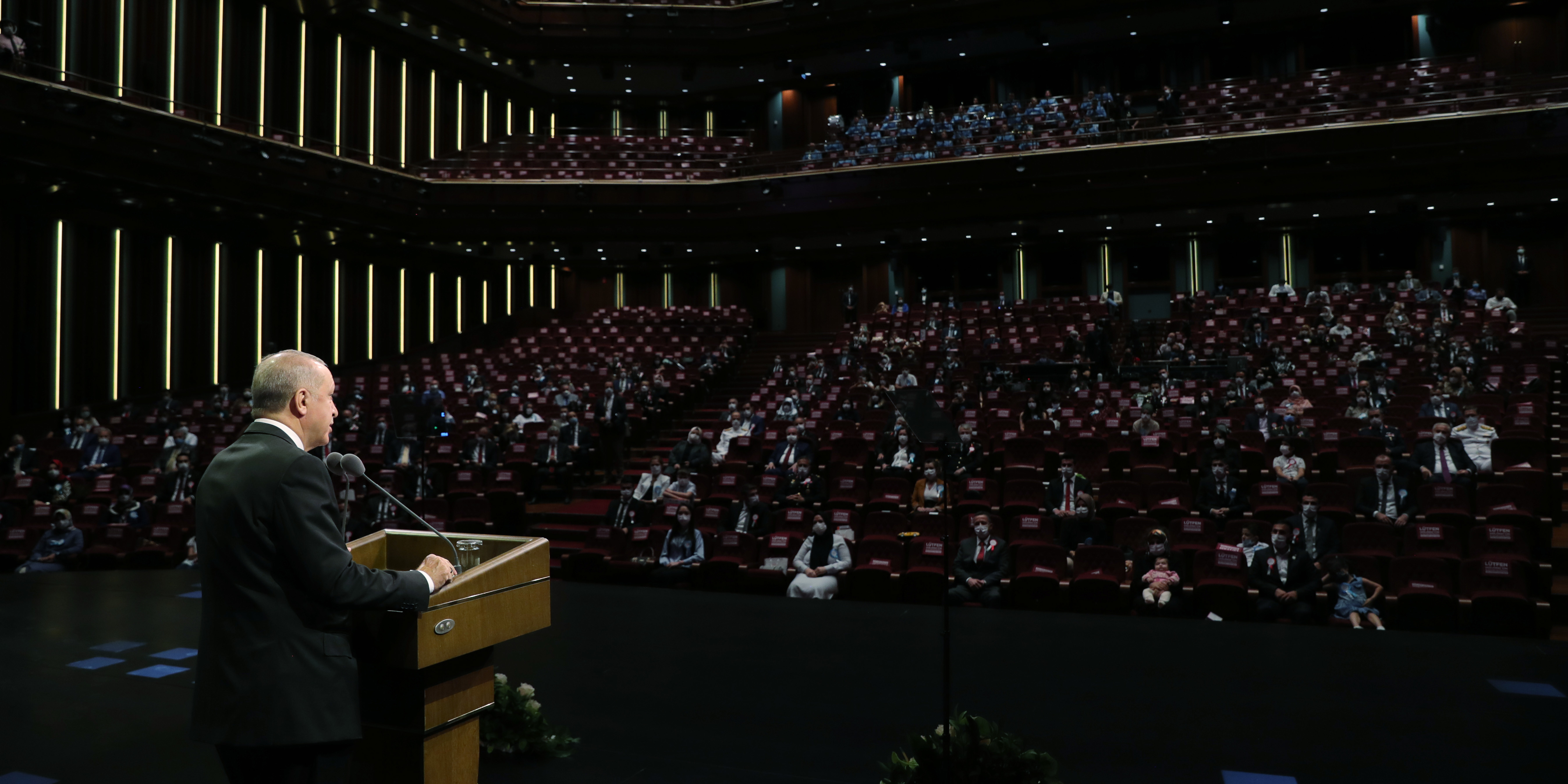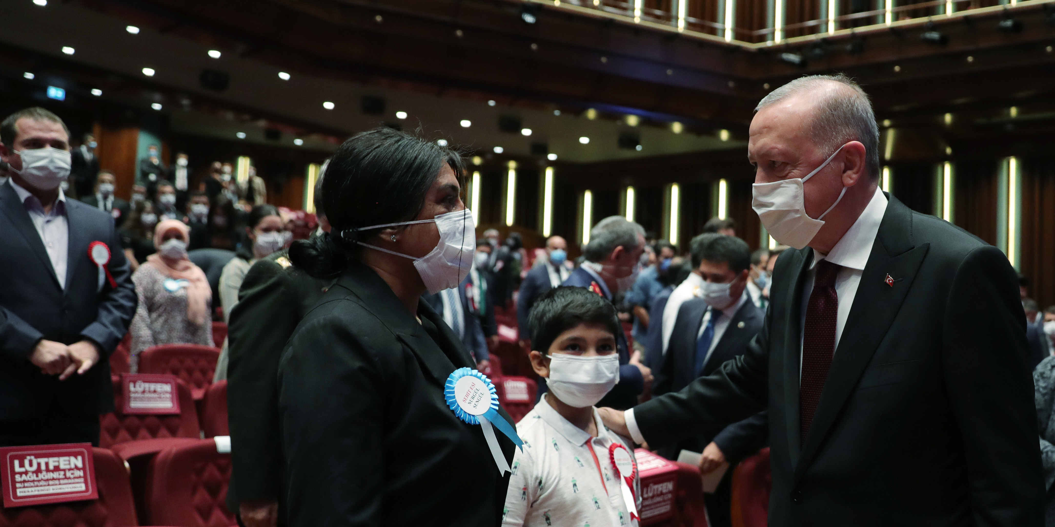 Şehitlerin emanetine, gazilerin fedakarlığına layık olmak için yaptıkları hizmetlerin en yakın şahitlerinin aileleri olduğuna değinen Cumhurbaşkanı Erdoğan, "Son 18 yılda, sizlerin ihtiyaçlarını gidermek, sorunlarına, sıkıntılarına çözüm bulmak amacıyla birçok kanuni düzenlemeyi hayata geçirdik. İstihdam hakkından gelir desteğine, eğitimden sağlık hizmetlerine hemen her alanda şehit yakını ve gazilerimizin yükünü hafifletecek adımlar attık." diye konuştu.