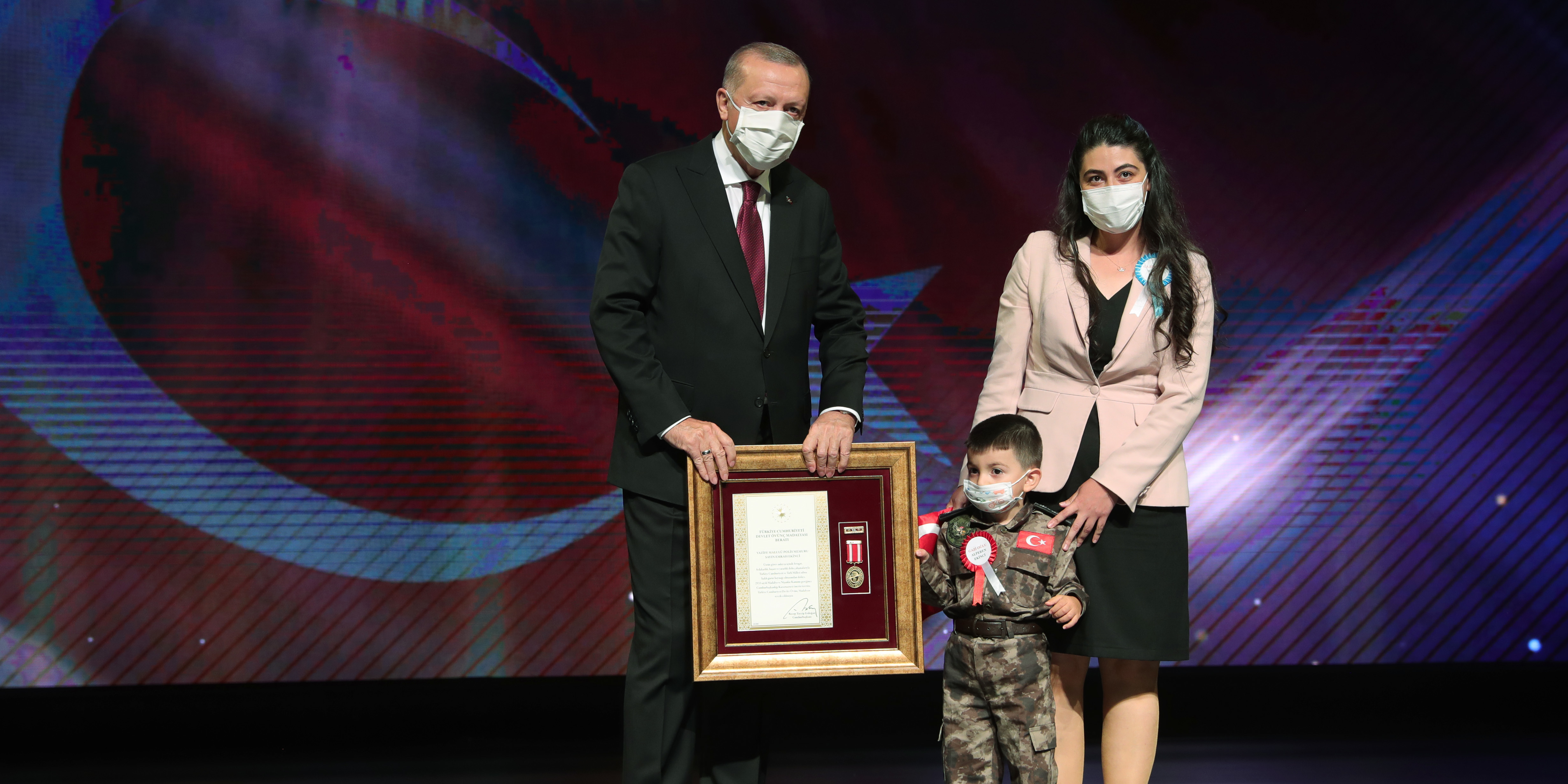 Cumhurbaşkanı Recep Tayyip Erdoğan, "Bu madalya ve beratlar elbette sizin fedakarlığınızın karşılığı olamaz. Zaten bir insanın canını ortaya koyarak yürüttüğü bir mücadeleye dünyevi olarak paha biçilmesi mümkün değildir." dedi.