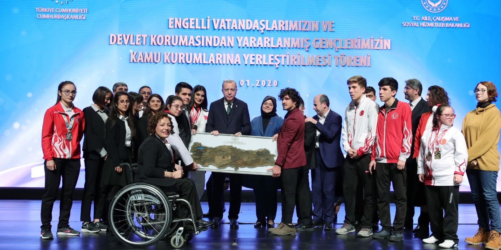 Erdoğan, bugün de her eğitim seviyesinden 1304 engelli vatandaşı kamuda işe yerleştirdiklerini, devlet korumasında yetişen gençlerden 2002'den bugüne kadar kamuya yerleştirilenlerin sayısının 29 bine ulaştığını bildirdi.