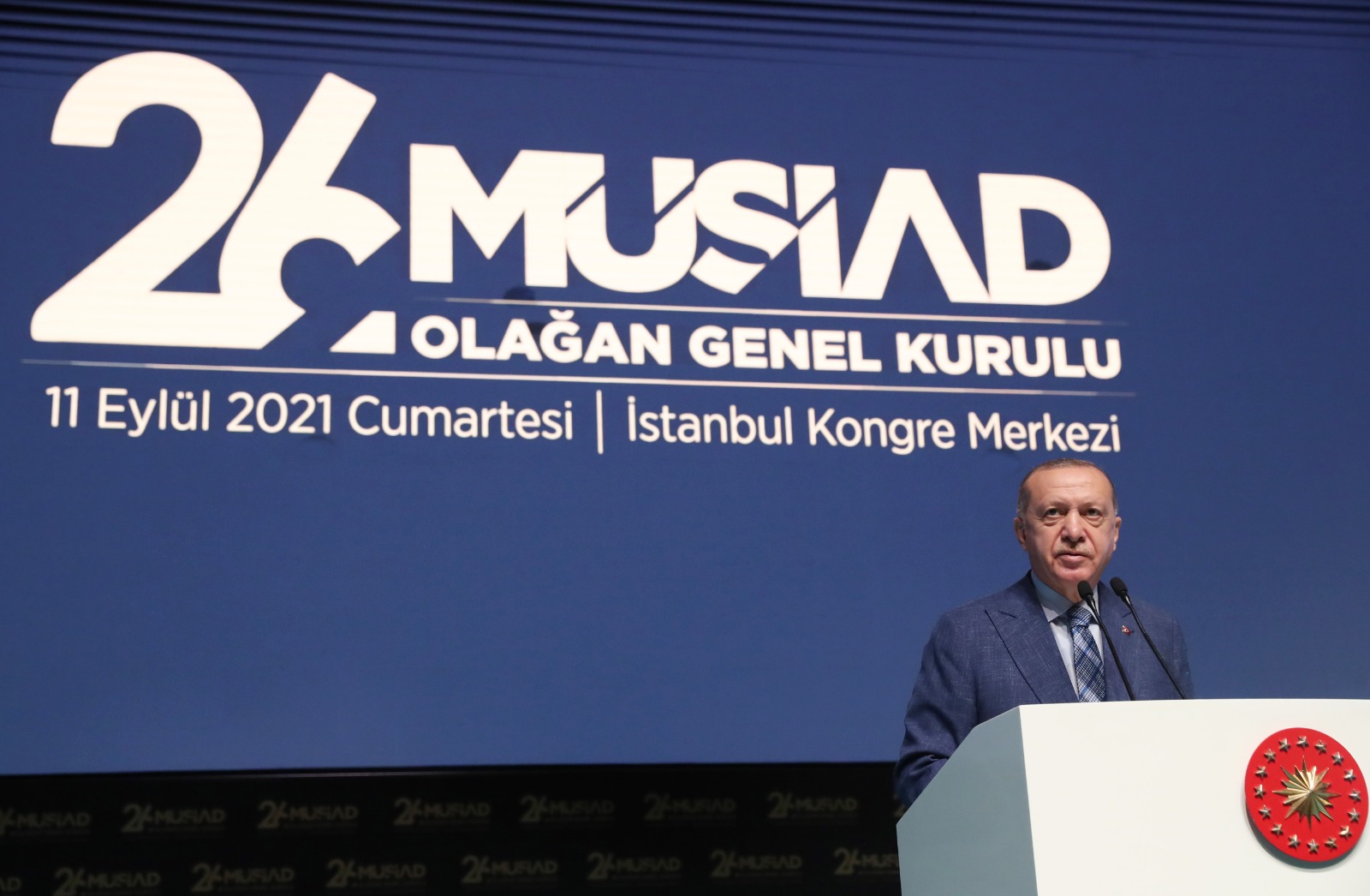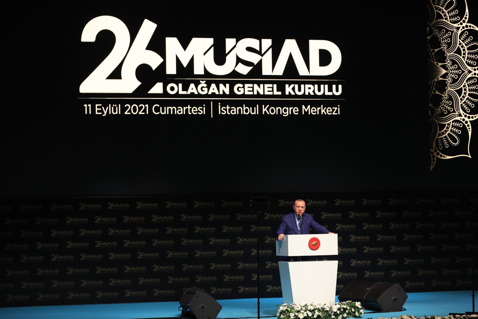 Cumhurbaşkanı Erdoğan, İstanbul Kongre Merkezi'nde düzenlenen MÜSİAD 26. Olağan Genel Kurulu'nda yaptığı konuşmada, MÜSİAD'ın kurulduğu 1990 yılı Türkiye'sinin asırlara sari demokrasi ve kalkınma mücadelesinin en kritik, en karakteristik dönemlerinden biri olduğunu söyledi.