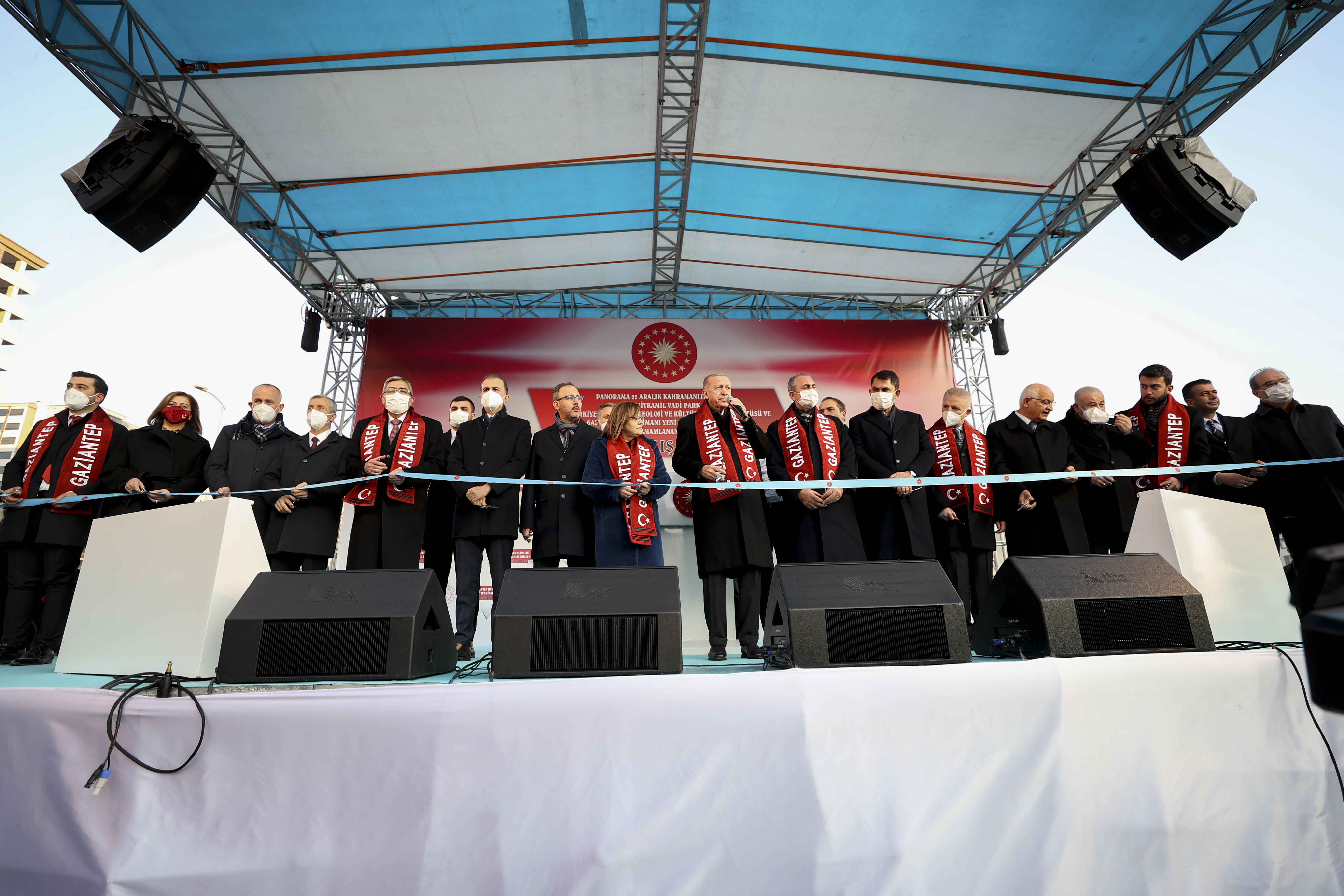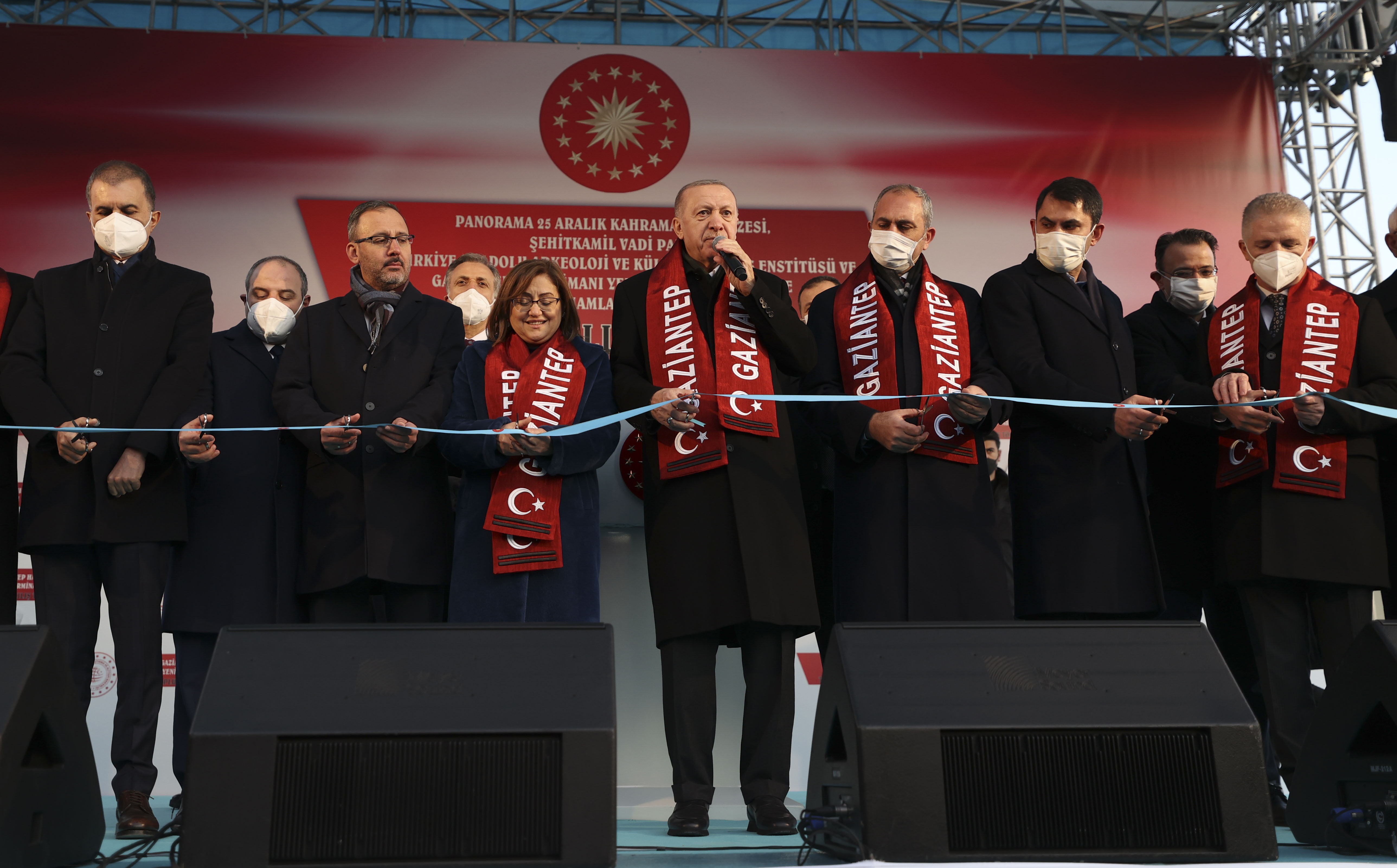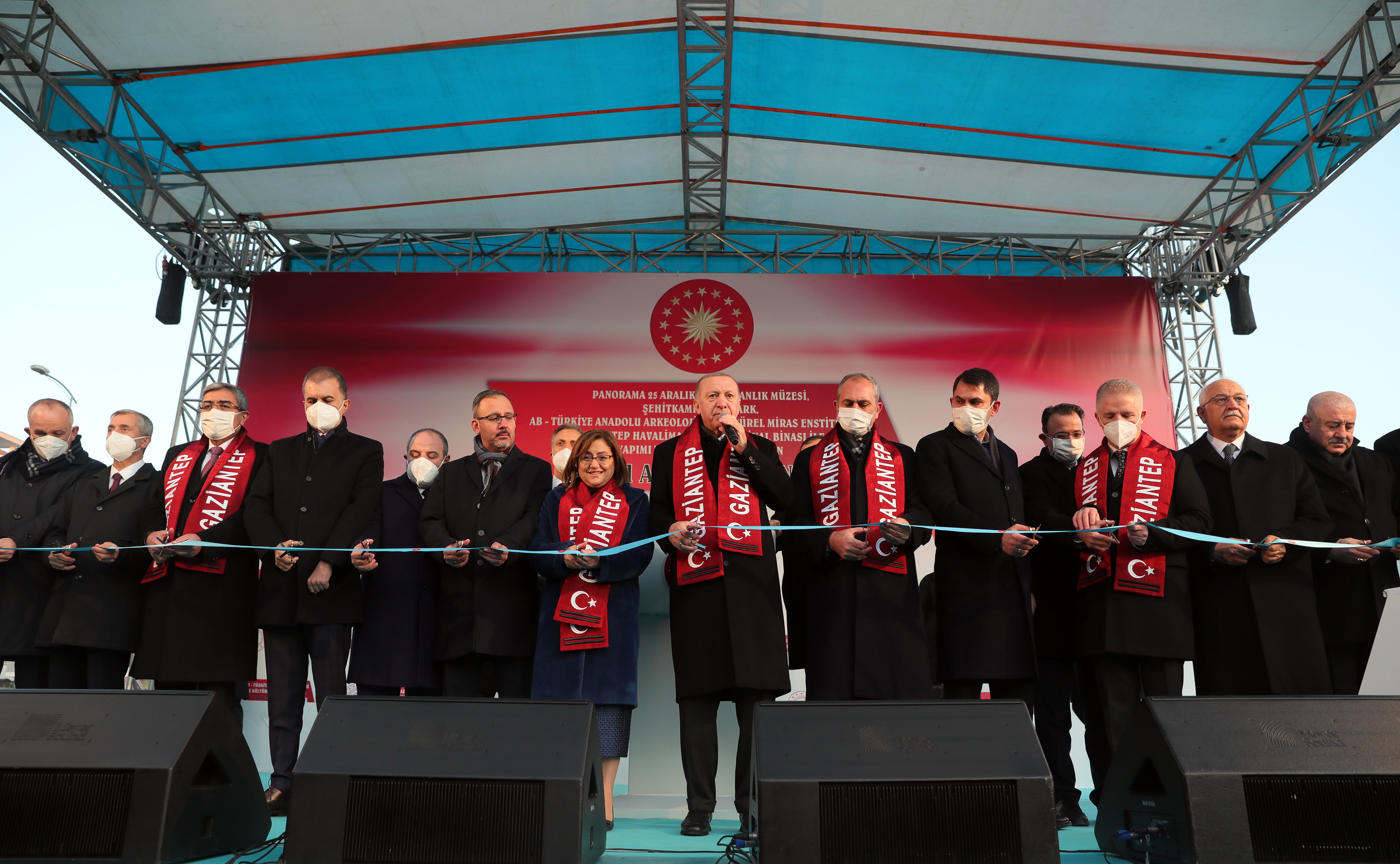 Cumhurbaşkanı Erdoğan, Şahinbey Kültür Merkezi yanında düzenlenen, "Panorama 25 Aralık Kahramanlık Müzesi, Şehitkâmil Vadi Park, AB-Türkiye Anadolu Arkeoloji ve Kültürel Miras Enstitüsü ve Gaziantep Havalimanı Yeni Terminal Binası ile Yapımı Tamamlanan Projelerin Açılış Töreni"ne katıldı.