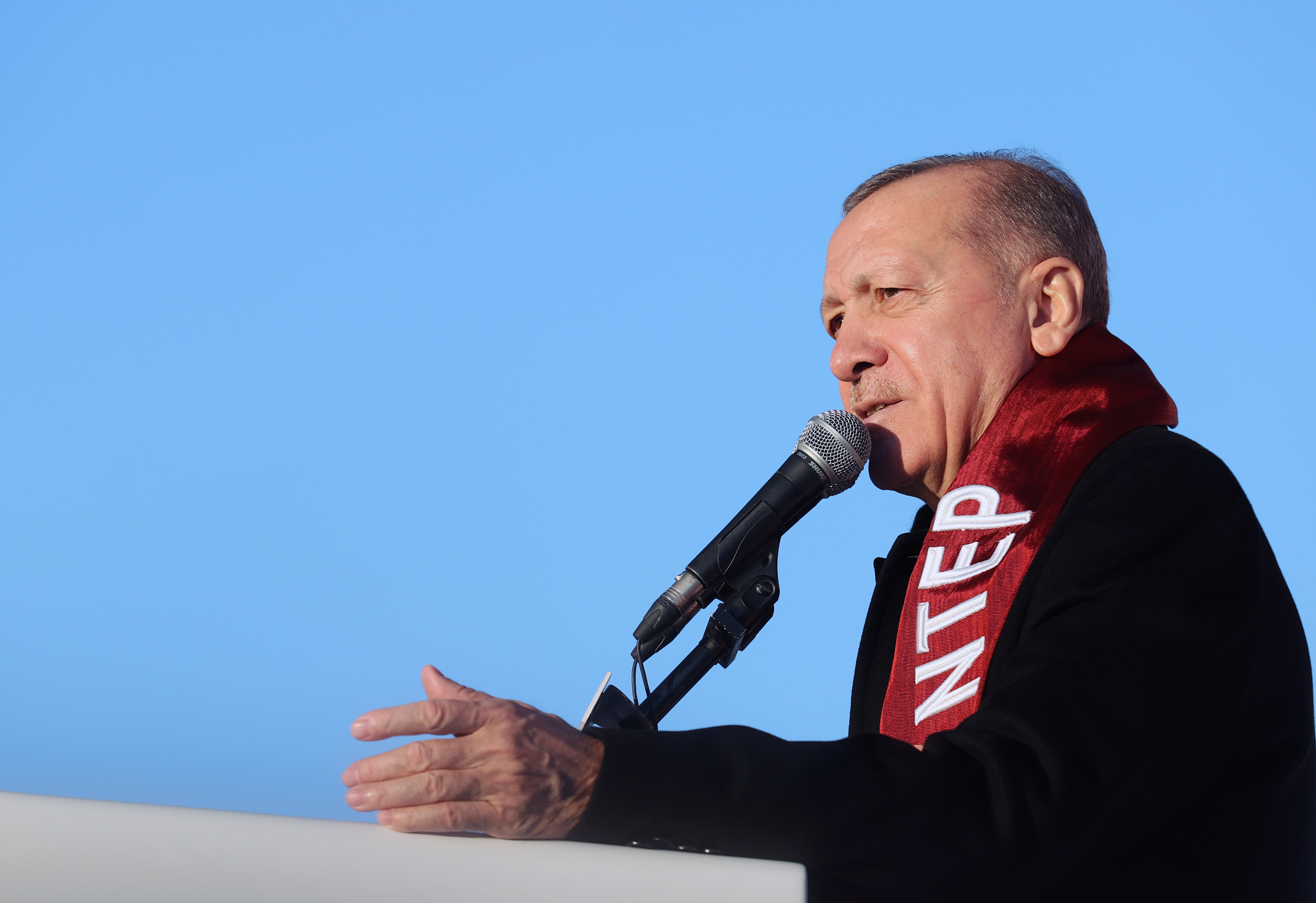 "Öyle bir ses verin ki duymayan kulak duysun, nasırlaşmış yürekler titresin." ifadesini kullanan Cumhurbaşkanı Erdoğan, katılımcılara seslenerek, "Gaziantep, büyük ve güçlü Türkiye için 2023'te bir kez daha bizimle olmaya var mısın? Gaziantep, ülkemizin 20 yıllık kalkınma mücadelesini zirveye çıkarmaya var mısın? Gaziantep, devleti ve milletiyle bu ülkeyi yeniden bölgesinde ve dünyada liderliğe taşımaya var mısın? Rabb'im şu coşkuyla yükselen sesler, kalpten edilen dualar, akıtılan gözyaşları, yeşeren umutlar hürmetine bu ülkeyi ve bu milleti esirgesin, feraha eriştirsin, hedefleriyle buluştursun. Rabb'im hepinizden razı olsun." dedi.