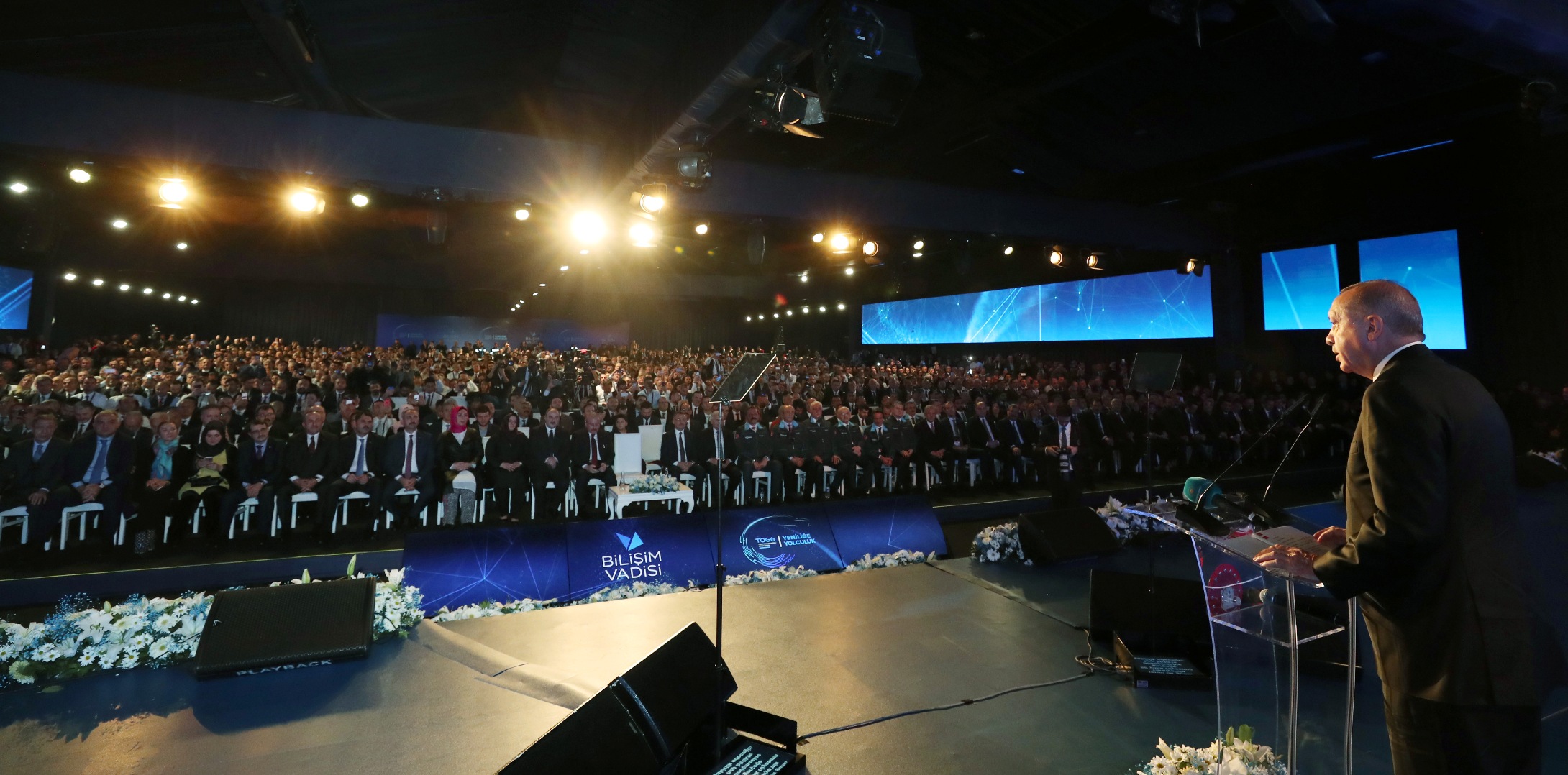 İçinde bulunulan mekanı da özellikle seçtiklerini vurgulayan Cumhurbaşkanı Erdoğan, alanın Türkiye'nin Bilişim Vadisi, Türkiye'nin yarınlarını şekillendirecek teknoloji üssü olduğunu söyledi.