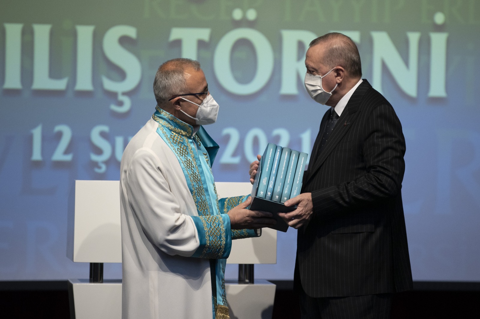 Recep Tayyip Erdoğan Üniversitesi Rektörü Prof. Dr. Hüseyin Karaman üniversitenin tarih bölümü akademisyenlerince hazırlanan "İlk Çağdan Günümüze Rize" kitap setini, Cumhurbaşkanı Erdoğan'a takdim etti. Cumhurbaşkanı Erdoğan, üniversite yerleşkesine cami yaptıran hayırseverlere plaket verdi.