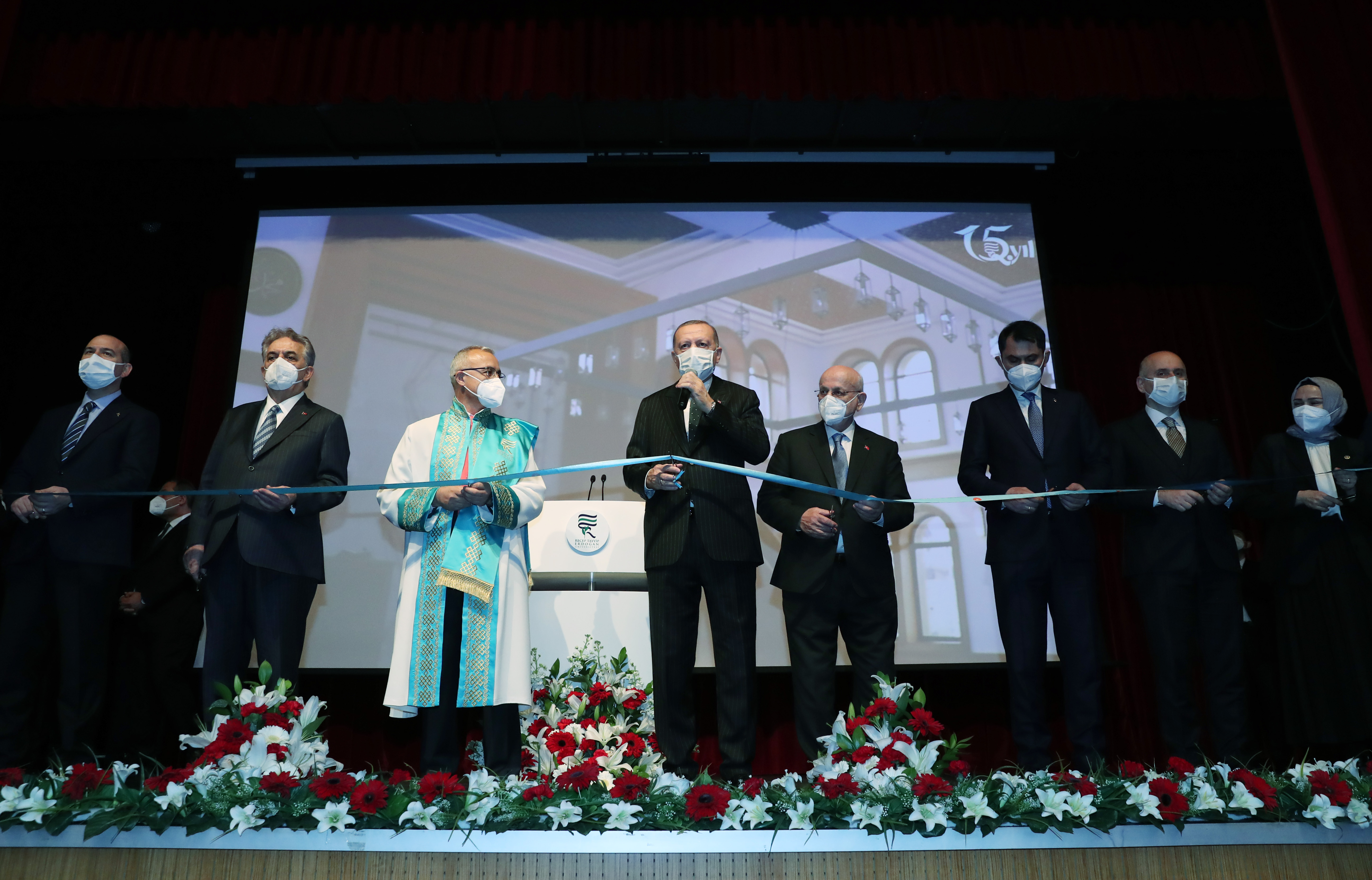 Büyük bir kadirşinaslık örneğiyle sonradan isminin verildiği üniversiteye her türlü desteği sağladıklarının altını çizen Cumhurbaşkanı Erdoğan, bugün artık 25 fakülte, yüksekokul, meslek yüksekokulu ve enstitüsü, 2 bini aşkın akademik ve idari kadrosu, 18 bini bulan öğrenci sayısıyla üniversitenin iftihar ettikleri bir düzeye geldiğini vurguladı.