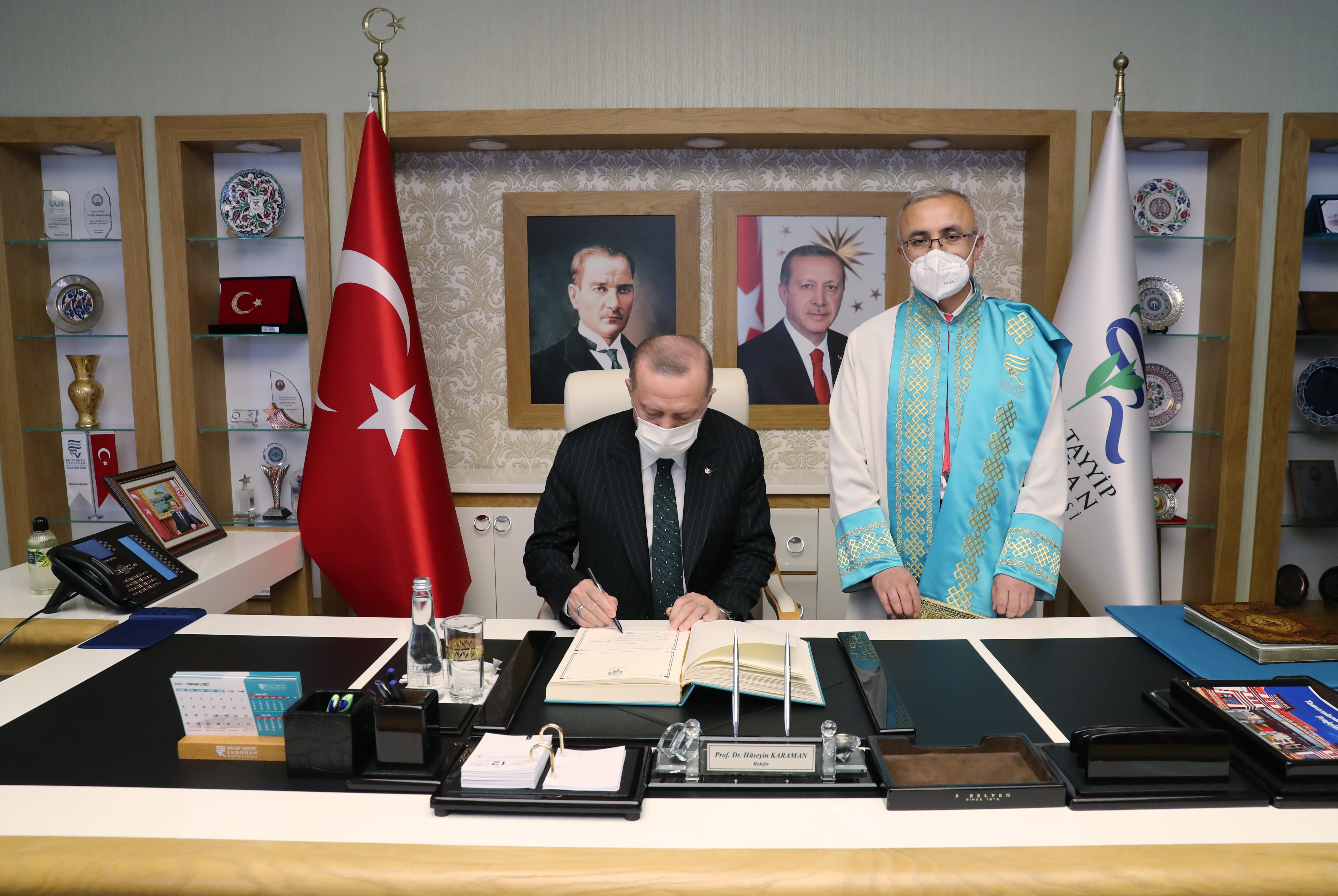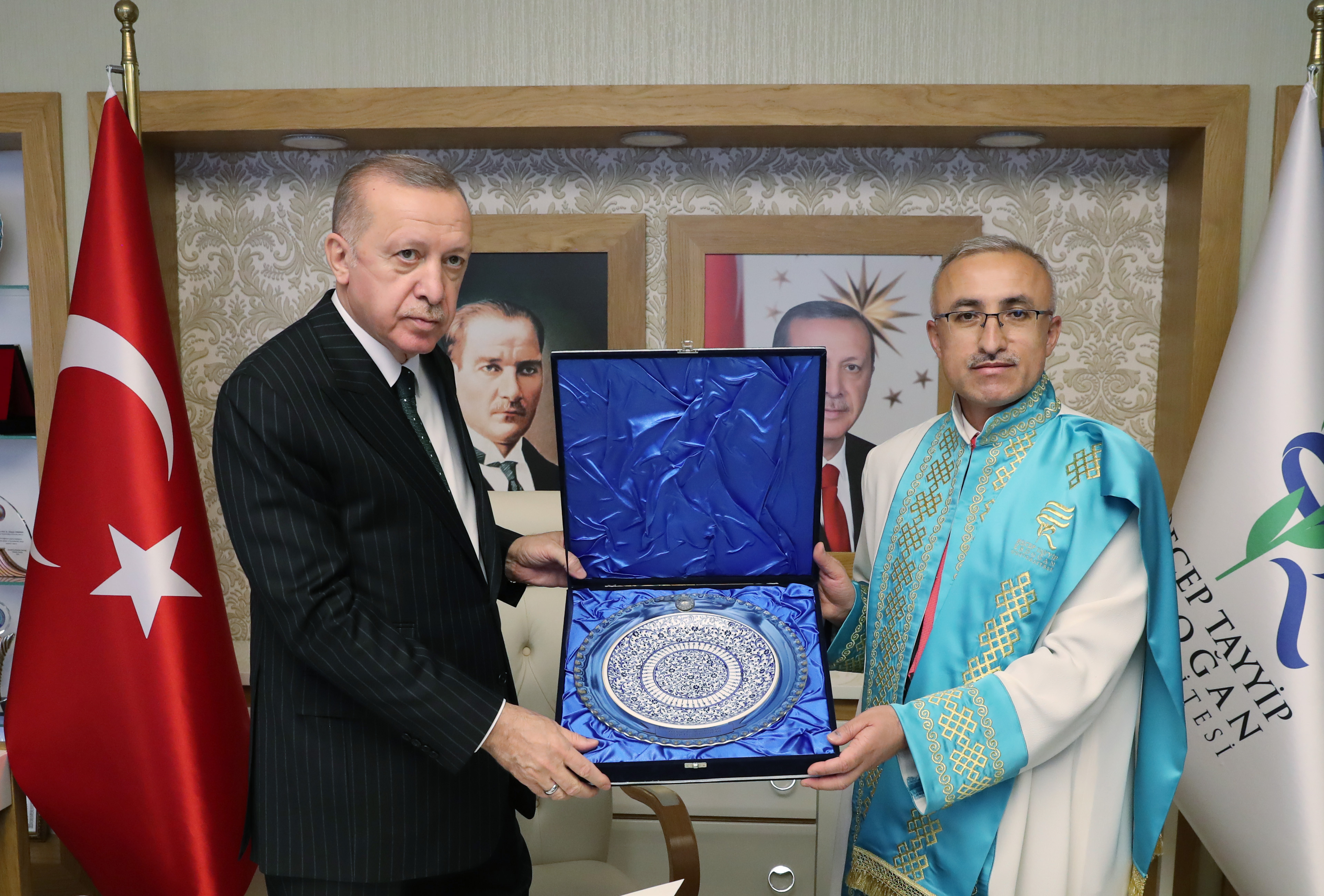Cumhurbaşkanı Erdoğan, Rektör Karaman'ı da makamında ziyaret etti.