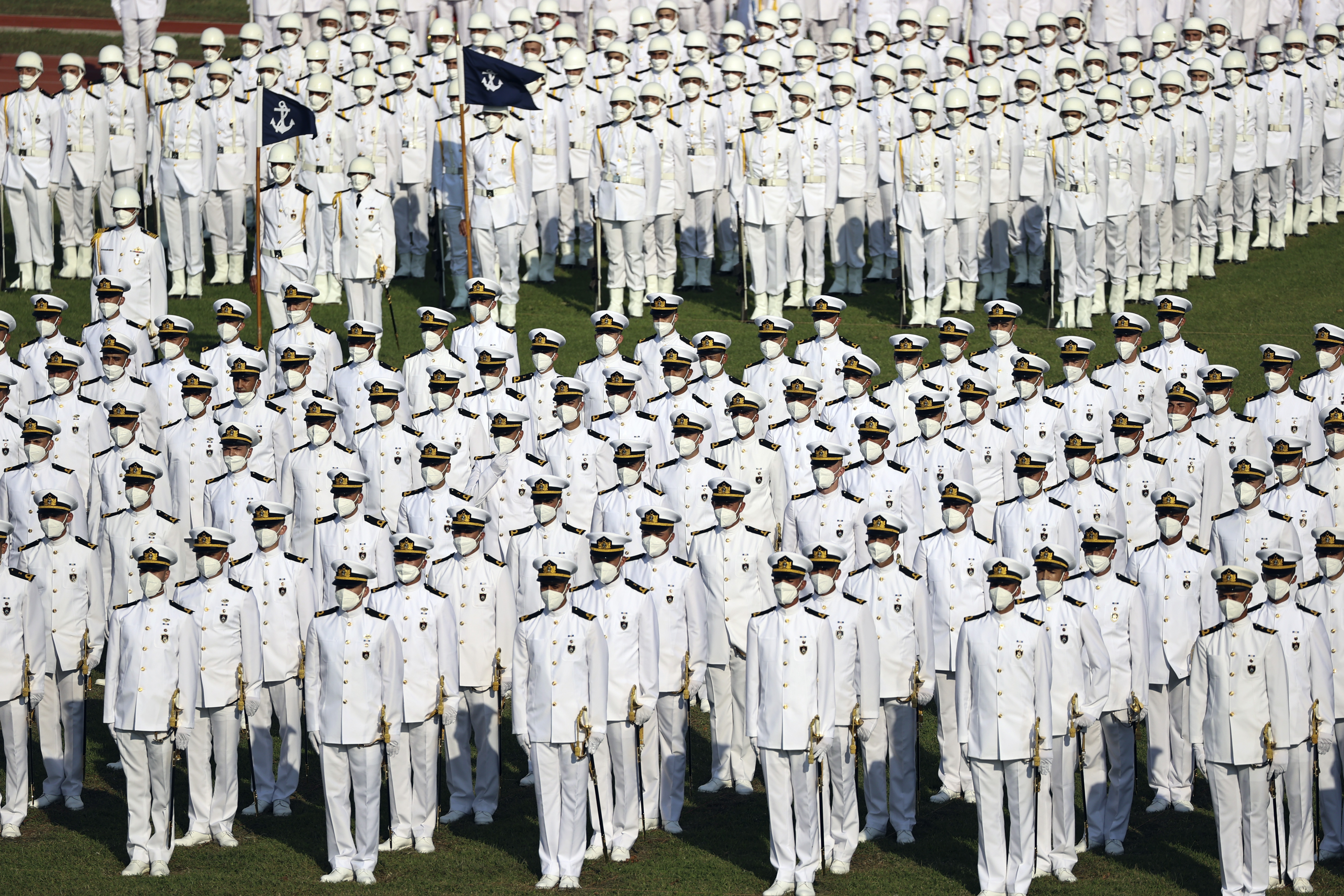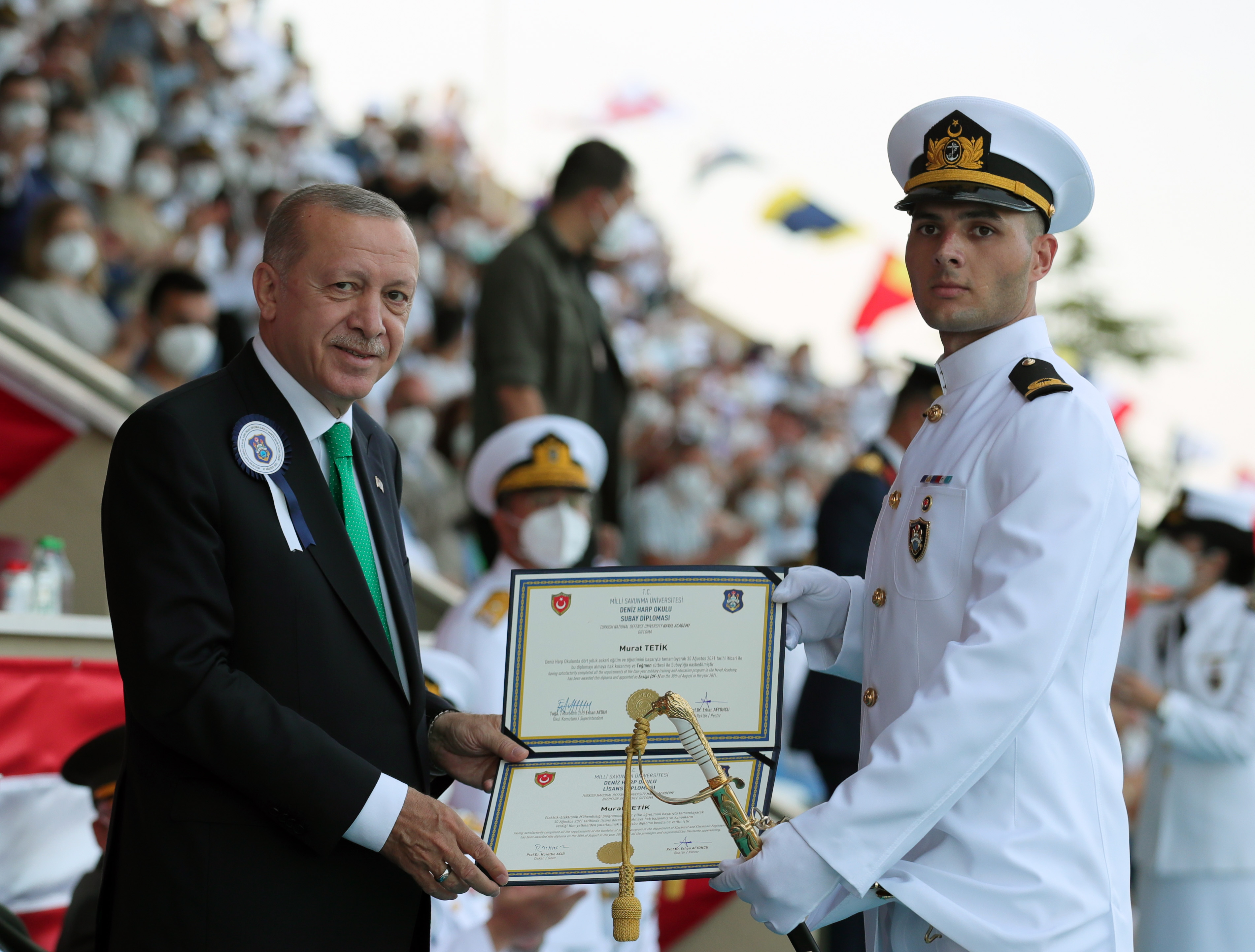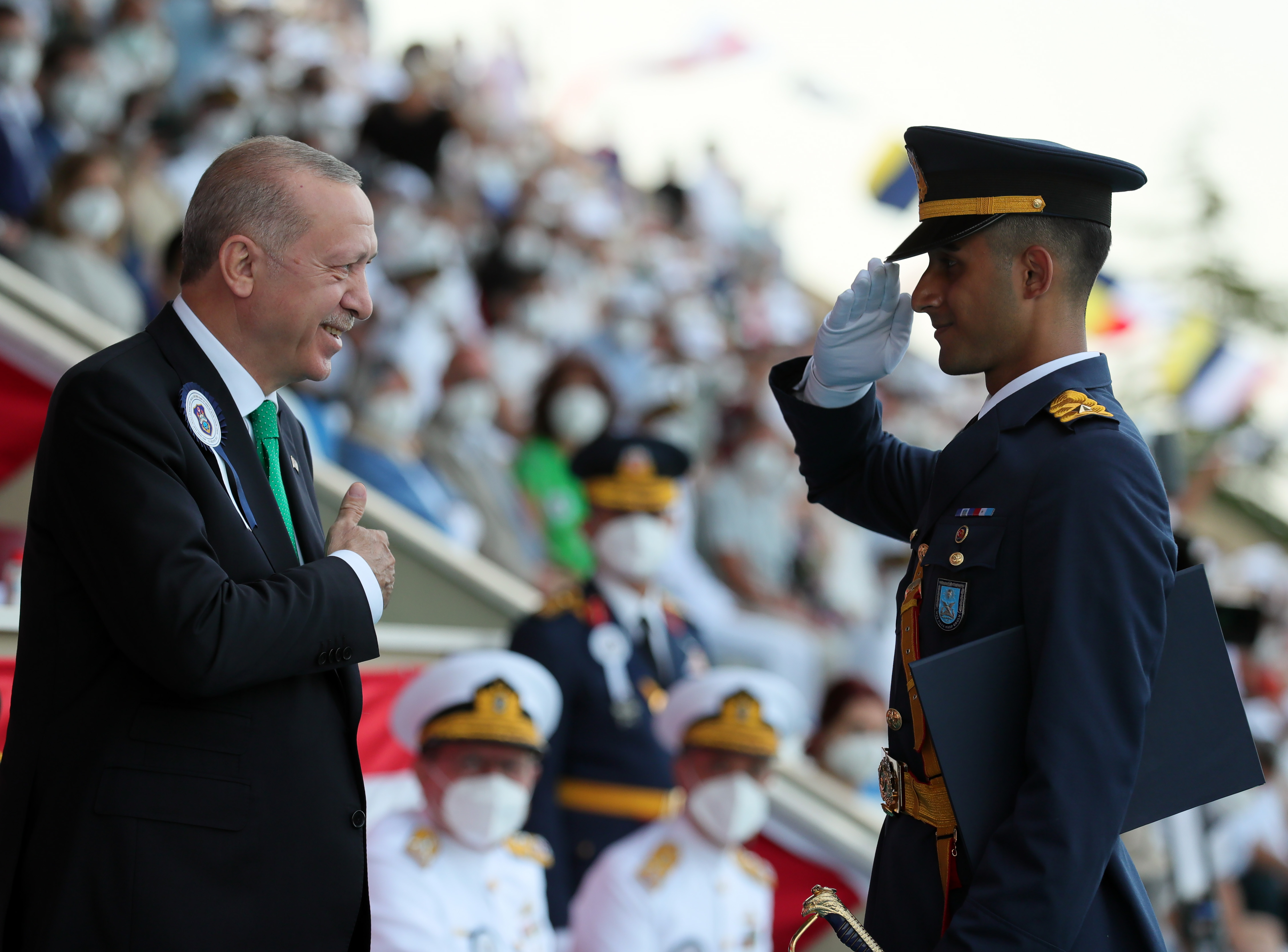 Kara Harp Okulu'ndan mezun olan 903 Türk ve misafir teğmenin ardından, bugün de Deniz Harp Okulundan mezun olan 298 ve Hava Harp Okulundan mezun olan 251 teğmeni tebrik eden Cumhurbaşkanı Erdoğan, teğmenlere görev yerlerinde, misafirlere ülkelerinde başarılar diledi.