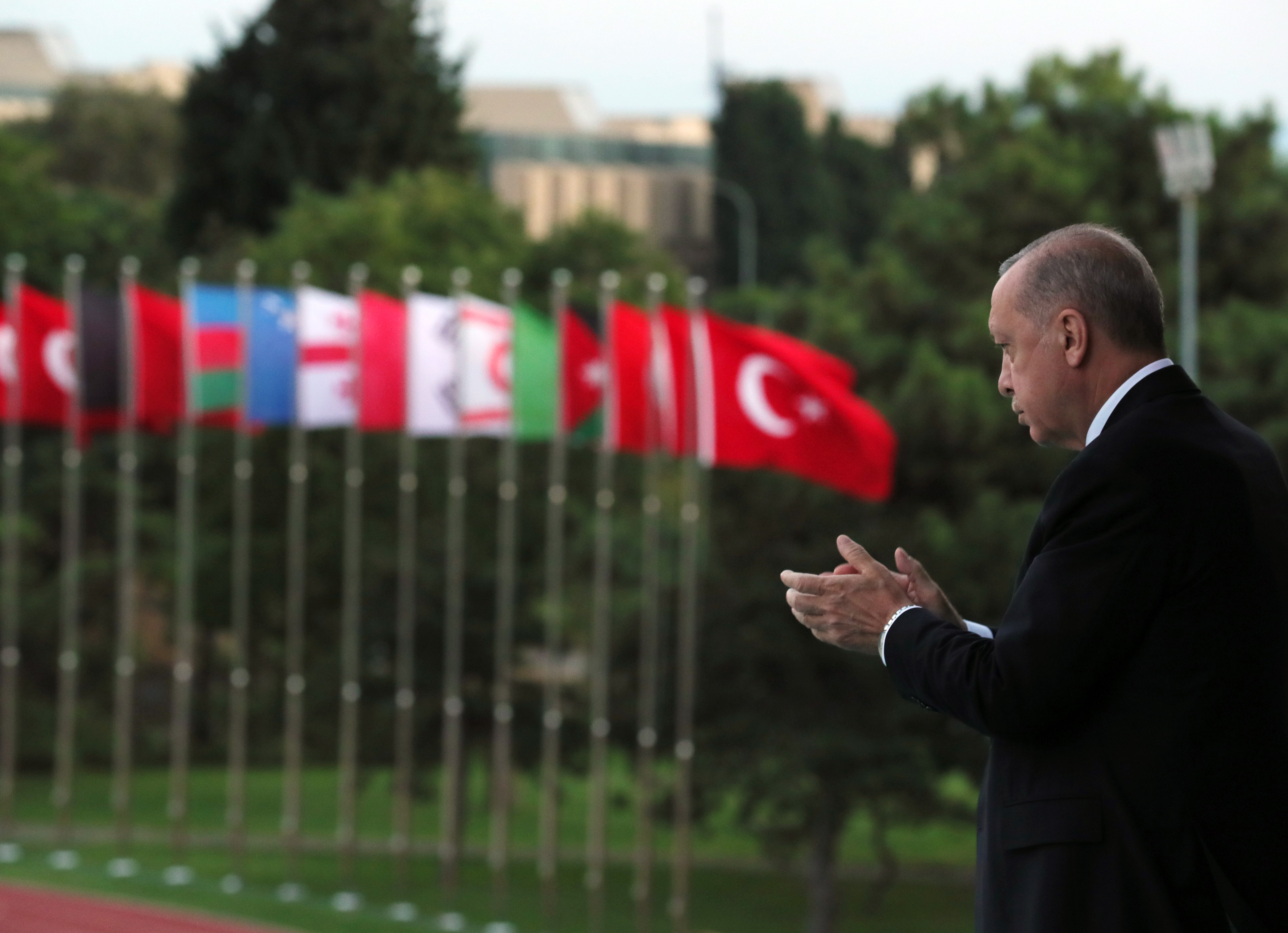 Cumhurbaşkanı Erdoğan, "Türkiye'yi gerisindeki binlerce yıllık devlet geleneğine bakmadan sınırları cetvelle çizilmiş suni ülkelerle, zayıf toplumlarla, ipleri kendi ellerindeki yönetimlerle karıştıranlar için artık acı gerçeklerle yüzleşme vakti gelmiştir. Malazgirt'i anlamayana, Çanakkale'yi ve İstiklal Harbi'ni bile anlamayanlara, 15 Temmuz'u anlamayanlara nihai mesajı inşallah 2023'te vereceğiz. Türkiye, 100 yıllık değil, 600 yıl artı 100 yıllık, 1000 yıl artı 100 yıllık, 2 bin artı 100 yıllık bir devlettir. Cumhurbaşkanlığı forsunda temsil edilen o bayraklar herhâlde moda fuarından çıkmadı. Oradaki her bir yıldızın temsil ettiği bayrağın bir geçmişi, bir tarihi, bir hikayesi, bir anlamı var. İşte bunun için aslını, neslini, tarihini, medeniyetini bilen gençler yetiştirerek maziden atiye, sağlam köprüler kurmanın gayretindeyiz." diye konuştu.