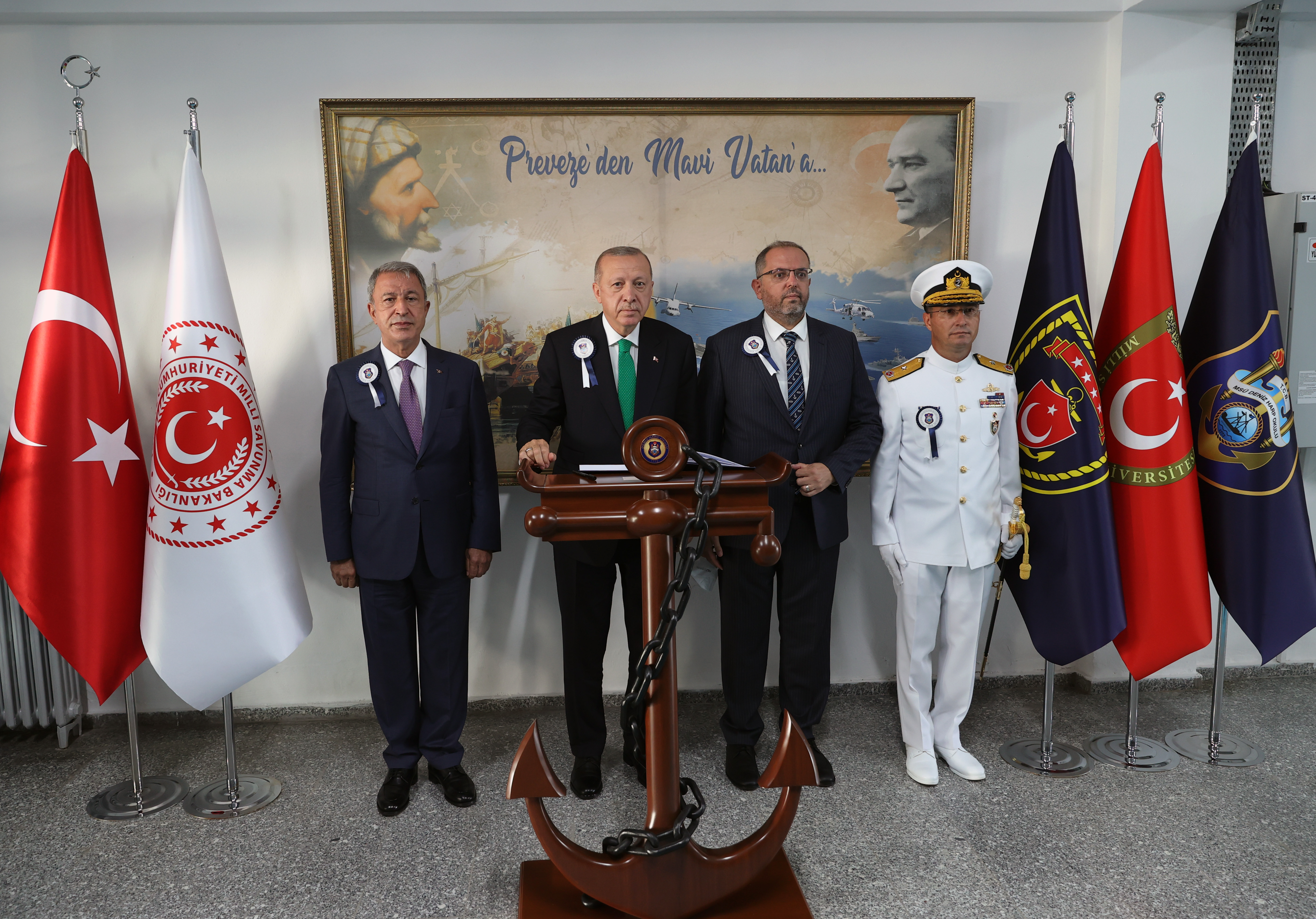 Cumhurbaşkanı Erdoğan, Deniz Harp Okulunda düzenlenen Millî Savunma Üniversitesi (MSÜ) Deniz ve Hava Harp Okulu Diploma Alma ve Sancak Devir Teslim Töreni'nde yaptığı konuşmada, Malazgirt'ten bugüne bu toprakların vatan kılınması için mücadele eden, gerektiğinde canını ortaya koyan sultan Alparslan'dan Osman Gazi'ye, Fatih'ten Gazi Mustafa Kemal'e kadar tüm kahramanları rahmet ve şükranla yad ettiğini dile getirdi.