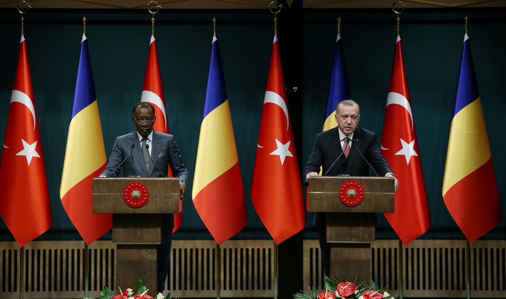 Cumhurbaşkanı Recep Tayyip Erdoğan ve Çad Cumhurbaşkanı Itno, baş başa ve heyetler arası görüşmelerin ardından Cumhurbaşkanlığı Külliyesi'nde ortak basın toplantısı düzenledi.