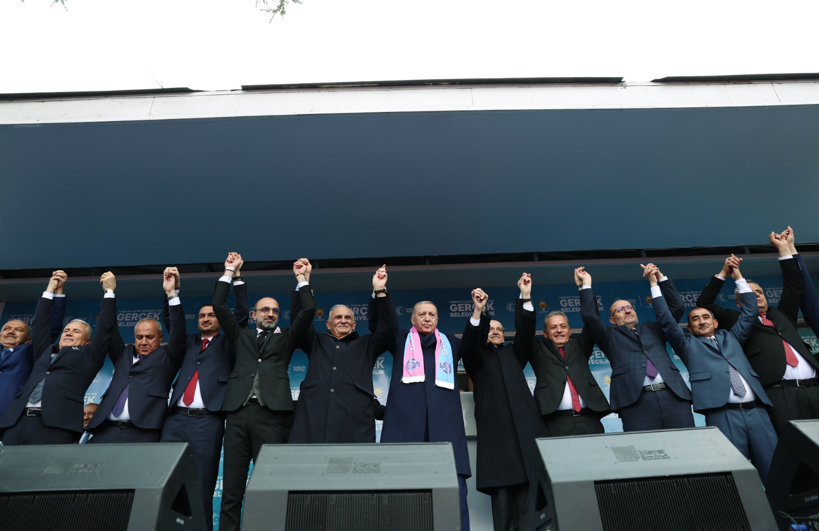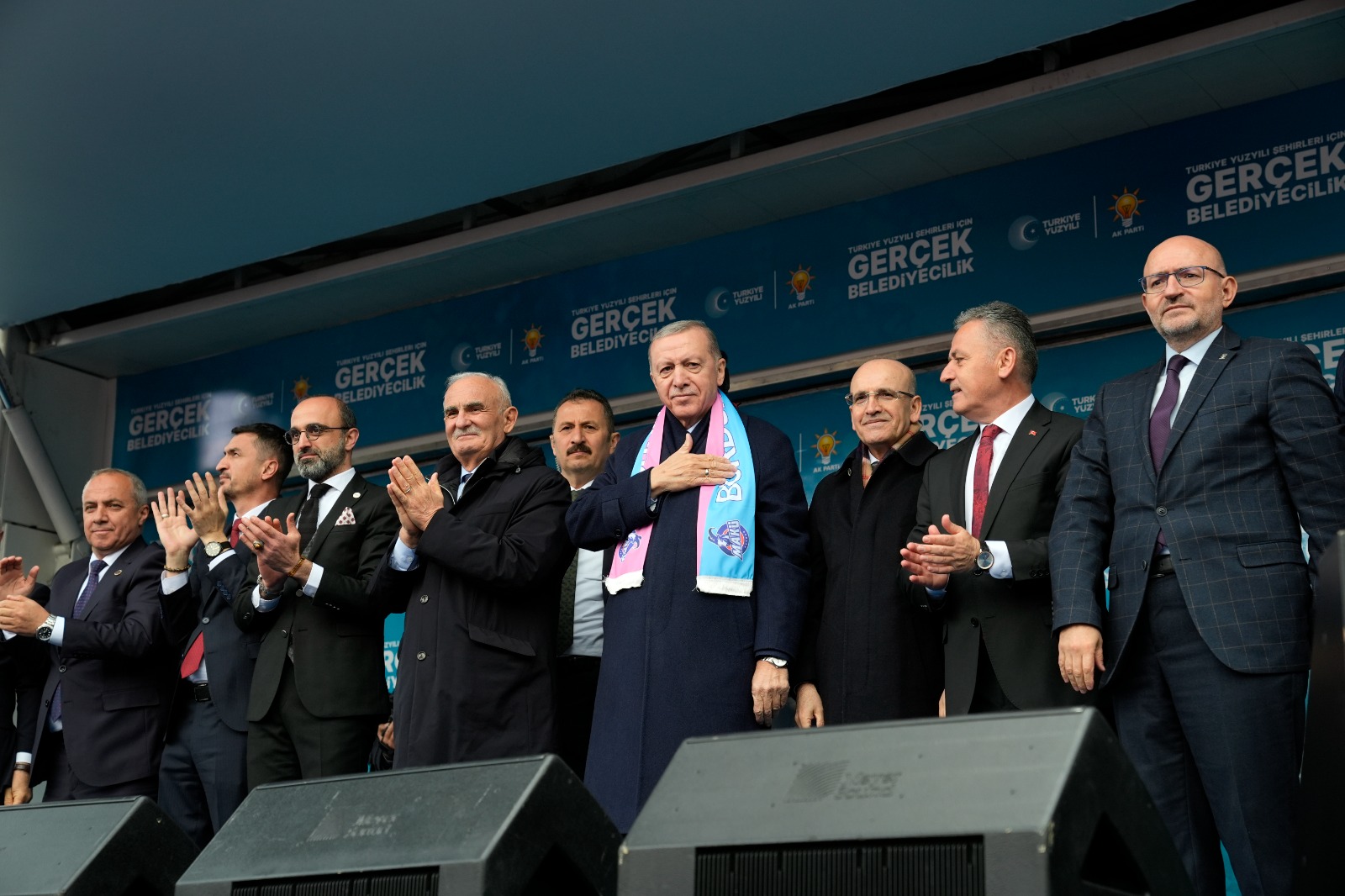 Cumhurbaşkanı Erdoğan, konuşmasının ardından partisinin Burdur belediye başkan adaylarını sahneye çağırarak vatandaşları selamladı.