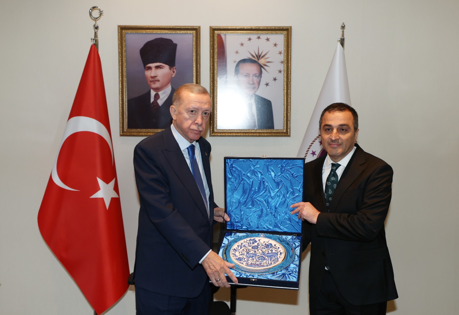 Ziyarette Vali Öksüz, Cumhurbaşkanı Erdoğan'a hediye takdim etti.
