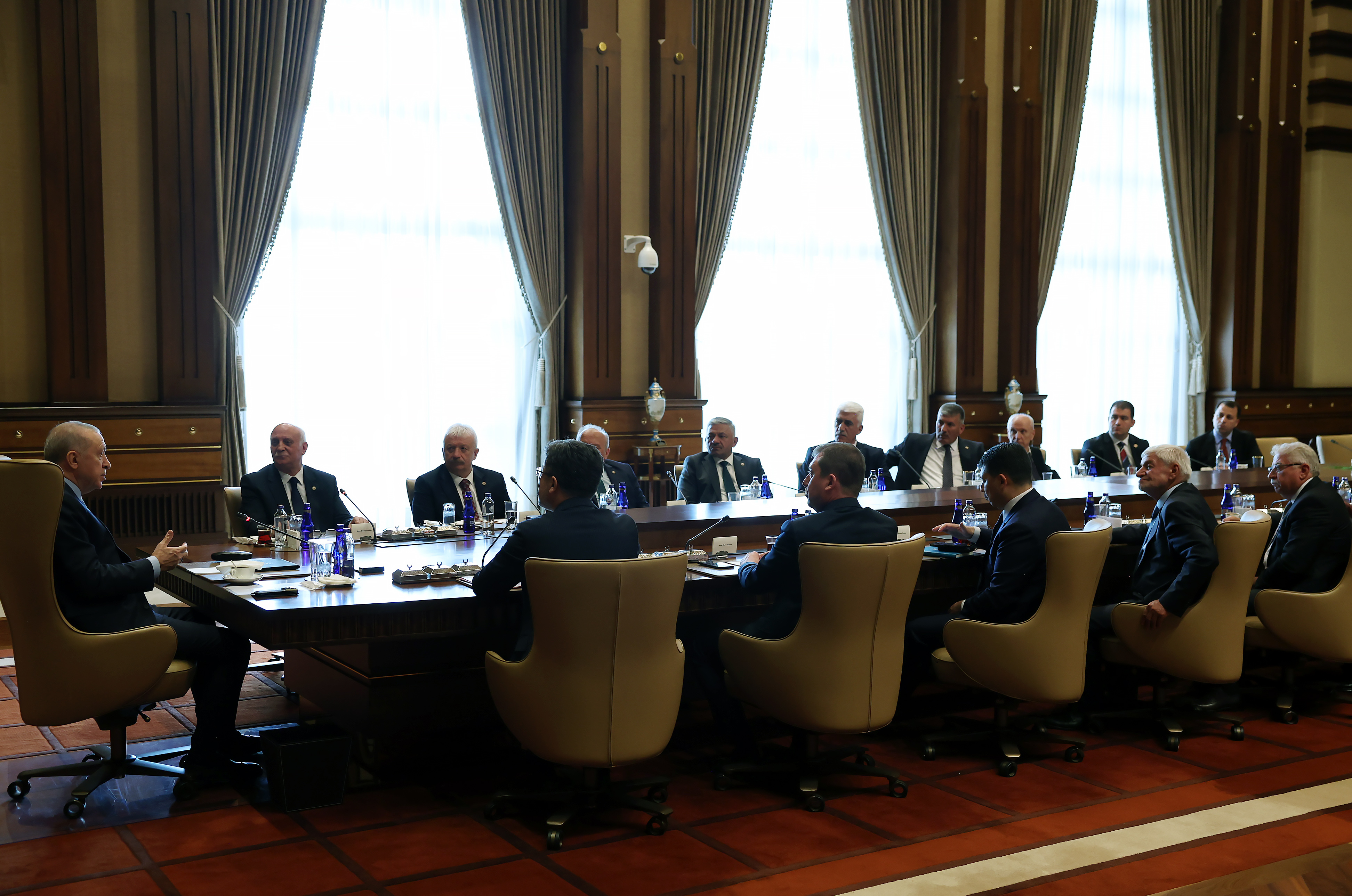 Cumhurbaşkanı Recep Tayyip Erdoğan, 14 Mayıs Dünya Çiftçiler Günü dolayısıyla Tarım ve Orman Bakanı İbrahim Yumaklı, Türkiye Ziraat Odaları Birliği (TZOB) Genel Başkanı Şemsi Bayraktar ve üyelerinin de yer aldığı heyetle Cumhurbaşkanlığı Külliyesi'nde bir araya geldi.