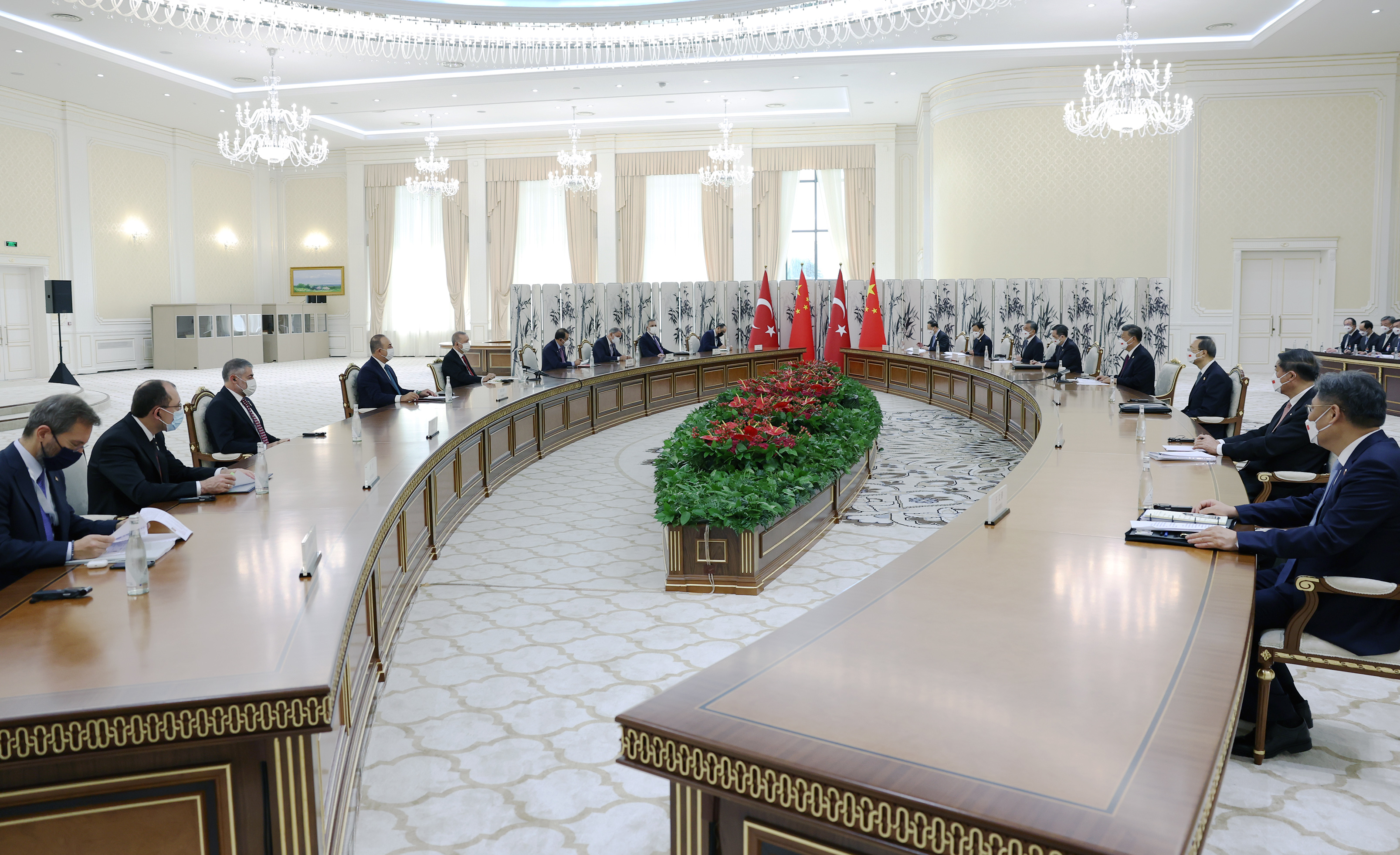 Cumhurbaşkanı Erdoğan ve Şi Cinping'in Özbekistan Devlet Başkanı Yazlık Sarayı’ndaki görüşmesi yarım saat sürdü.