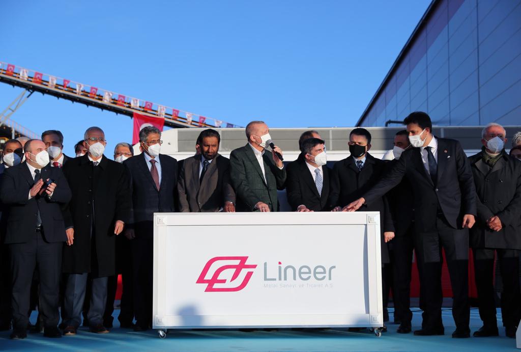 Yüksek teknolojiye dayalı bu tesisin inşaatının salgın şartlarına rağmen, temel atma töreninin üzerinden 18 ay gibi bir süre geçmeden tamamlanmasının ayrıca önemli olduğunu anlatan Cumhurbaşkanı Erdoğan, "Sanayi ve Teknoloji Bakanlığı ile Enerji ve Tabii Kaynaklar Bakanlıklarımızın bu konudaki gayretlerini yakından takip ettim. Bu yatırımı Katarlı ortağı El Atiyye ile hayata geçiren Lineer firmamızın sahibi Fikret Baydarman'a ve yatırımın her aşamasında emeği olan kurumlarımıza, mühendisinden işçisine herkese teşekkür ediyorum." dedi.