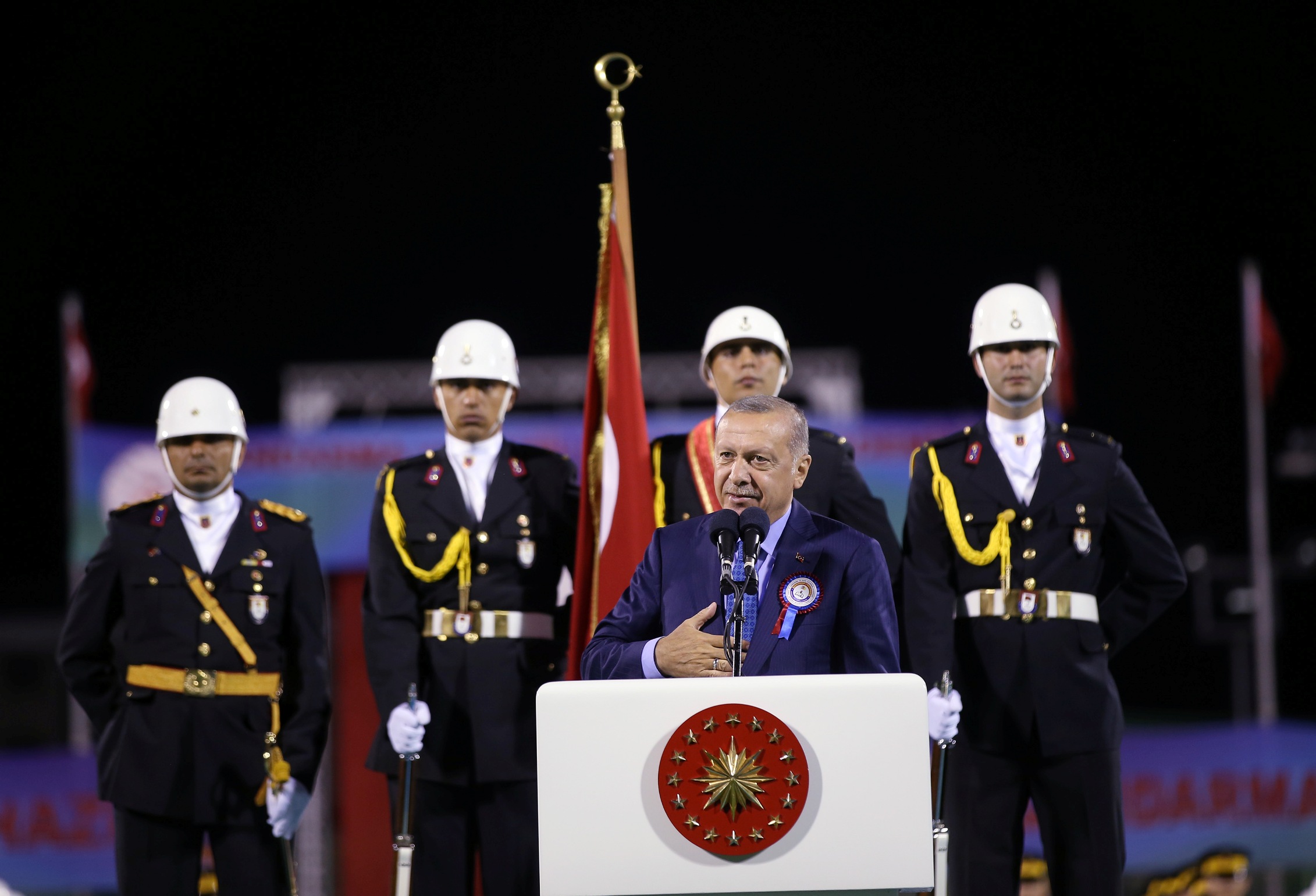 Subay ve astsubayların mezuniyet töreni vesilesiyle törende bulunan ailelere seslenen Erdoğan, ülkeye böyle hayırlı evlatlar yetiştirdikleri için şahsı ve Türk milleti adına şükranlarını iletti.