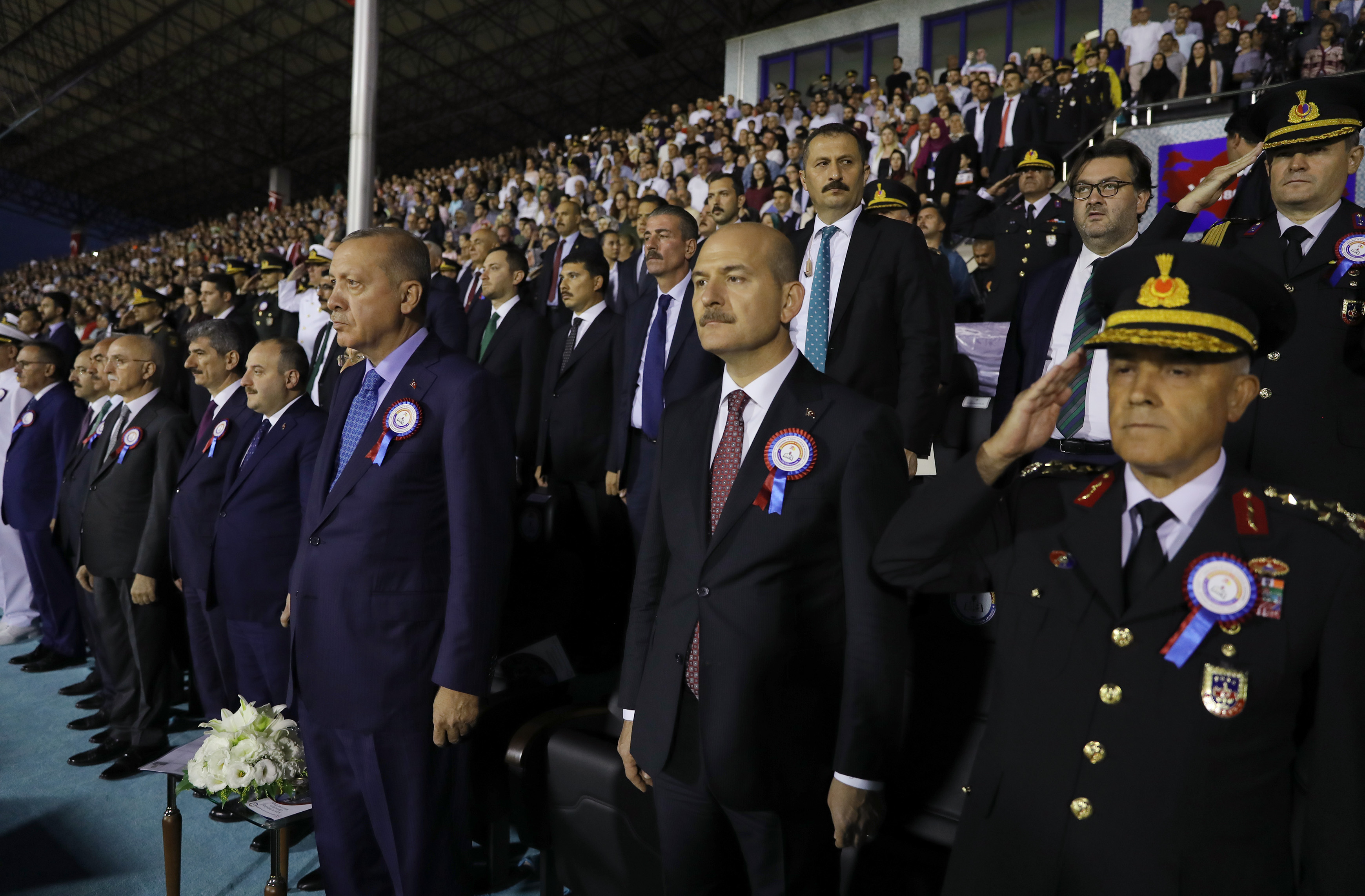 Konuşmasına, eğitimlerini başarıyla tamamlayan 515 subay ve 3 bin 431 astsubayı tebrik ederek başlayan Erdoğan, subay ve astsubaylara görev yerlerinde başarılar diledi.