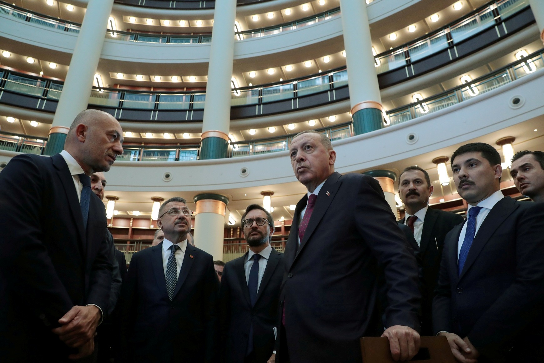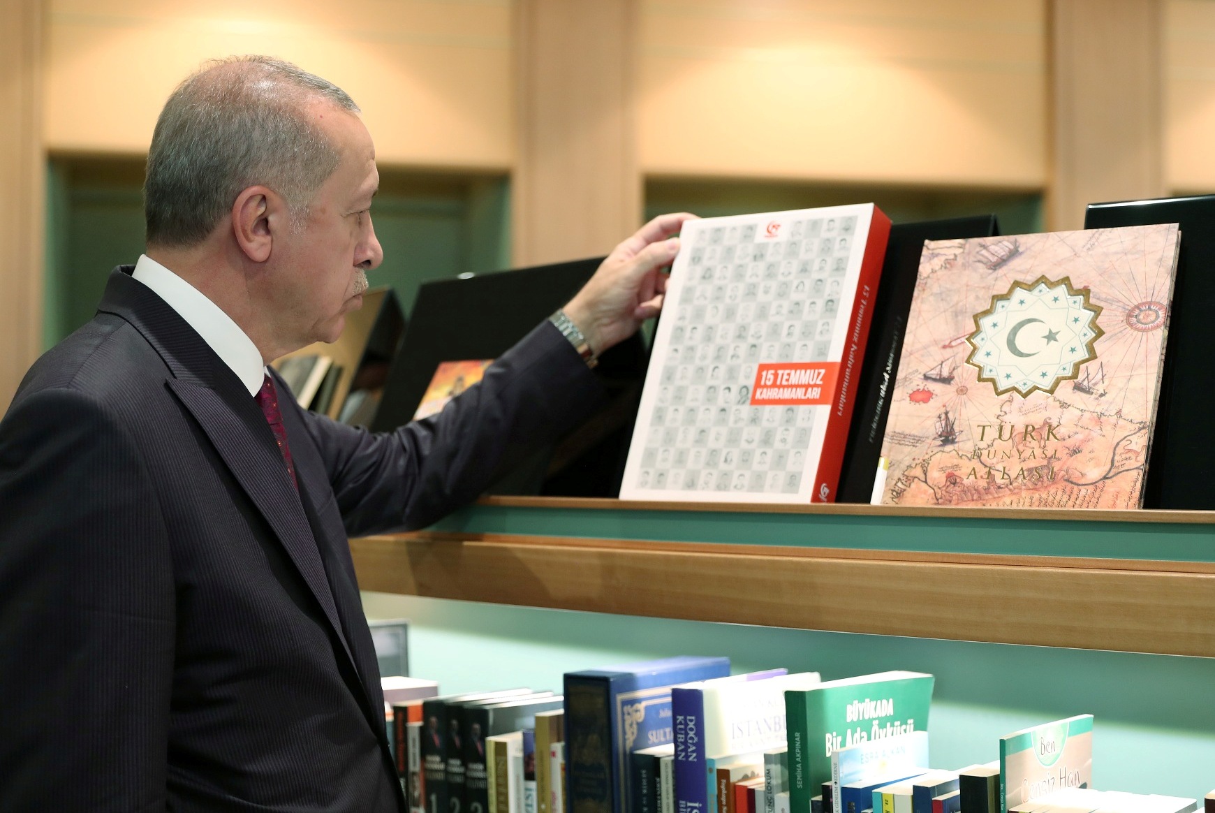 Bu ay içinde açılması beklenen Cumhurbaşkanlığı Kütüphanesi hakkında bilgi alan Erdoğan, yerleştirme işlemleri tamamlanan bazı kitapları da inceledi.