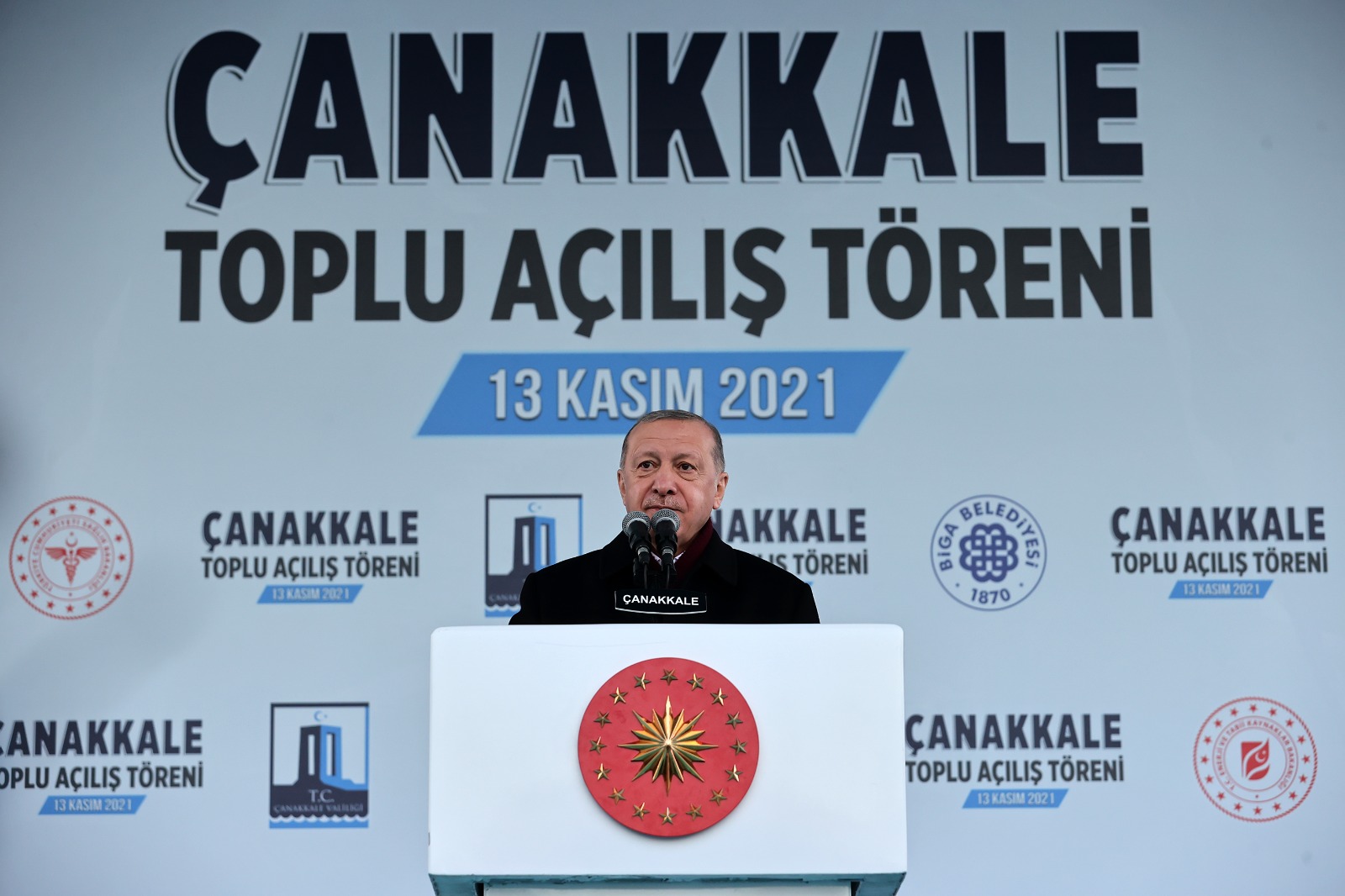 Biga Belediye Meydanı'nda düzenlenen Çanakkale'de Yapımı Tamamlanan Projelerin Toplu Açılış Töreni'ne katılan Cumhurbaşkanı Erdoğan, “Tek gayemiz alın terleriyle sulayarak ve kanlarıyla yoğurarak bize bu toprakları vatan haline getiren ecdada layık olabilmektir. Çünkü bir toprağın, bir arazinin vatan olması kanlarla onun sulanmasıdır, onunla yoğrulmasıdır. Cumhuriyet tarihinin en büyük demokrasi ve kalkınma mücadelesini verirken sadece Allah'ın yardımına ve milletimizin desteğine güvendik.” dedi.