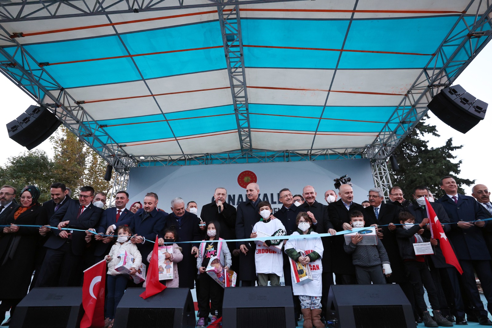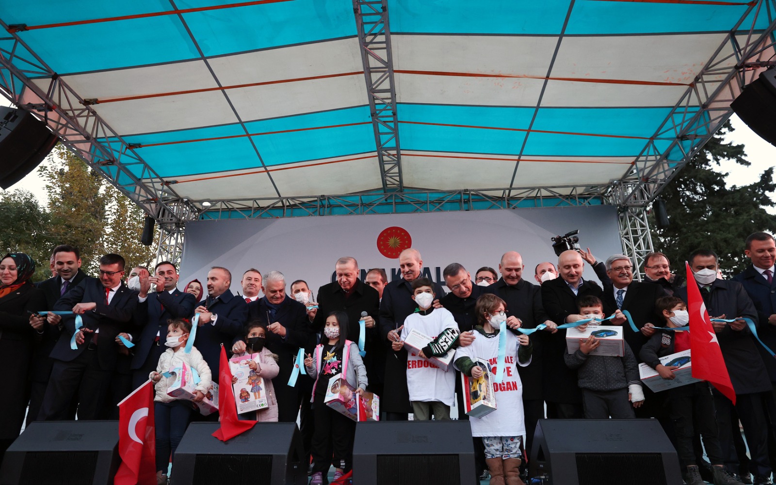 Cumhurbaşkanı Erdoğan, konuşmasının ardından, alandaki bazı çocukları da yanına alarak, beraberindekilerle kurdele kesti ve hizmete alınan eserlerin toplu açılışını yaptı.