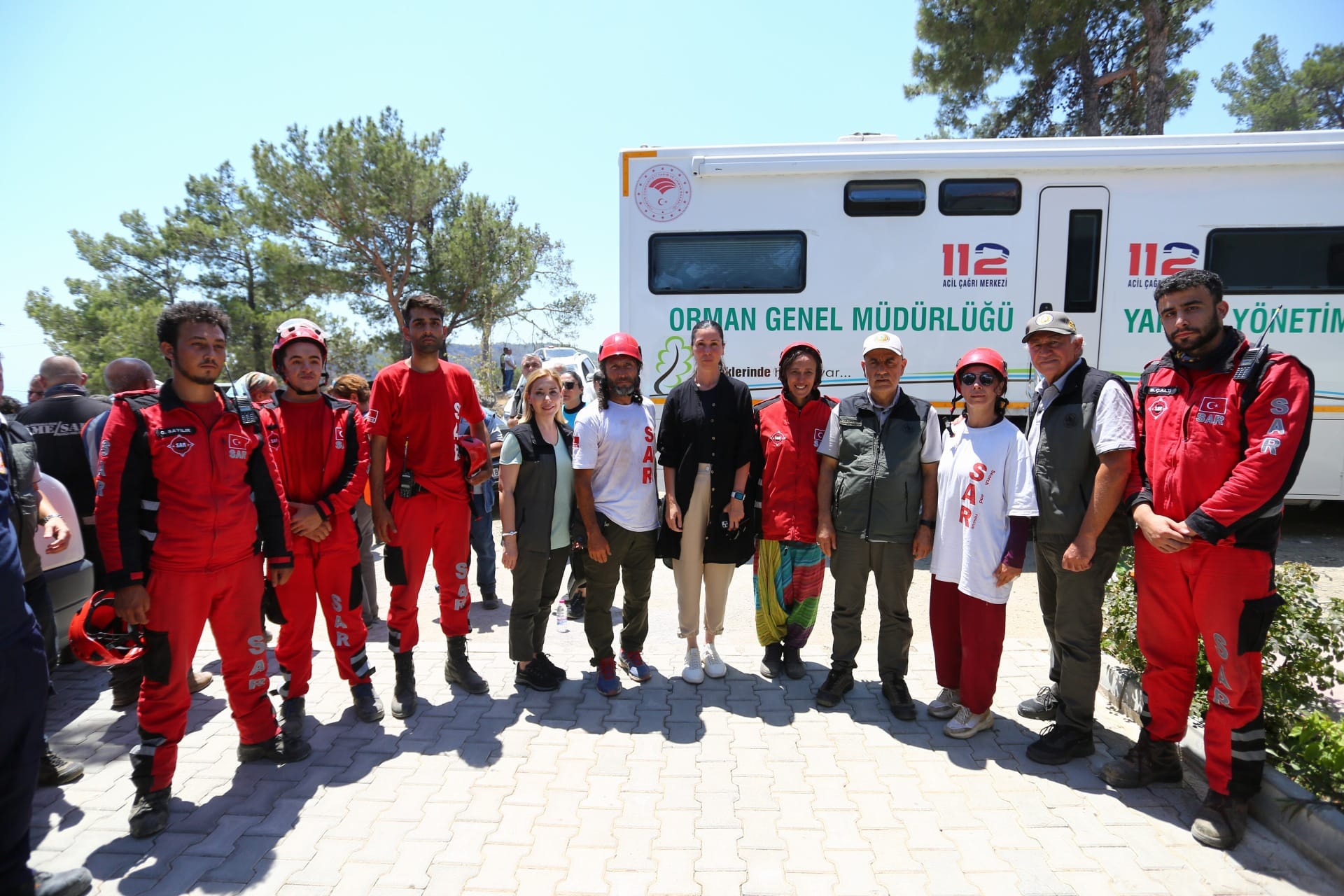 Yangın söndürme ekipleri ve AFAD gönüllülerine alevlerle mücadeleye verdikleri destek için teşekkür eden Kirişci, burada Cumhurbaşkanı Erdoğan'ı telefonla aradı.