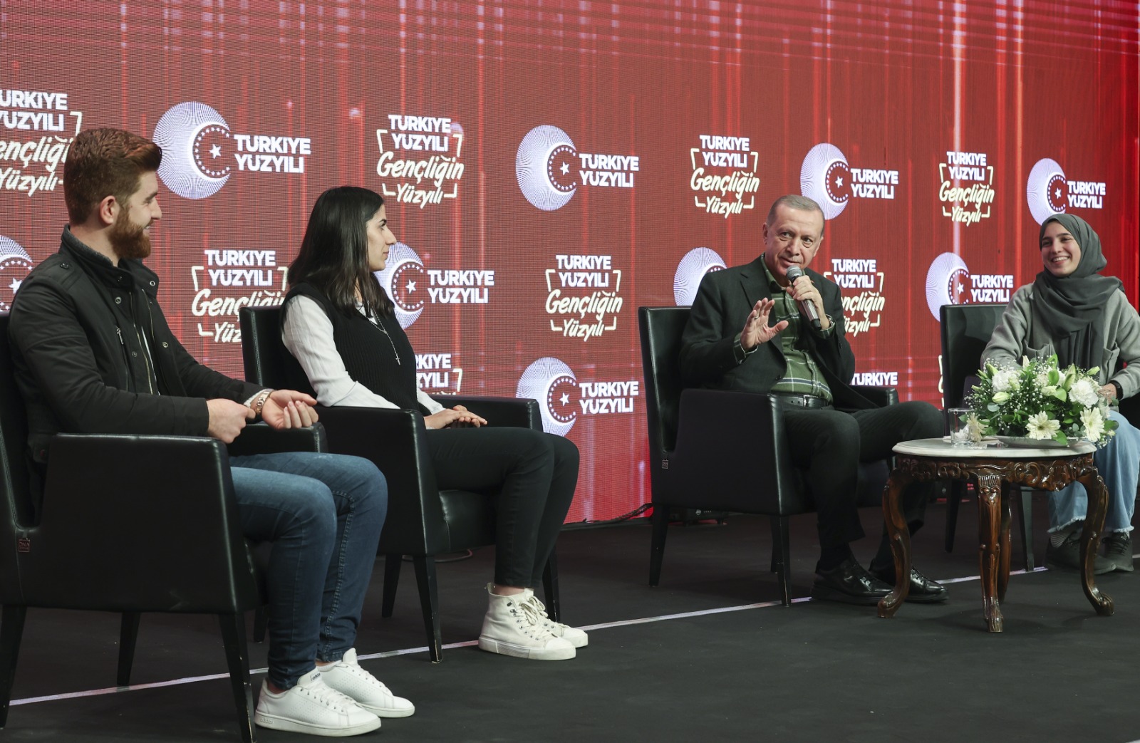 Bir gencin, "Biz siyaseti sizden öğrendik. Sizinle başladık, sizinle devam etmek istiyoruz" ifadeleri üzerine Cumhurbaşkanı Erdoğan, "Birileri de diyor ki gençler AK Parti'den kopuyor. Gençler salonda, Samsun'da, Şanlıurfa'da, Gaziantep'te, her gittiğimiz yerdeydi." dedi.