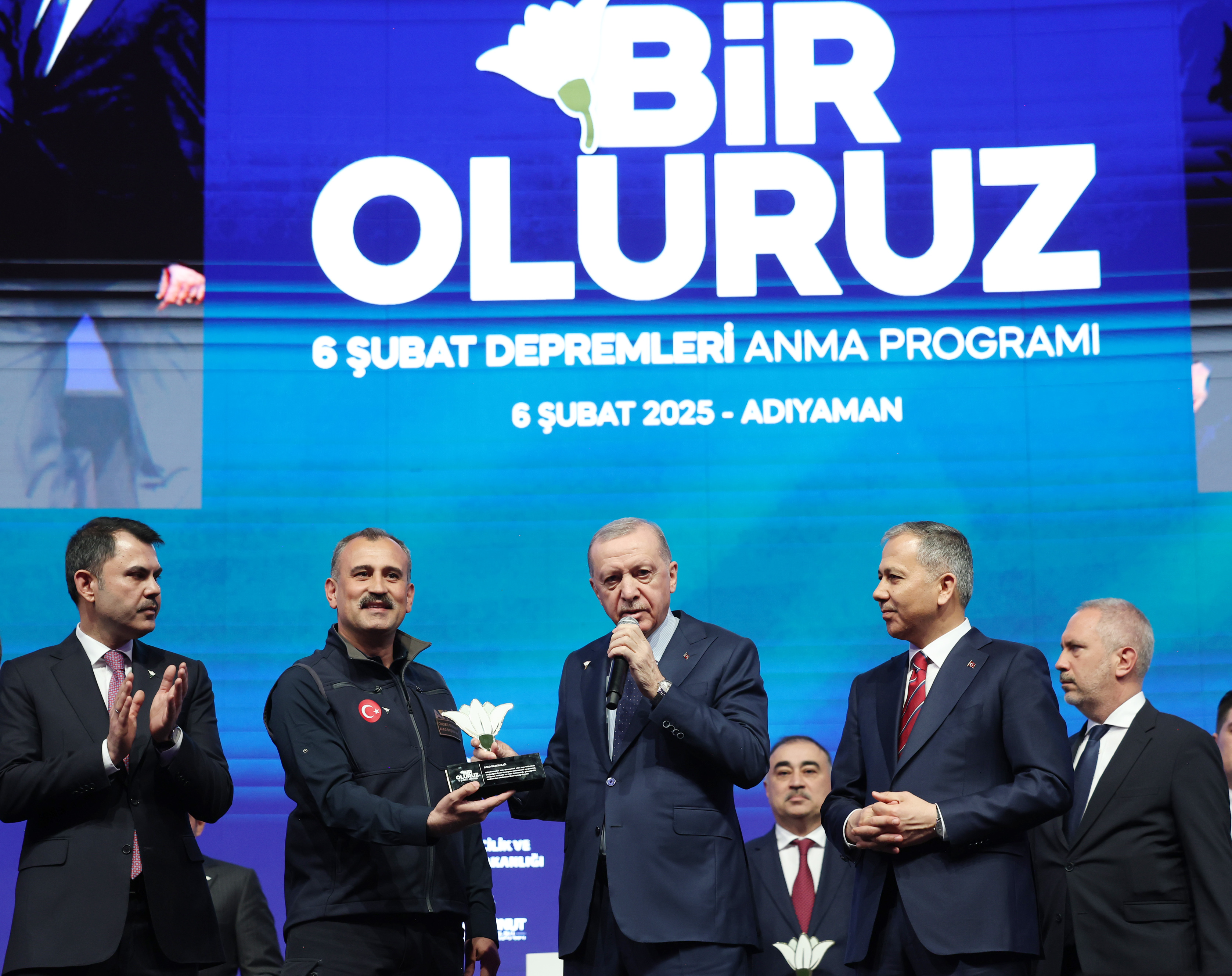 Cumhurbaşkanı Recep Tayyip Erdoğan, Adıyaman Gençlik ve Spor Müdürlüğü Spor Salonu'nda düzenlenen "Bir Oluruz 6 Şubat Depremleri Anma Programı"na katıldı.