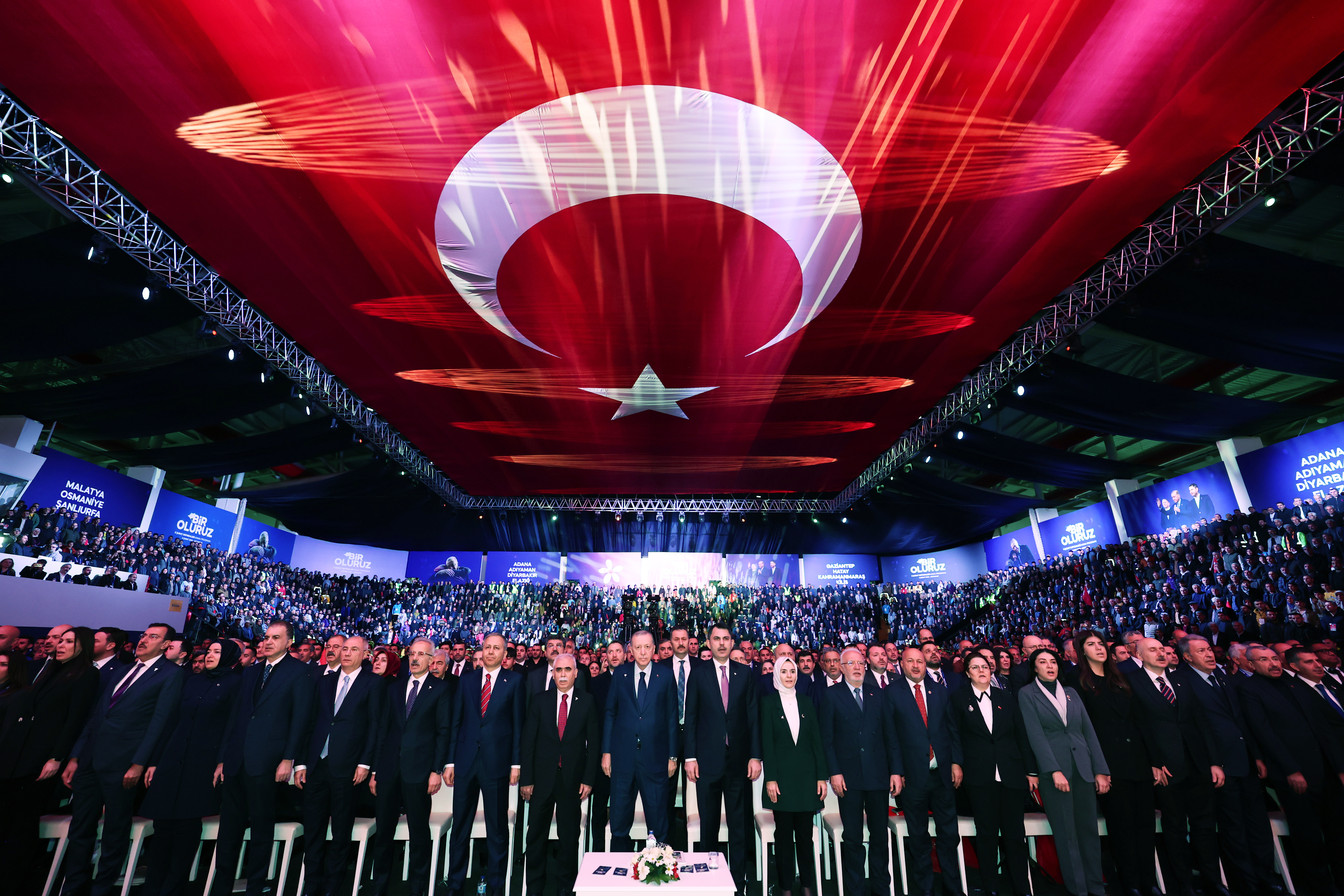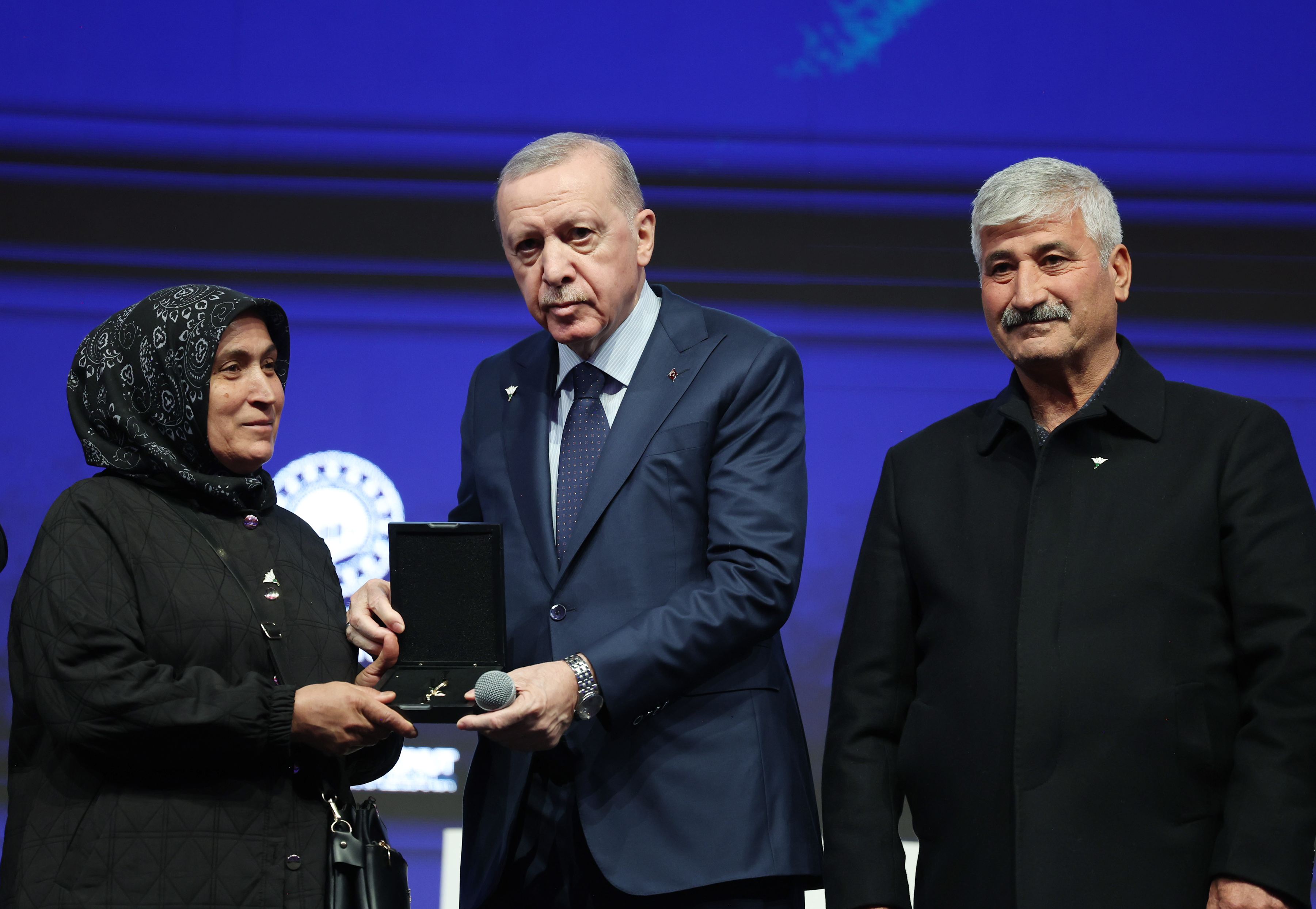 6 Şubat asrın felaketinde yitirdikleri 53 bin 737 kişinin her birine Allah'tan rahmet niyaz eden Cumhurbaşkanı Erdoğan, salondakilerle birlikte şehitler için Fatiha suresini okudu.