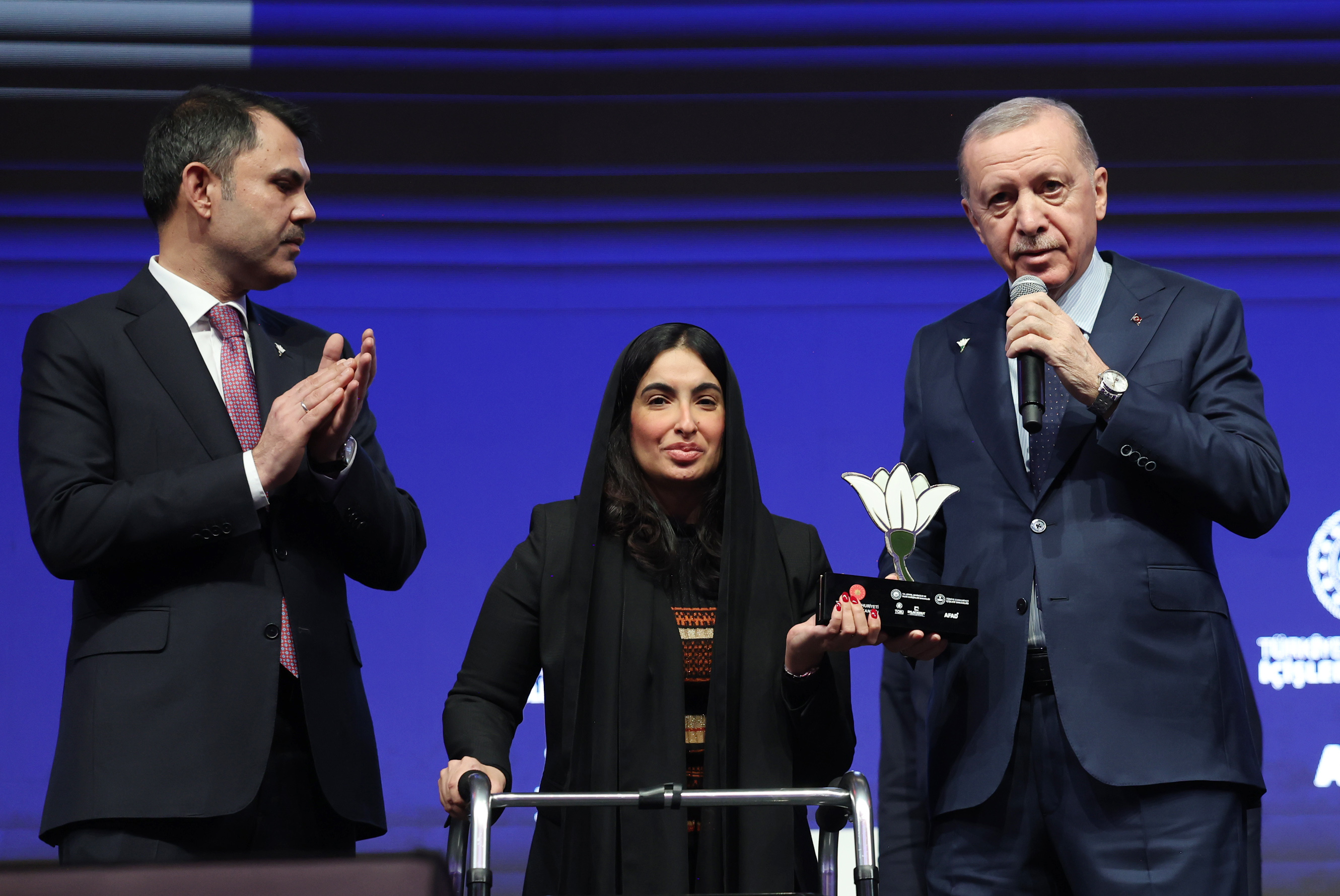 BAYKAR Yönetim Kurulu Başkanı ve Teknoloji Lideri Selçuk Bayraktar'a plaketini veren Cumhurbaşkanı Erdoğan, insansız hava araçlarında BAYKAR'ın dünyada belli bir üne kavuştuğunu belirterek, "Allah nazardan saklasın. Şimdi de bu başarılarının artarak devamını diliyoruz. Rabb'im yâr, yardımcıları olsun." temennisinde bulundu.