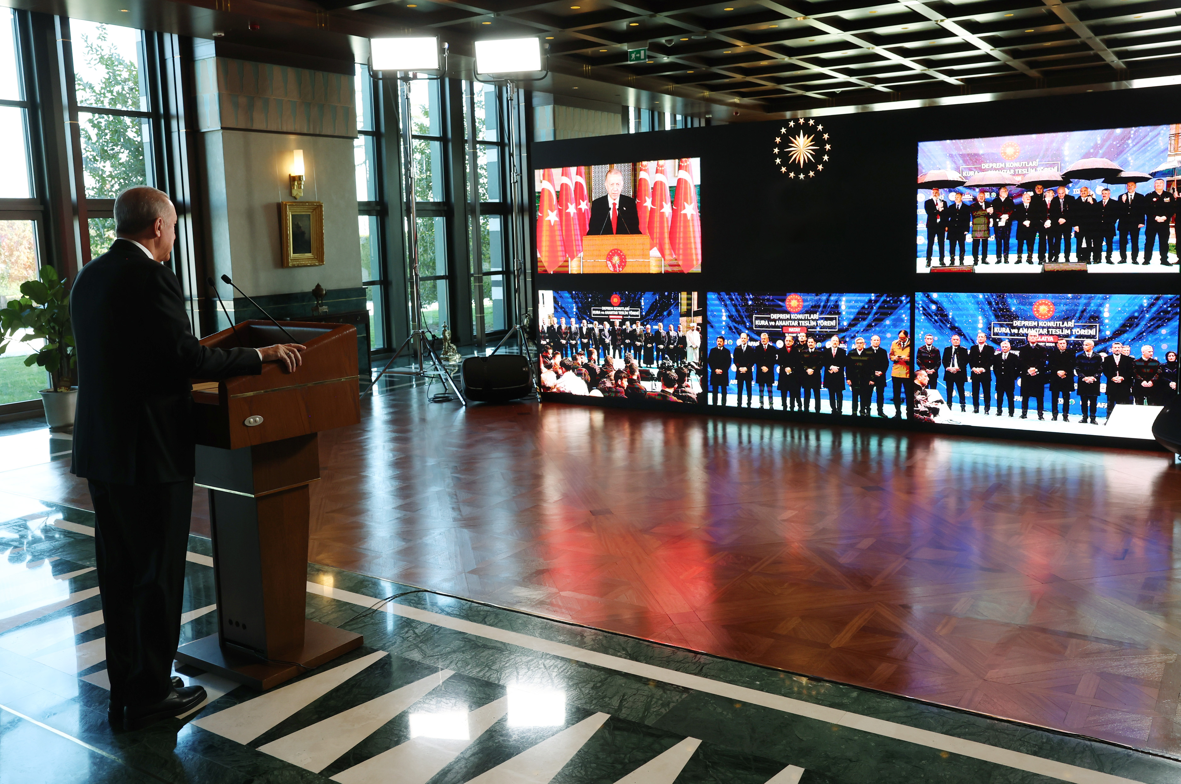 Cumhurbaşkanı Recep Tayyip Erdoğan, Deprem Konutları Kura ve Anahtar Teslim Töreni'ne Cumhurbaşkanlığı Külliyesi'nden canlı bağlantıyla katıldı.