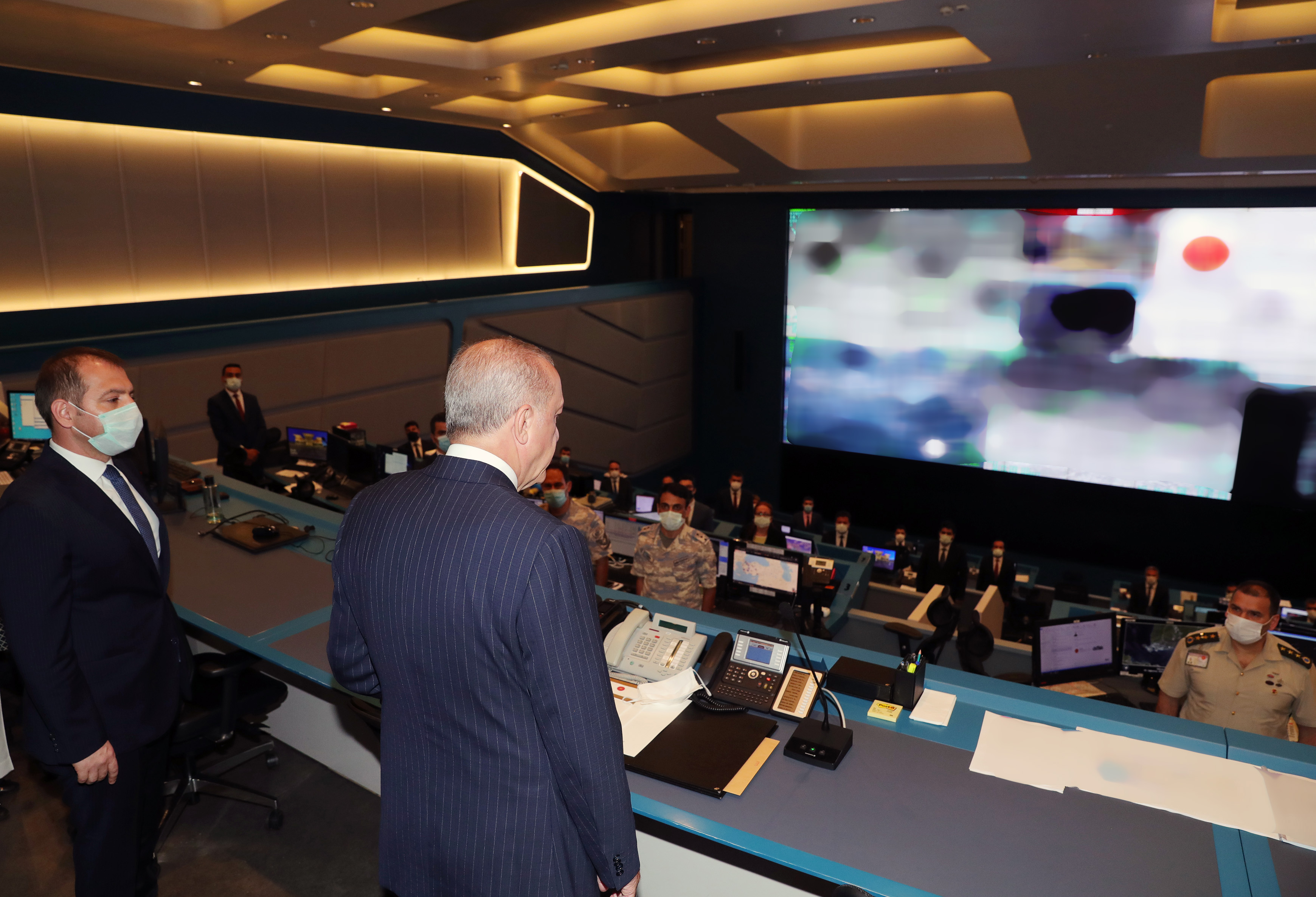 Cumhurbaşkanlığı Külliyesi'ndeki merkezde, büyük ekrana yansıtılan görüntüler aracılığıyla yangın bölgelerindeki son durum hakkında yetkililerden bilgi alan Cumhurbaşkanı Erdoğan'a, Cumhurbaşkanı Yardımcısı Fuat Oktay, Cumhurbaşkanlığı Özel Kalem Müdürü Hasan Doğan ve Cumhurbaşkanlığı İdari İşler Başkanı Metin Kıratlı da eşlik etti.