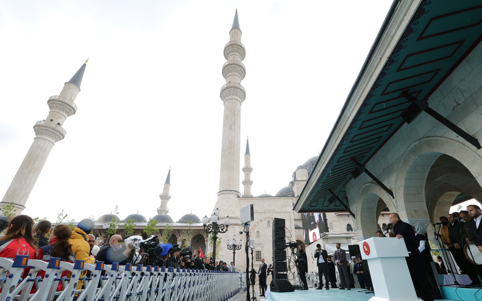 Kültür ve Turizm Bakanlığına bağlı korolardan oluşturulan topluluğun, ilahiler ve salavat-ı şerife okuduğu tören, Diyanet İşleri Başkanı Ali Erbaş'ın yaptırdığı duanın ardından, Cumhurbaşkanı Erdoğan, TBMM Başkanı Mustafa Şentop, bakanlar ve konukların kurdeleyi kesmesiyle tamamlandı.