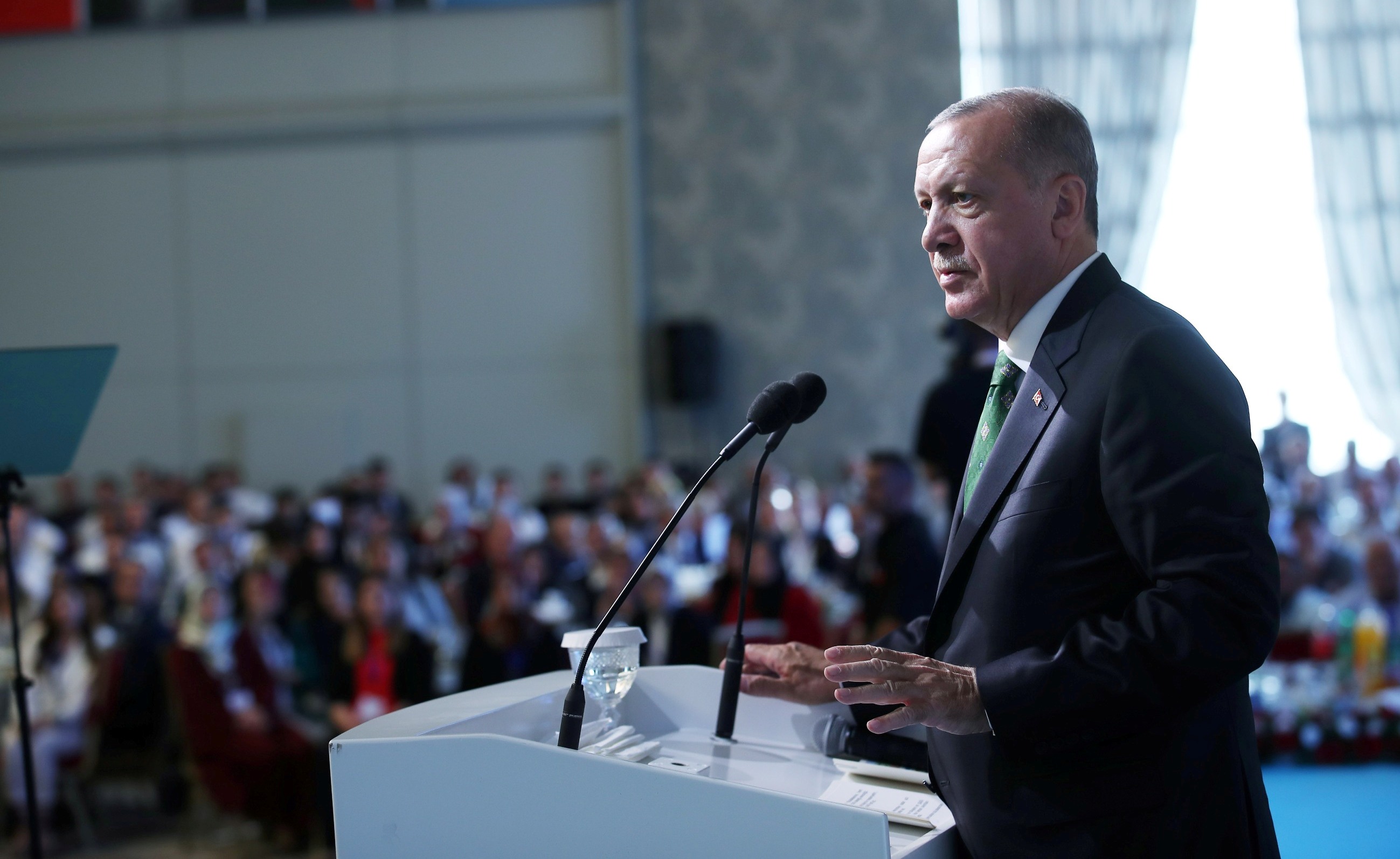 Ülkenin AK Parti iktidarları döneminde geçen son 17 yılının, eğitimden sağlığa, güvenlikten adalete, ulaşımdan enerjiye, sanayiden tarıma, sosyal güvenlikten sosyal yardımlara kadar her alanda başarılara imza atılan, iftihar yılları olduğunu dile getiren Erdoğan, "Şimdi bize düşen son zamanlarda önümüze çıkartılan engeller sebebiyle yaşadığımız sıkıntıları süratle çözmek ve başarı çıtamızı daha yukarıya taşımaktır." diye konuştu.