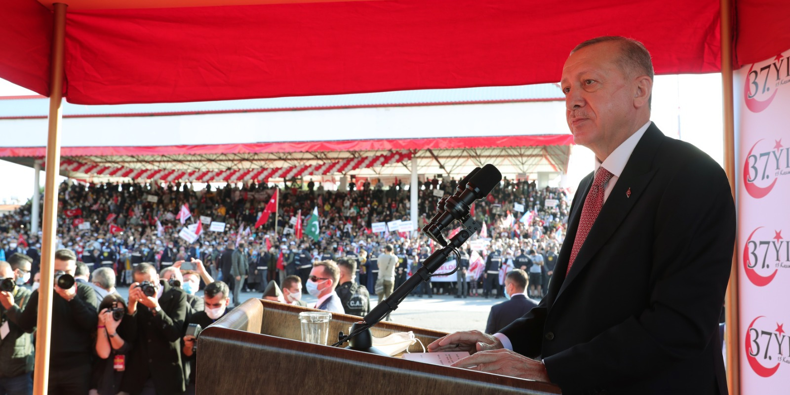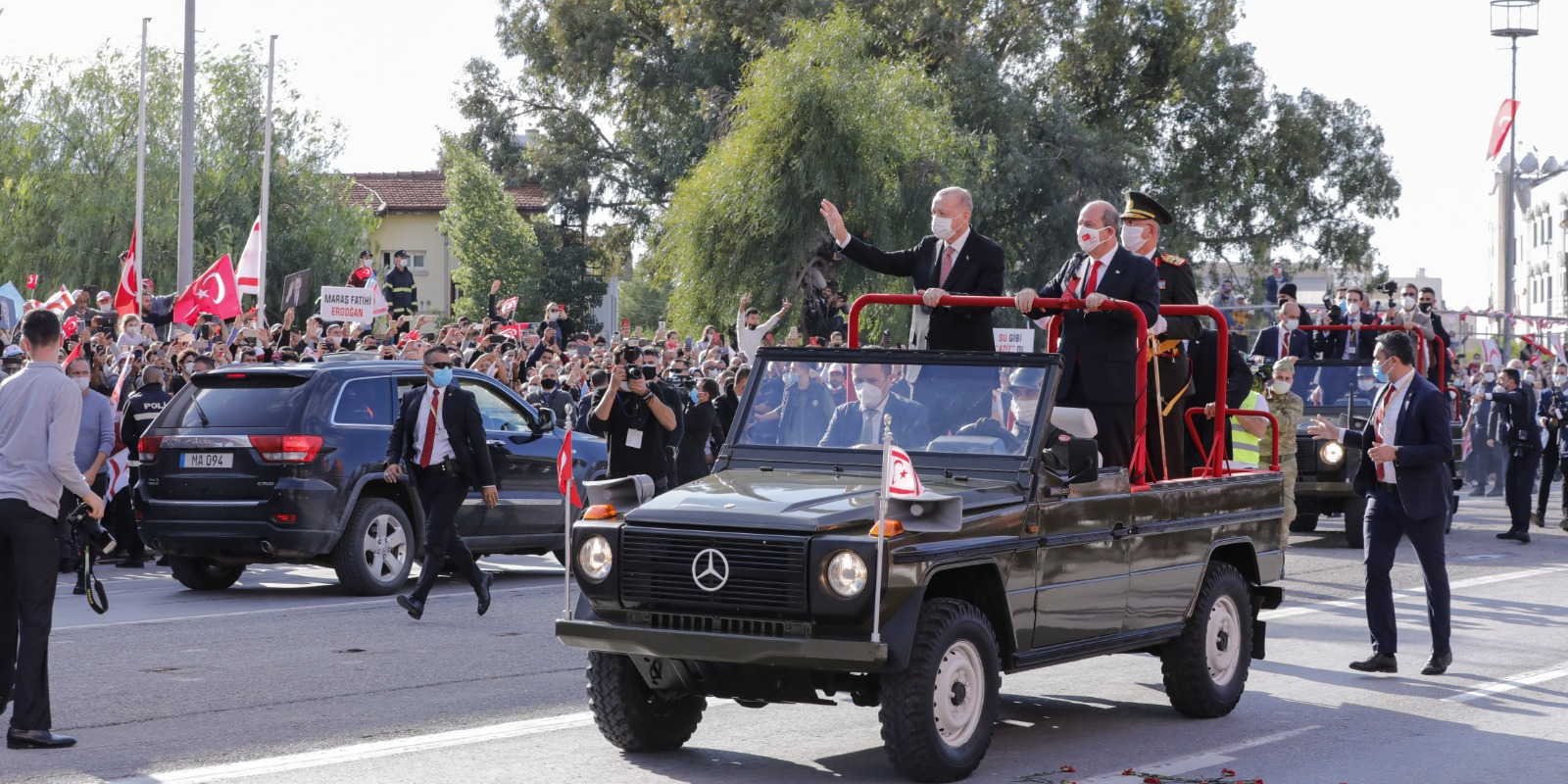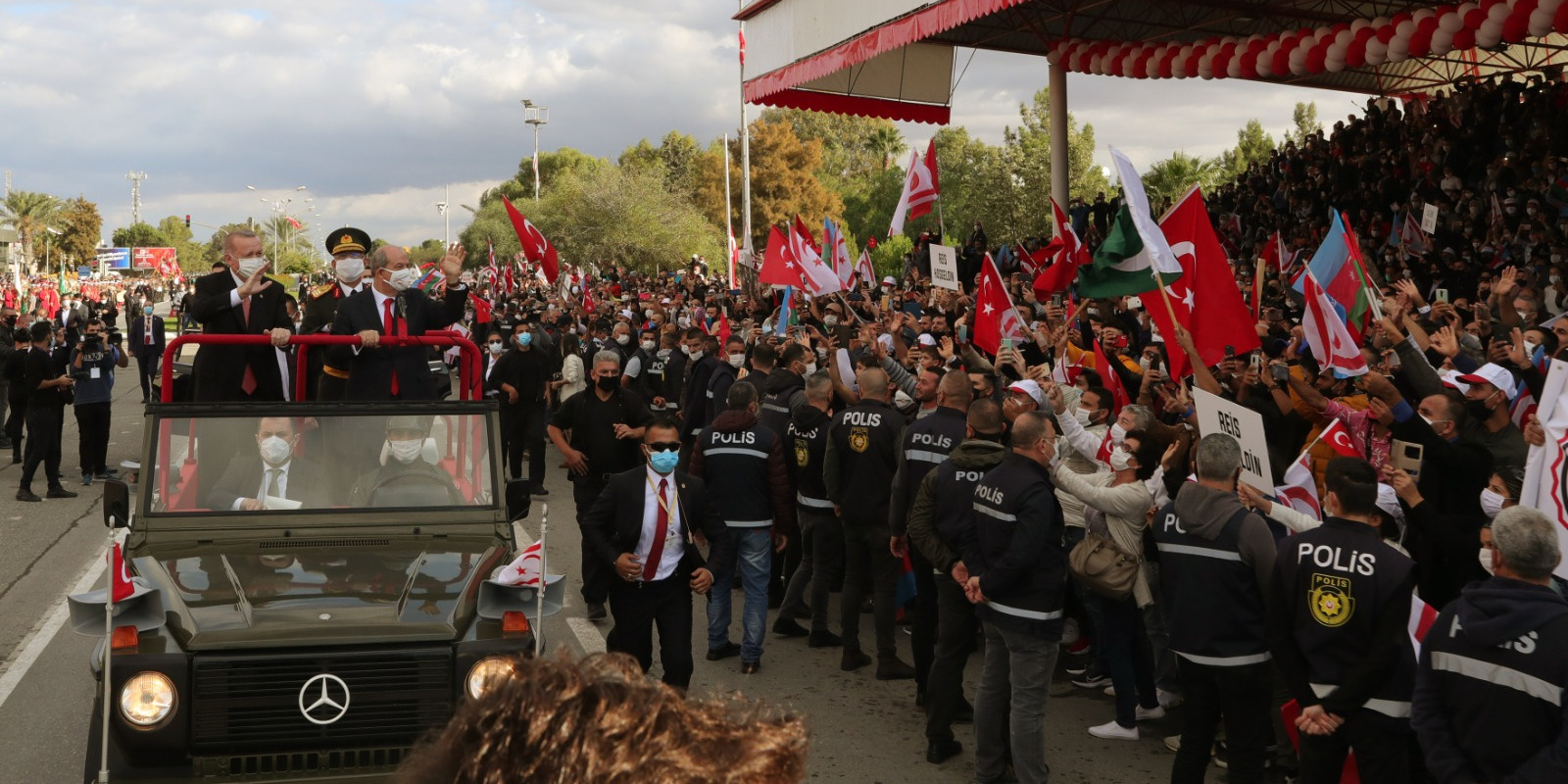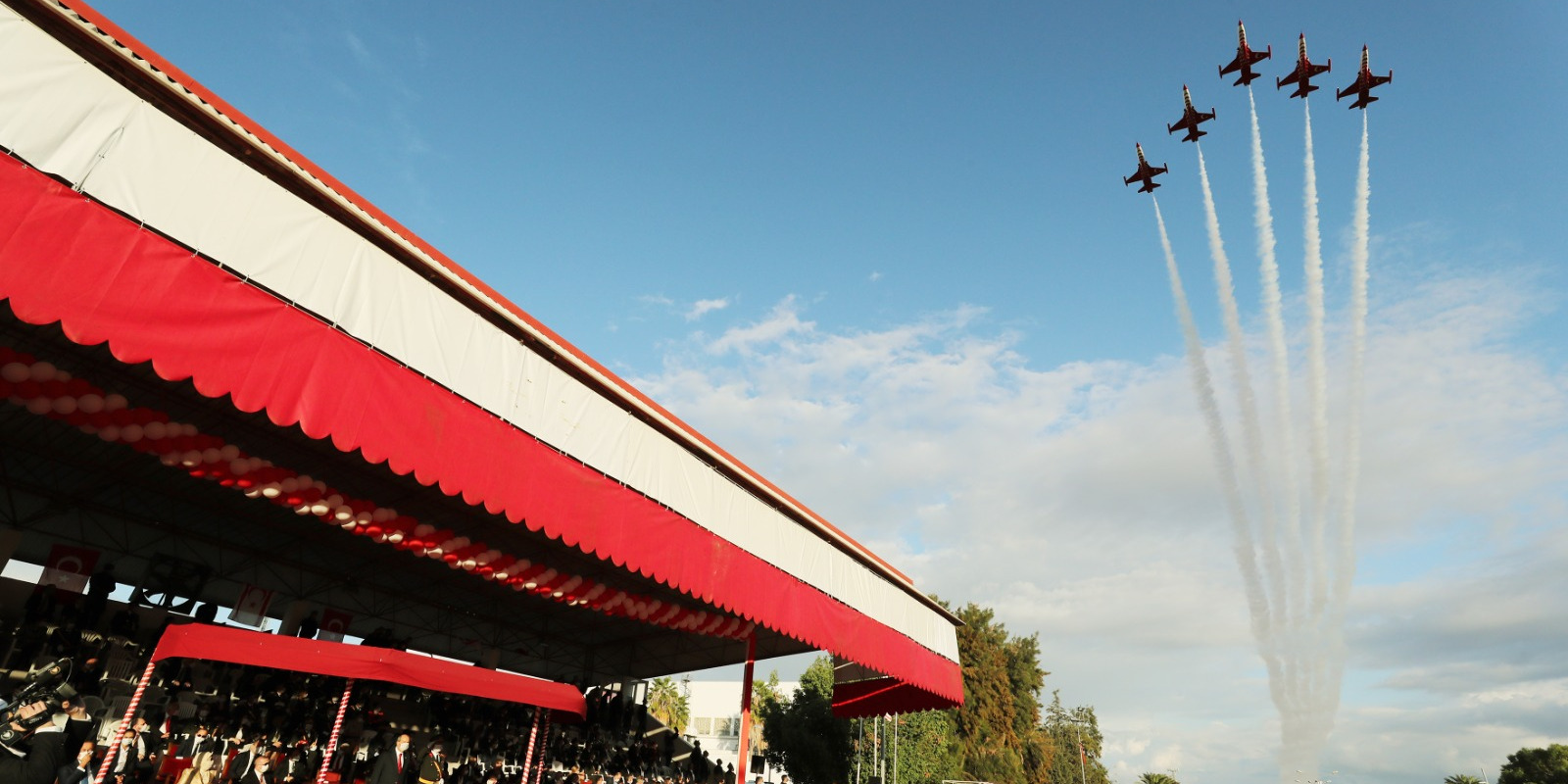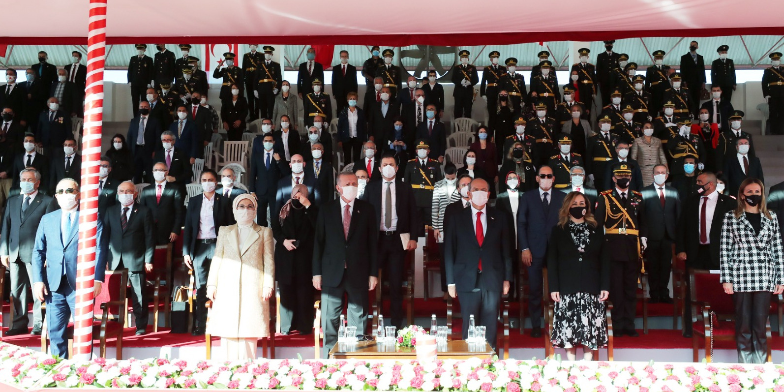 Cumhurbaşkanı Erdoğan, Kuzey Kıbrıs Türk Cumhuriyeti'nin (KKTC) 37'nci kuruluş yıl dönümü dolayısıyla Lefkoşa'daki Dr. Fazıl Küçük Bulvarı'nda gerçekleştirilen geçit törenine katıldı.