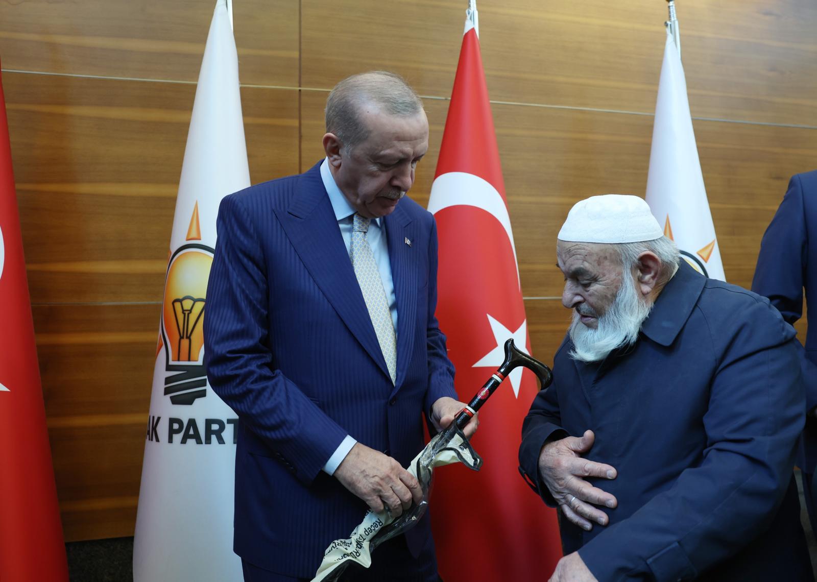 Cumhurbaşkanı Erdoğan, Necati Yılmaz ve Recep Taşkın'a baston hediye etti.
