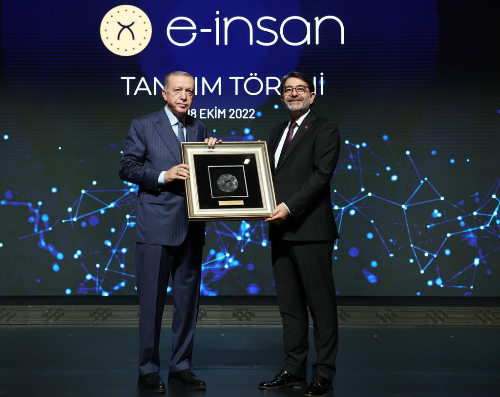 e-İnsan projesinin tüm bu araçların ve daha fazlasının tek çatı altında sunulduğu bütünleşik bir dijital hizmet noktası olduğunu ifade eden Cumhurbaşkanı Erdoğan, "Verilen hizmetler ve kullanılan teknolojik altyapı itibarıyla bu proje, dünyanın en gelişmiş mobil dijital platformu özelliğini haizdir. e-İnsan'a entegre edilen, burası çok önemli, Blockchain teknolojisi sayesinde verilen her hizmet, insanlarımızın sisteme emanet ettiği her beceri ve bilgi, koruma altındadır." diye konuştu.
