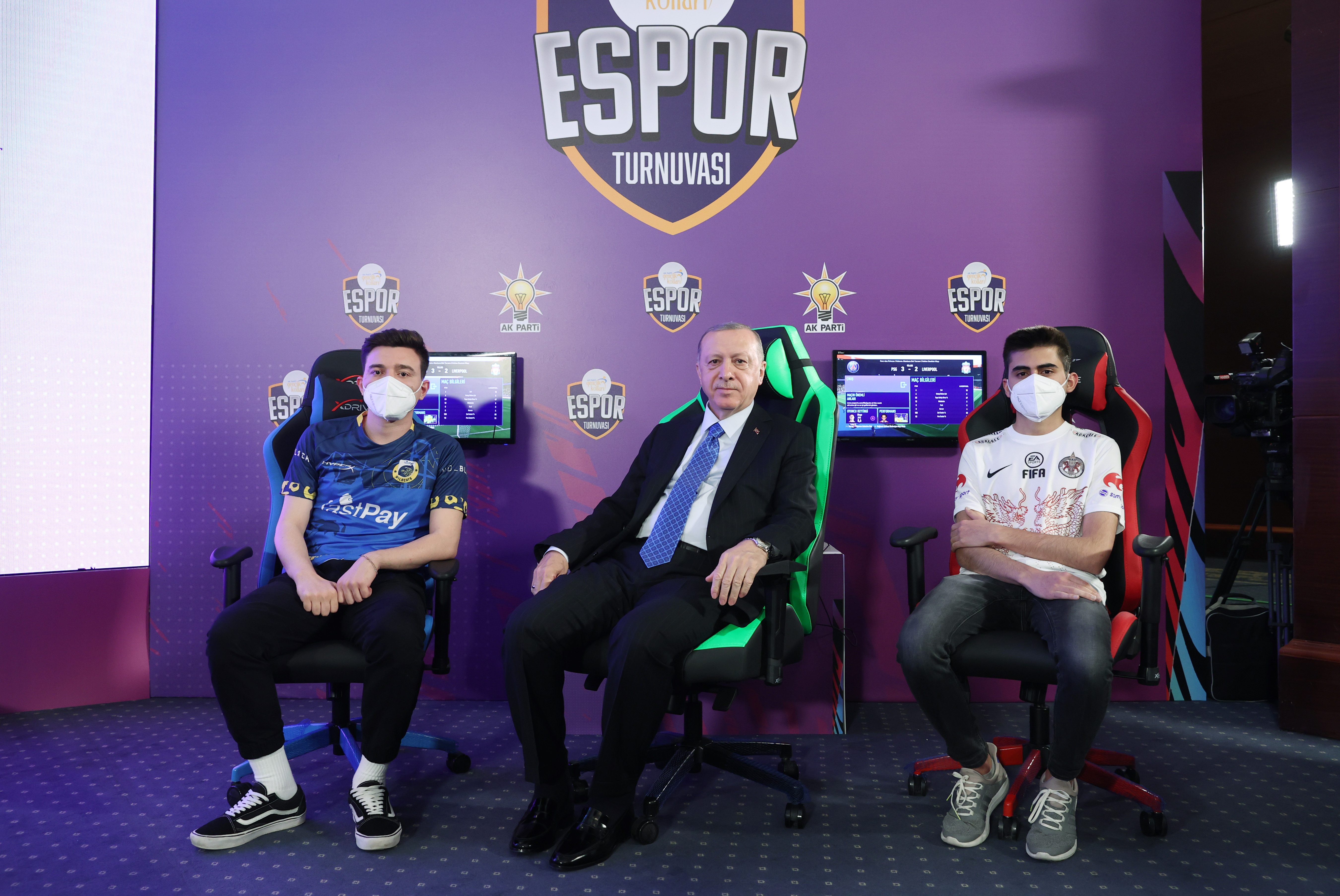 Cumhurbaşkanı Recep Tayyip Erdoğan, AK Parti Gençlik Kolları tarafından düzenlenen e-Spor turnuvasının final maçını izledi.