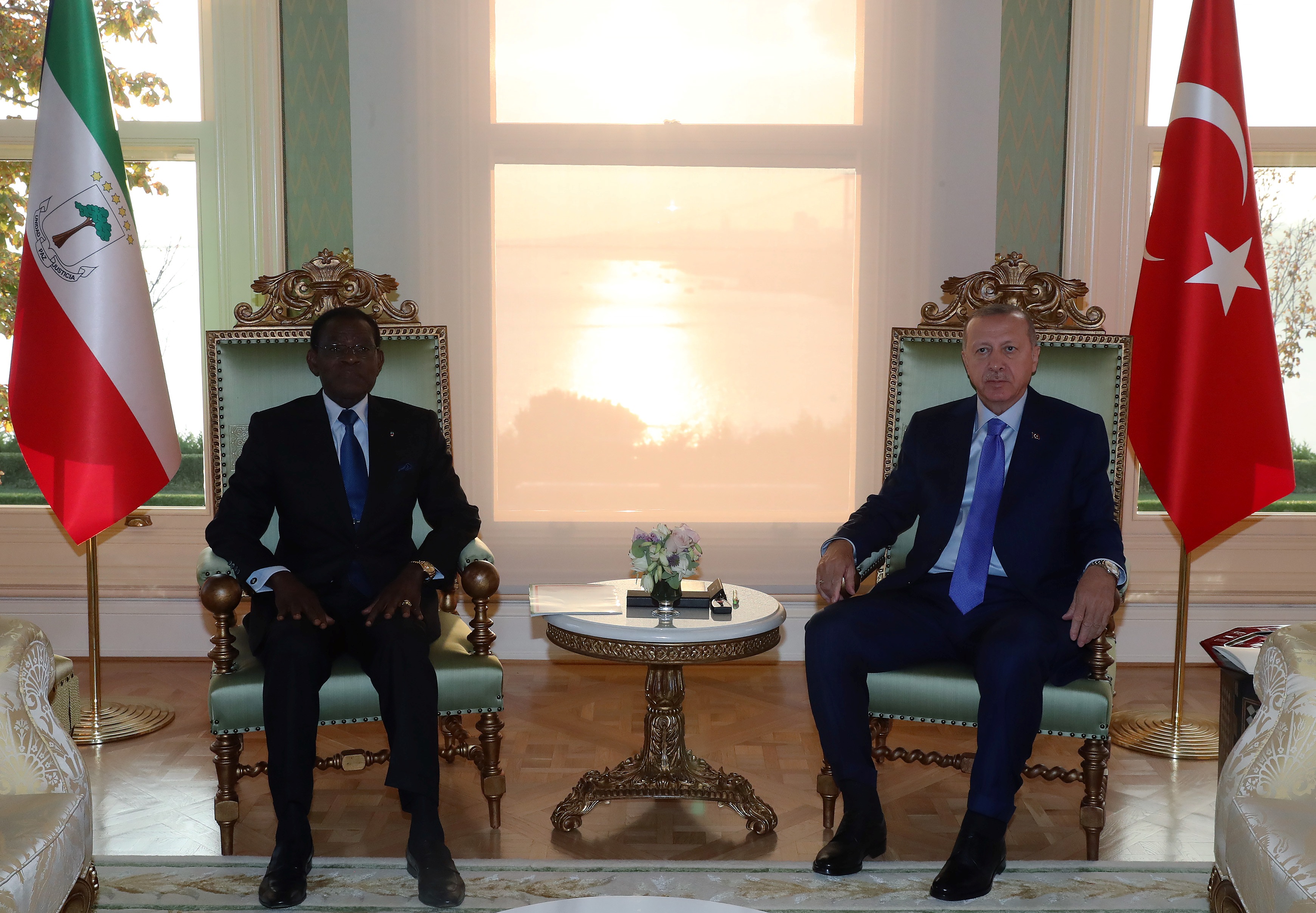 Cumhurbaşkanı Erdoğan ve Ekvator Ginesi Cumhurbaşkanı Mbasogo'nun basına kapalı gerçekleşen görüşmesi yaklaşık 1,5 saat sürdü.