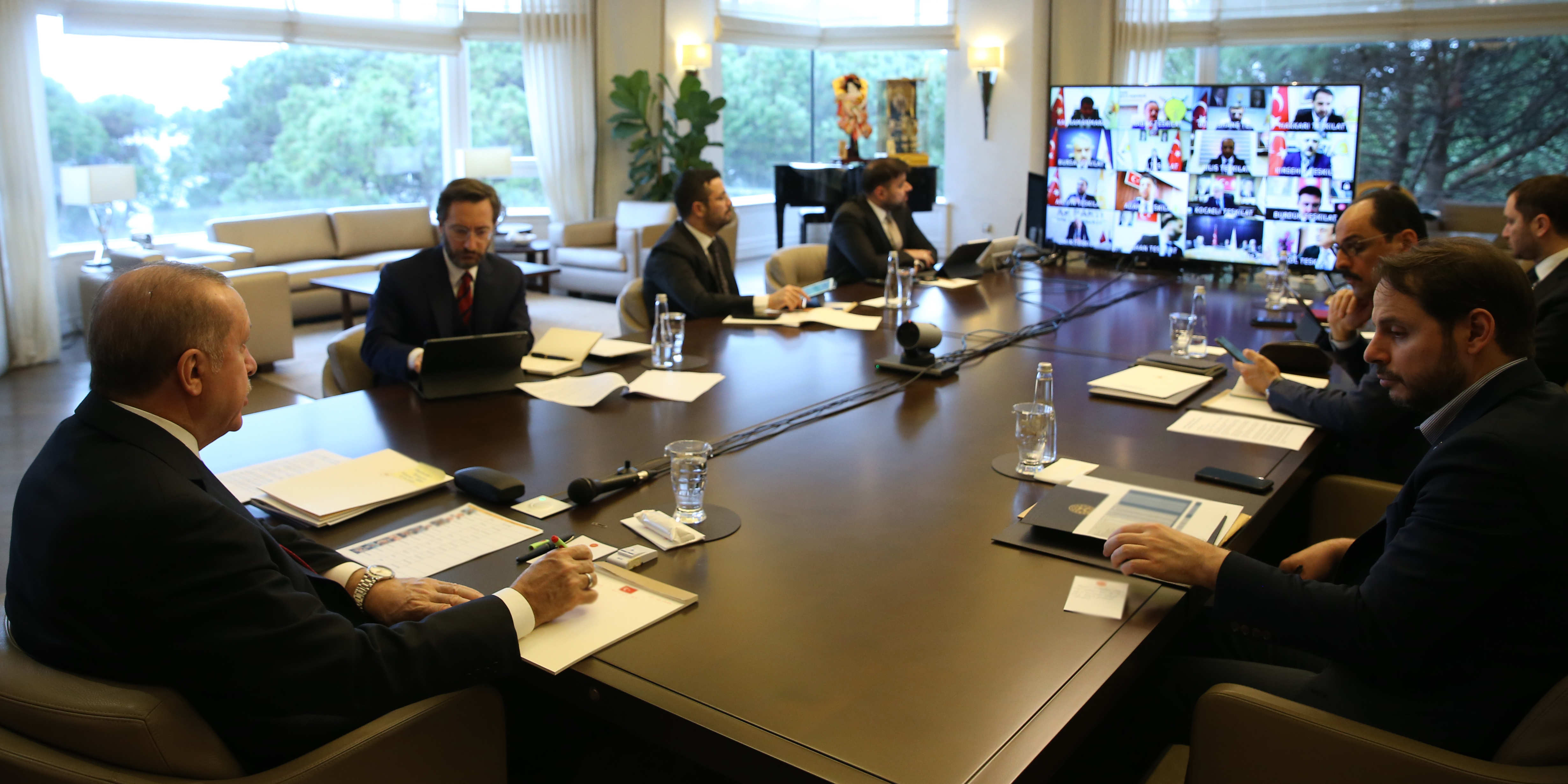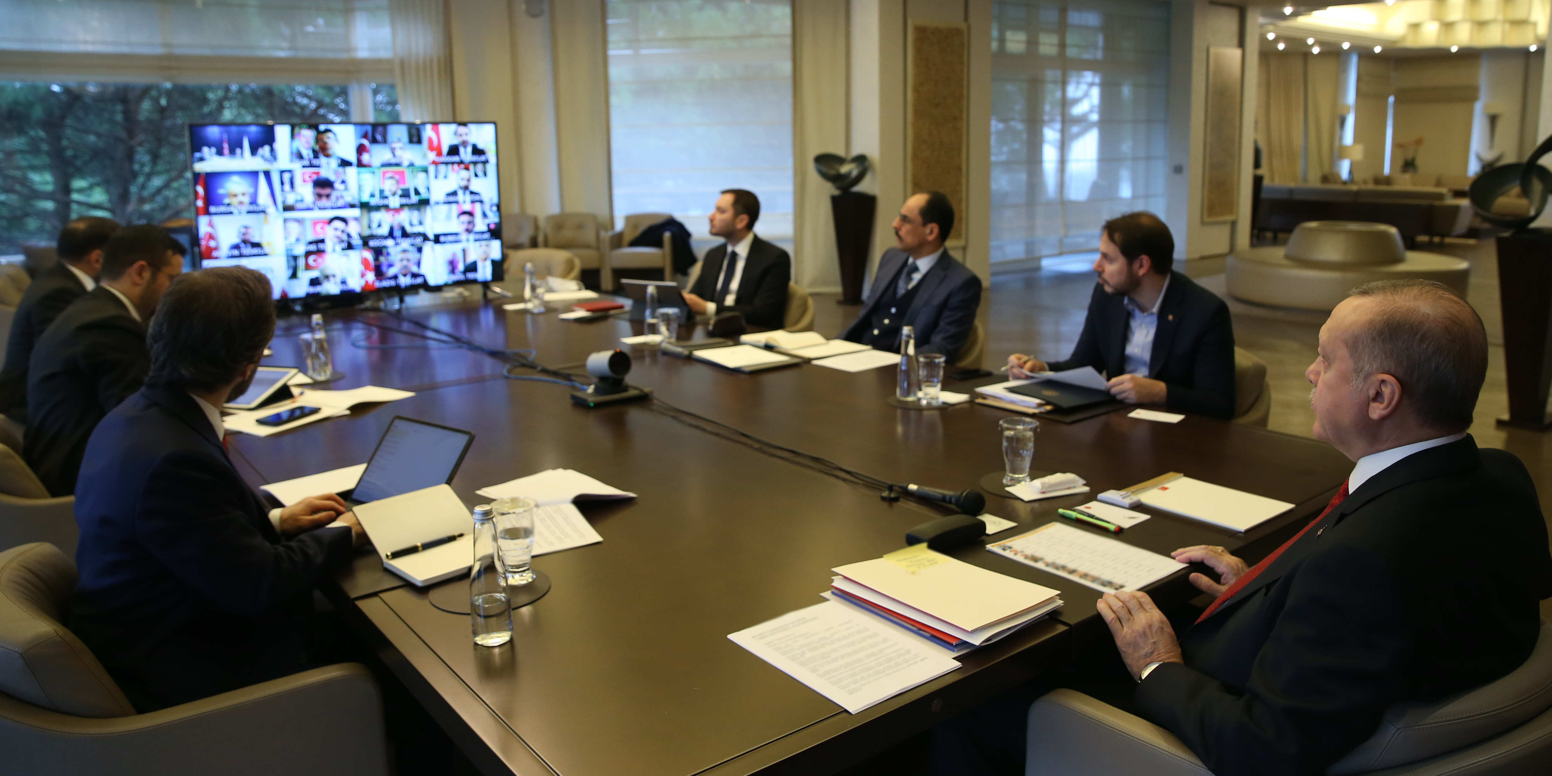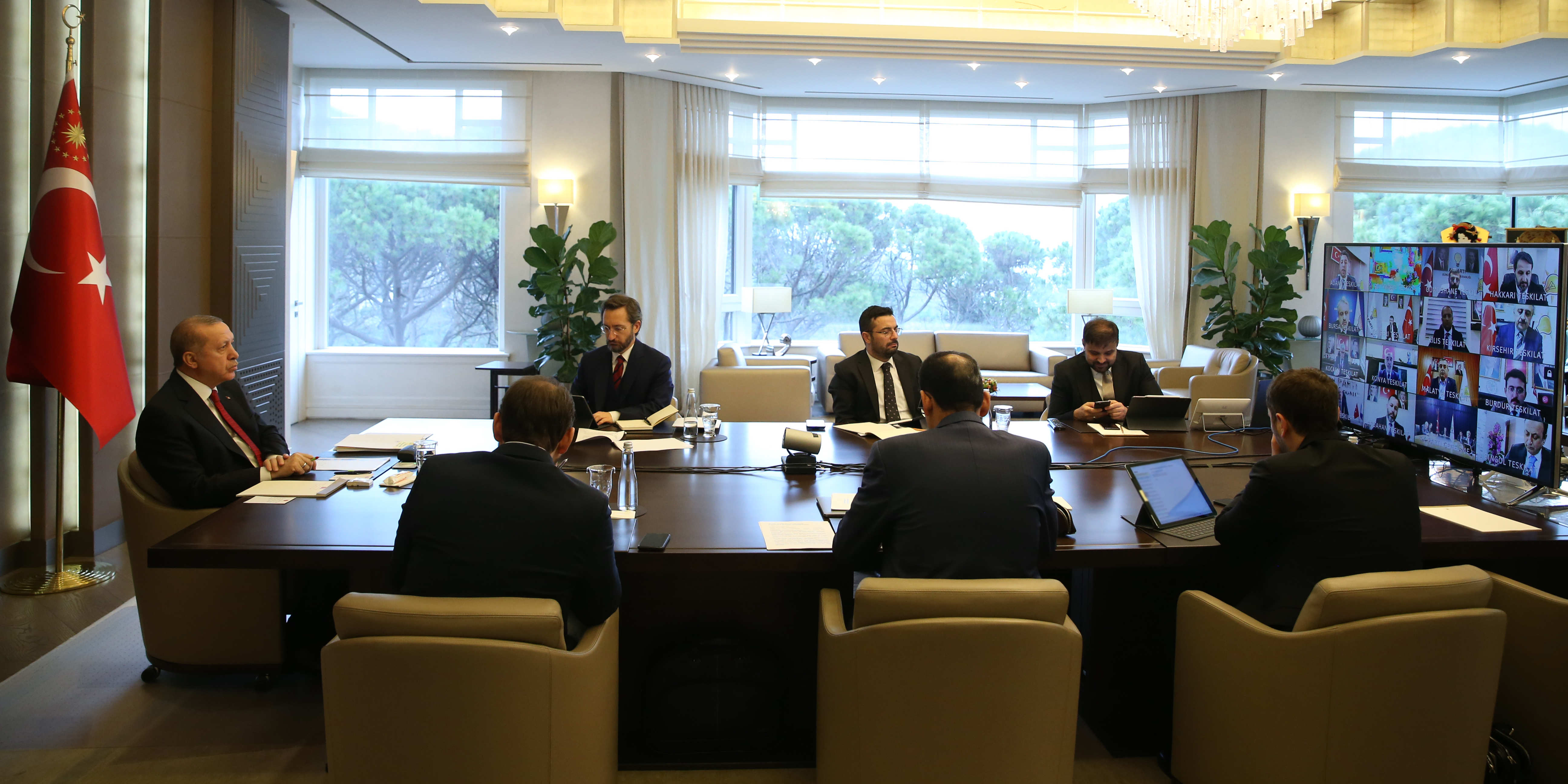 Cumhurbaşkanı ve AK Parti Genel Başkanı Recep Tayyip Erdoğan, Tarabya'daki Huber Köşkü'nde, video konferans yöntemiyle AK Parti İl Başkanları ile toplantı yaptı.