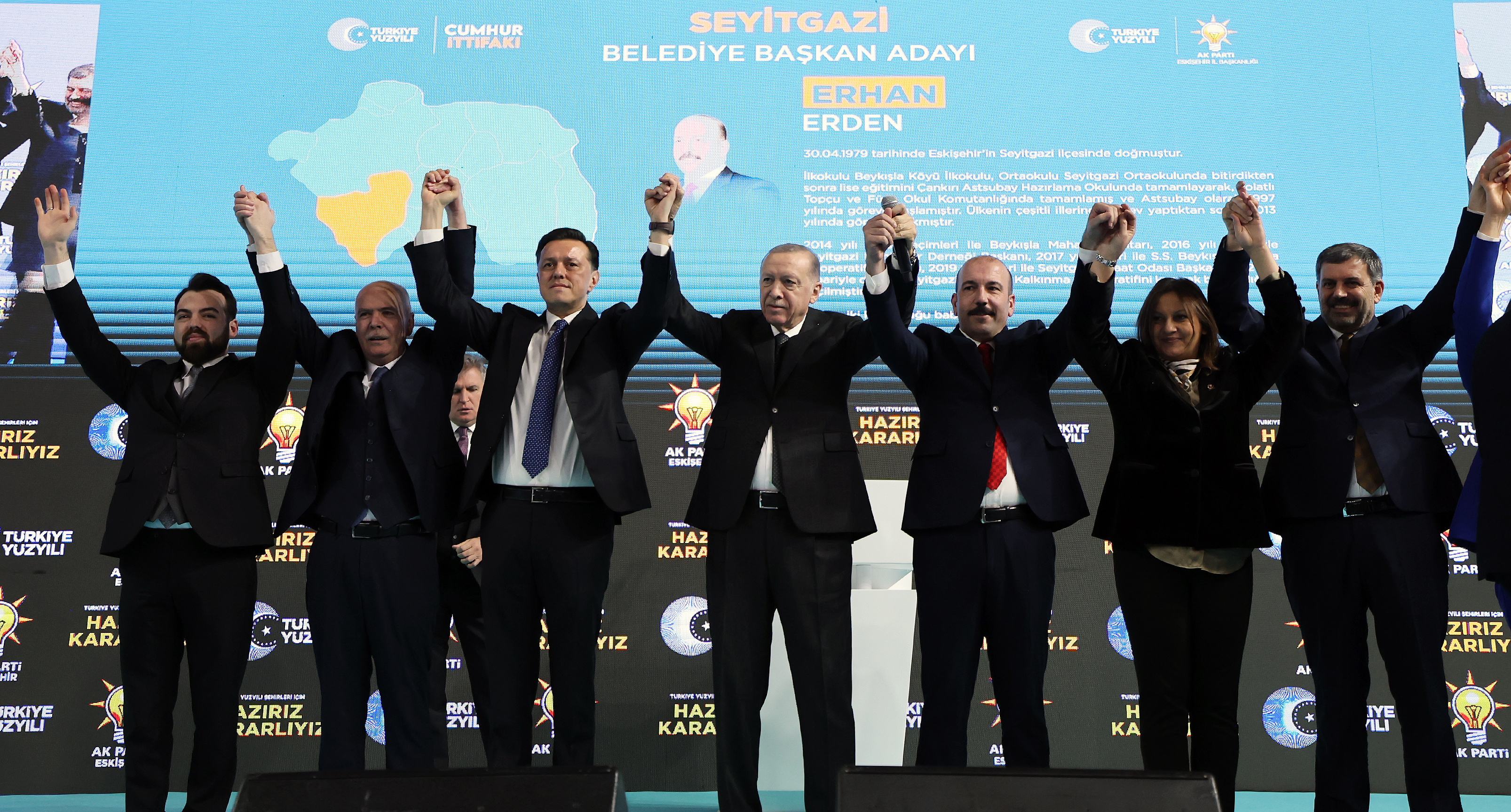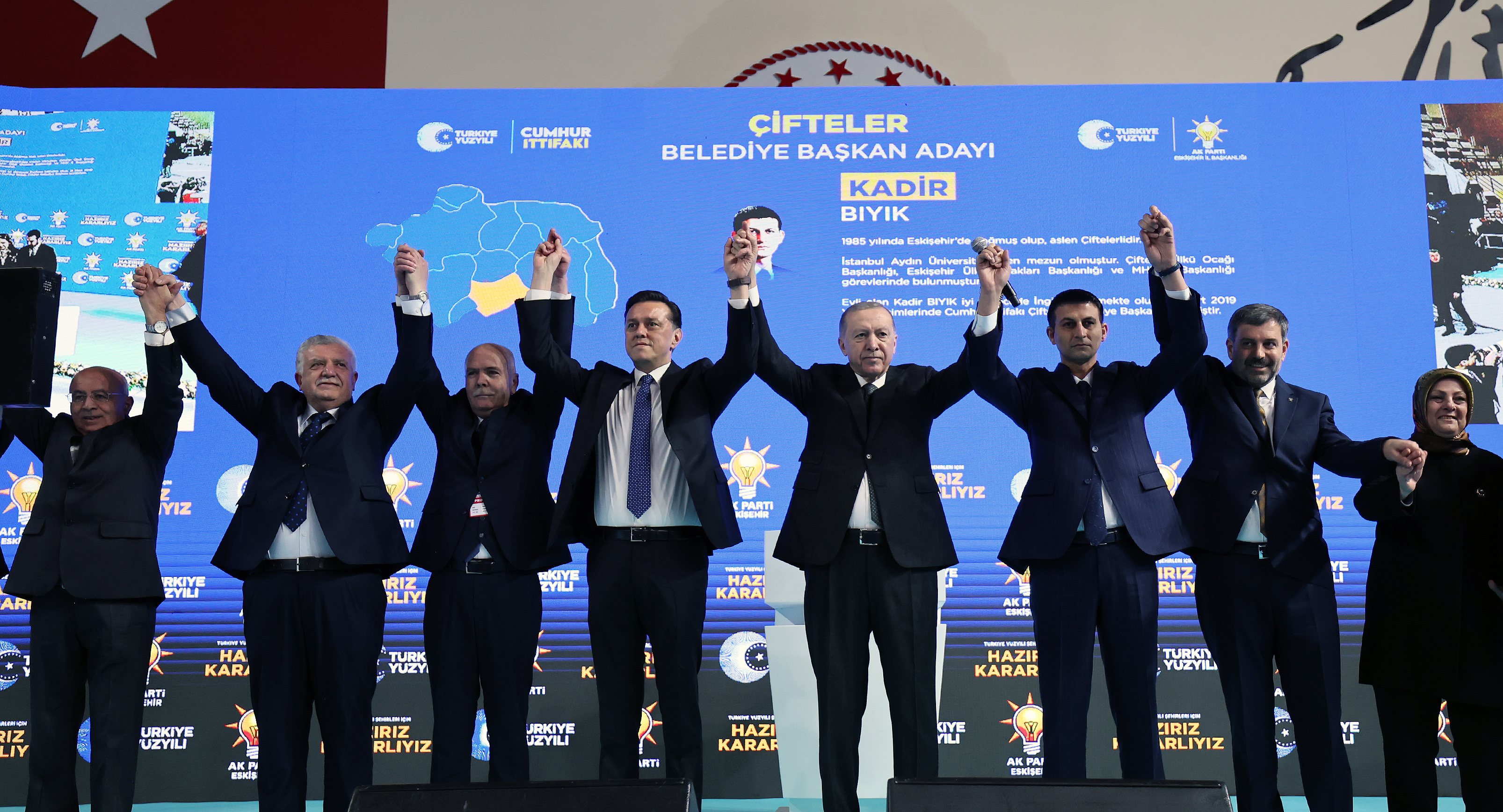 Eskişehir Büyükşehir Belediye Başkan adayı Nebi Hatipoğlu'nun ardından ilçelerdeki adayları açıklayacaklarını belirten Cumhurbaşkanı Erdoğan, AK Parti ve Cumhur İttifakı olarak Eskişehir'de, büyükşehir ve ilçeleriyle destan yazacakları bir seçim geçirileceğine inandığını, Eskişehir'in 31 Mart'ta tercihini gerçek belediyecilikten yana kullanacağına şüphe duymadığını söyledi.