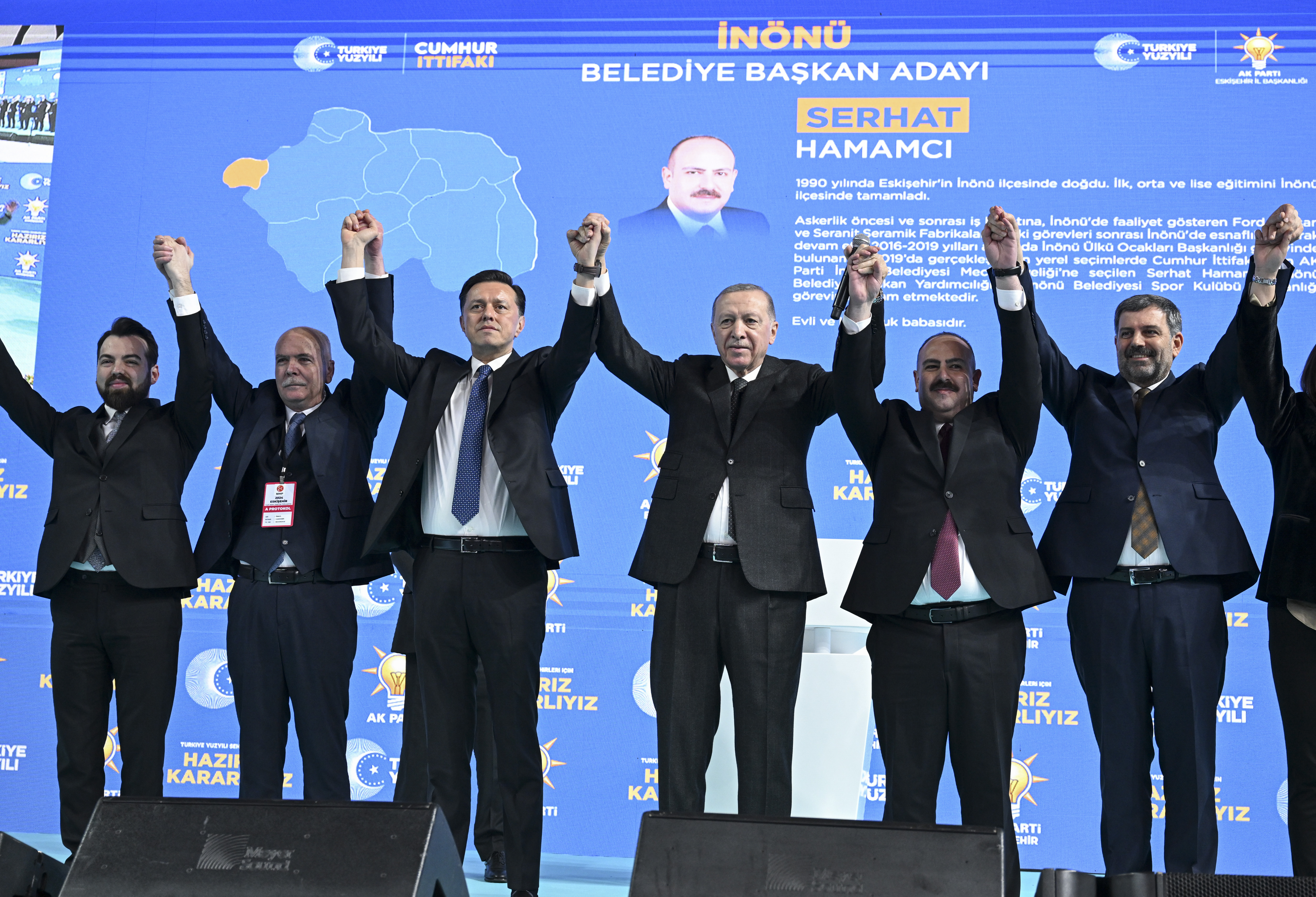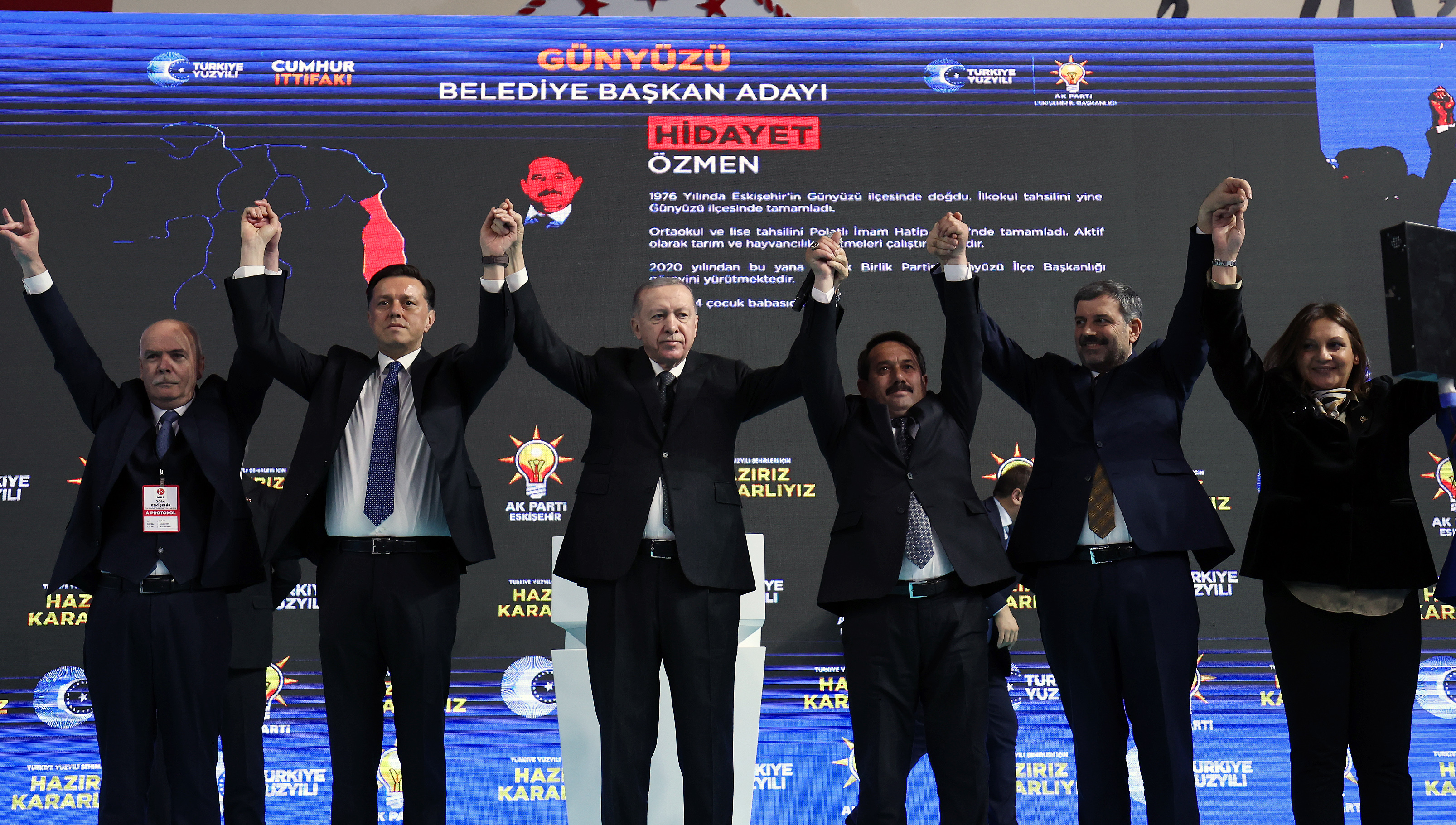 Cumhurbaşkanı Erdoğan, konuşmasının ardından ilçe belediye başkan adaylarını alfabetik sıraya göre çağırarak tanıttı.