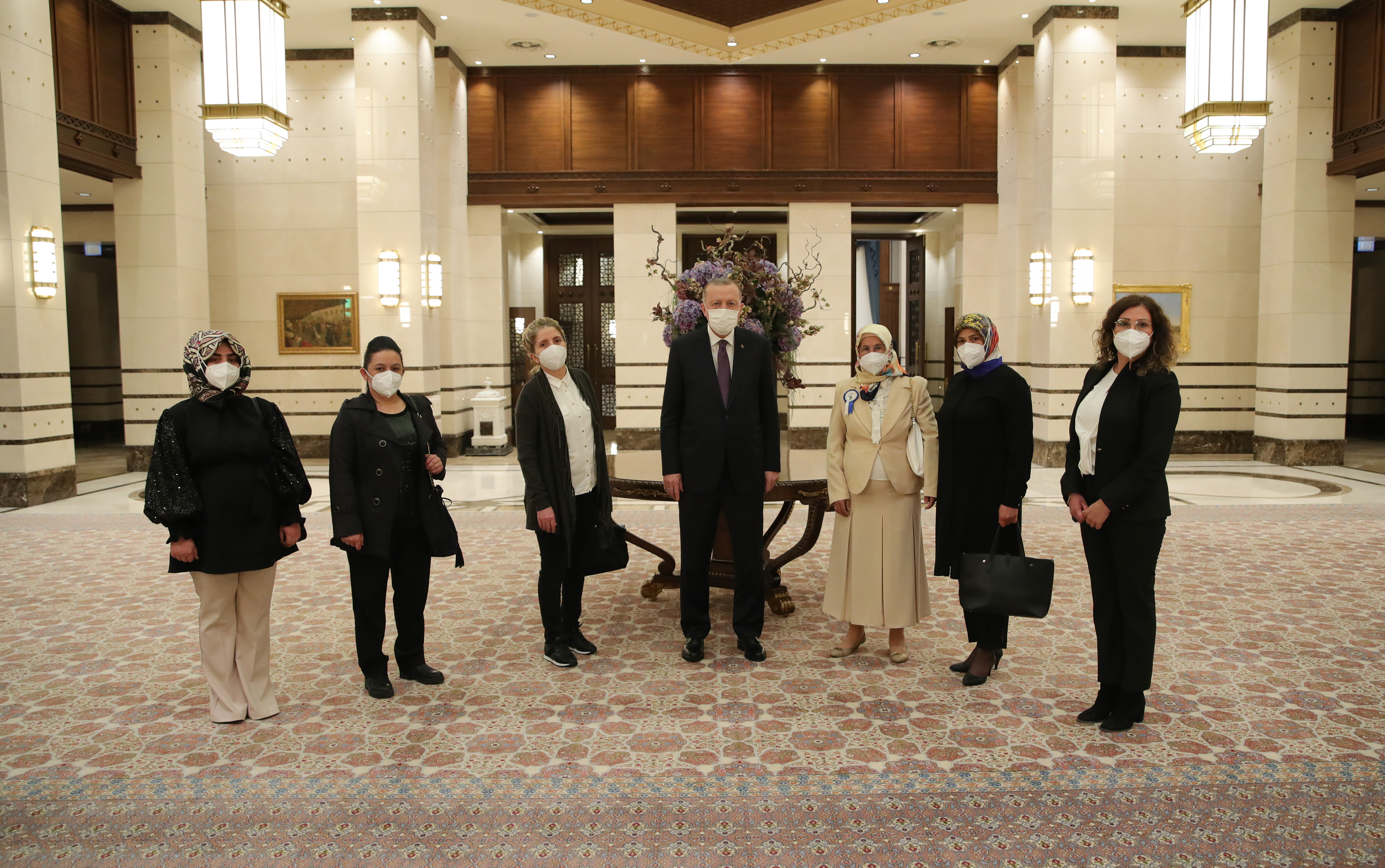Cumhurbaşkanı Recep Tayyip Erdoğan, esnaflarla Cumhurbaşkanlığı Külliyesi’nde iftar yaptı. Cumhurbaşkanı Erdoğan, iftar yemeği sonrasında esnaflarla hatıra fotoğrafı çektirdi.