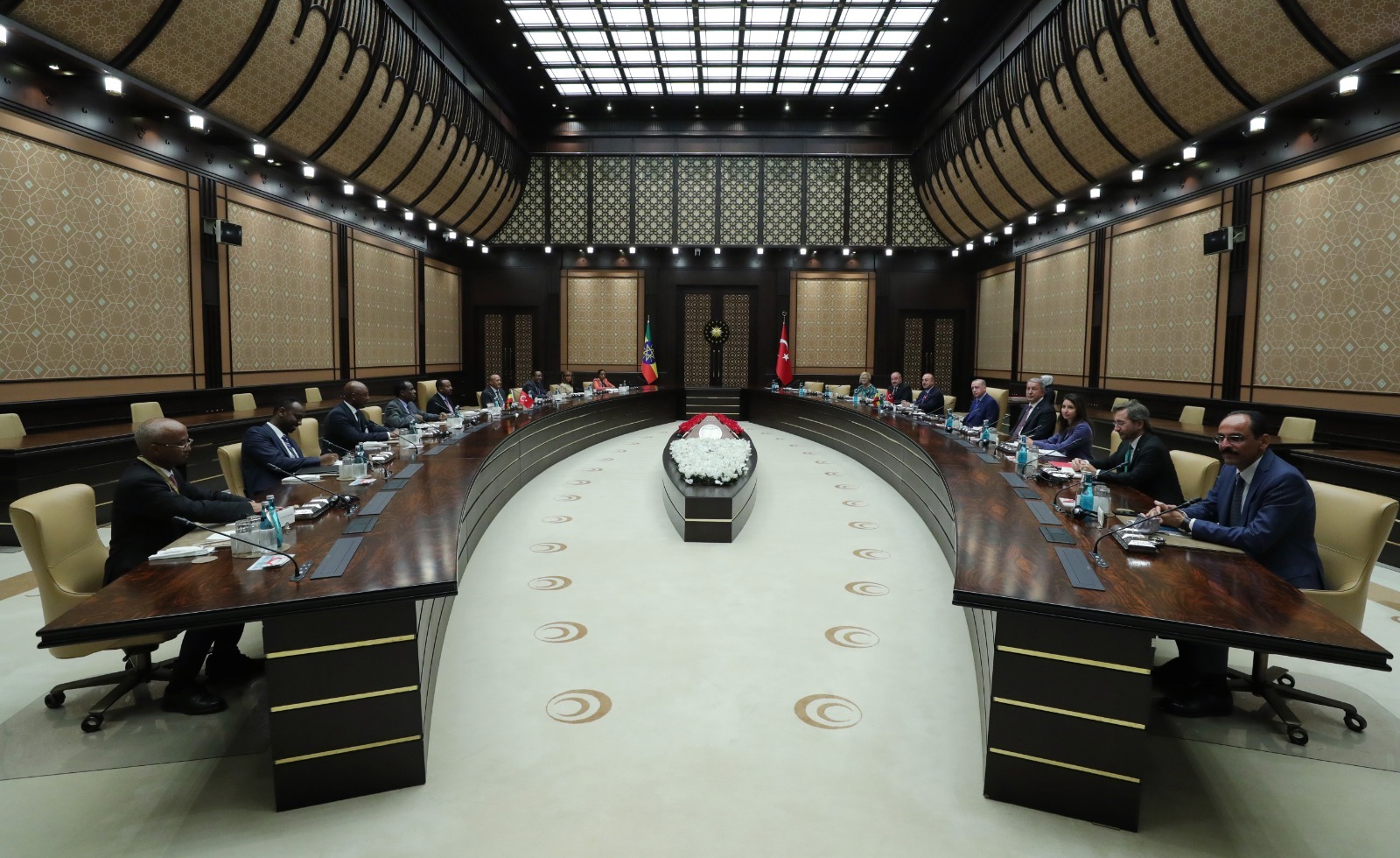 Törenin ardından baş başa görüşen Cumhurbaşkanı Erdoğan ve Etiyopya Federal Cumhuriyeti Başbakanı Ali, daha sonra heyetlerarası görüşmeye başkanlık etti.