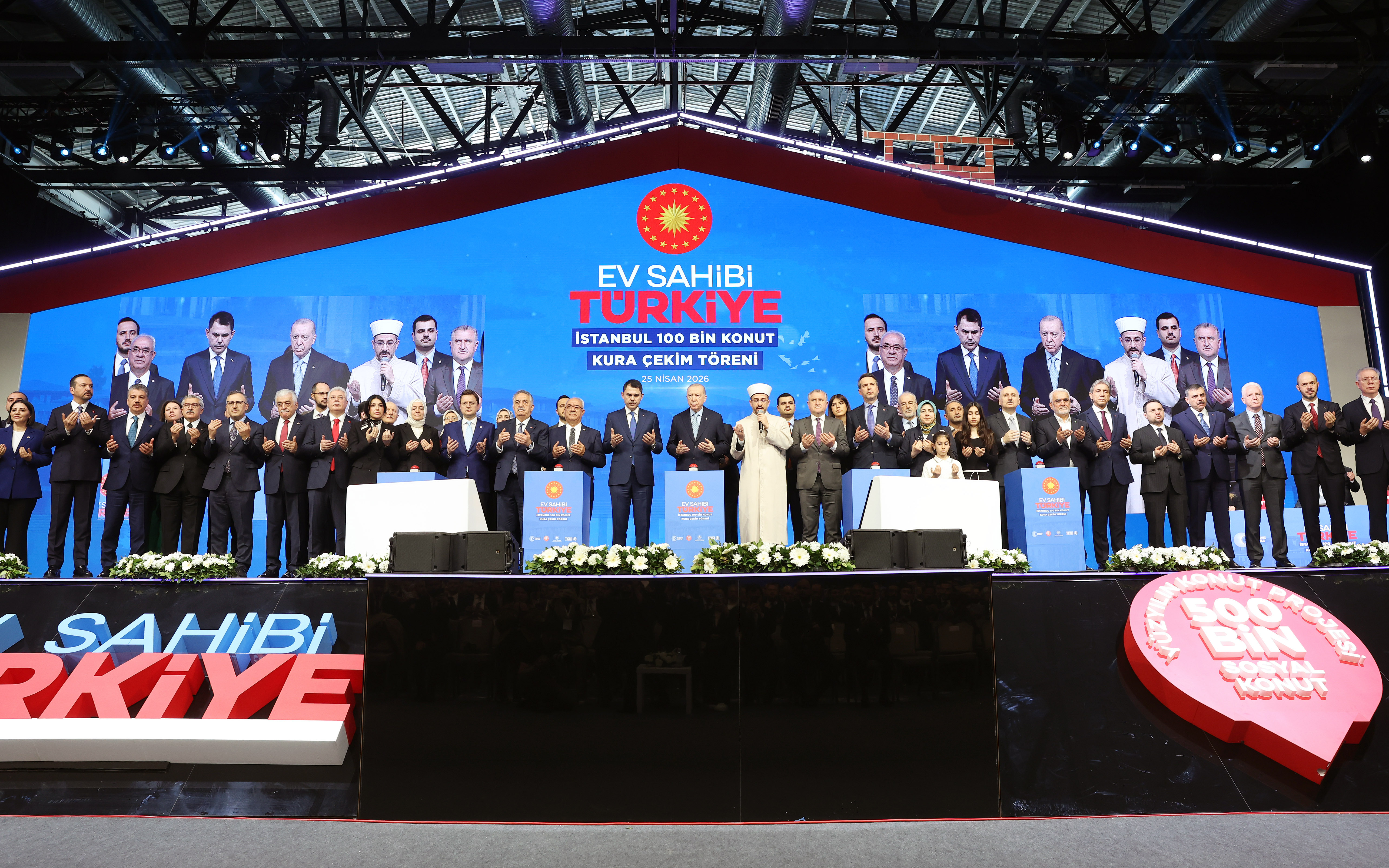 “Cumhurbaşkanımız Sayın Recep Tayyip Erdoğan, Ev Sahibi Türkiye: İstanbul Kura Çekim Töreni’nde yaptığı konuşmada İstanbul’un tarihî ve sembolik anlamına dikkat çekerek proje kapsamında İstanbul’a ayrılan 100 bin konutun hak sahiplerinin kura ile belirleneceğini ifade etti.