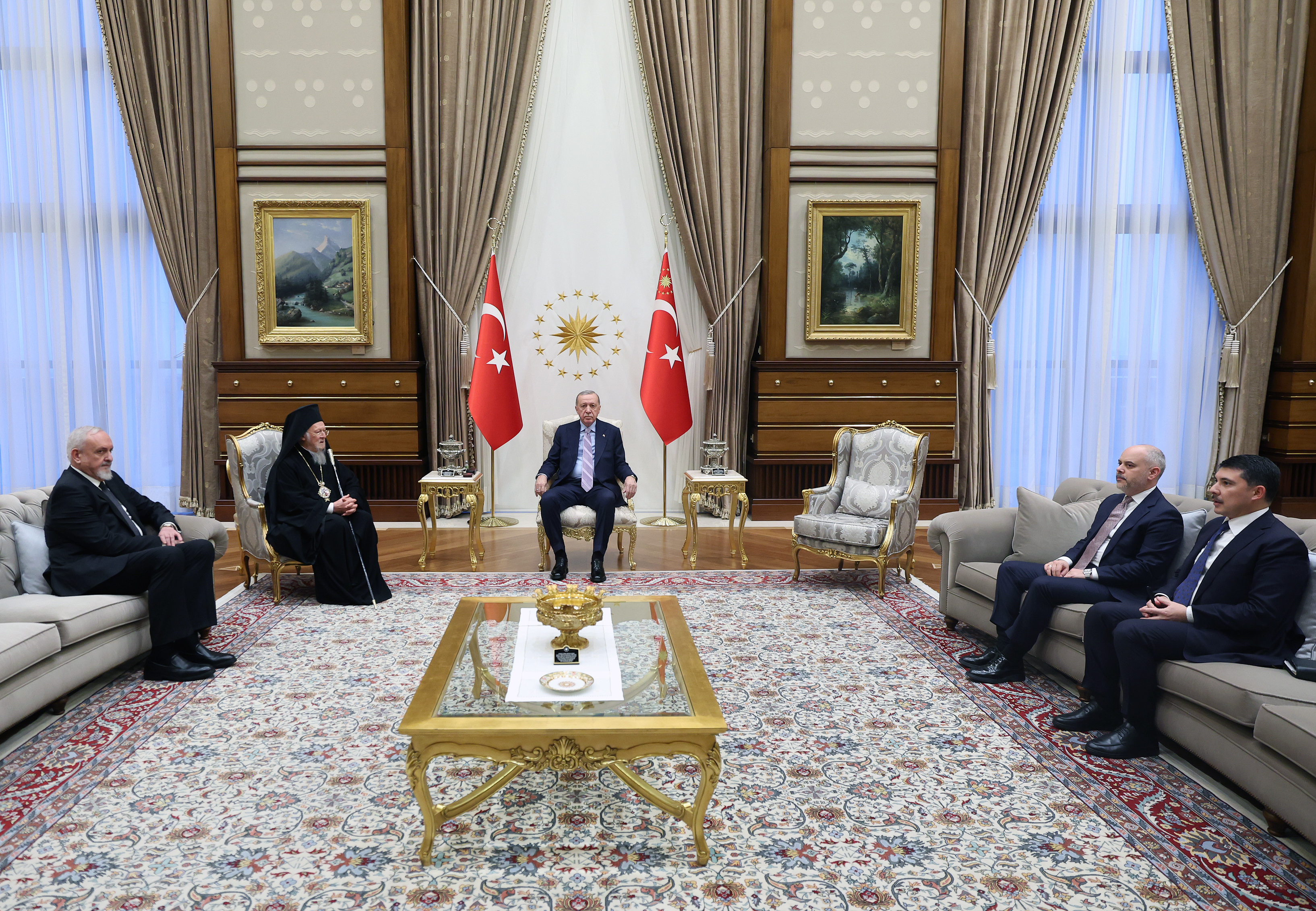 Cumhurbaşkanı Recep Tayyip Erdoğan, Fener Rum Patriği Bartholomeos’u Cumhurbaşkanlığı Külliyesinde kabul etti.