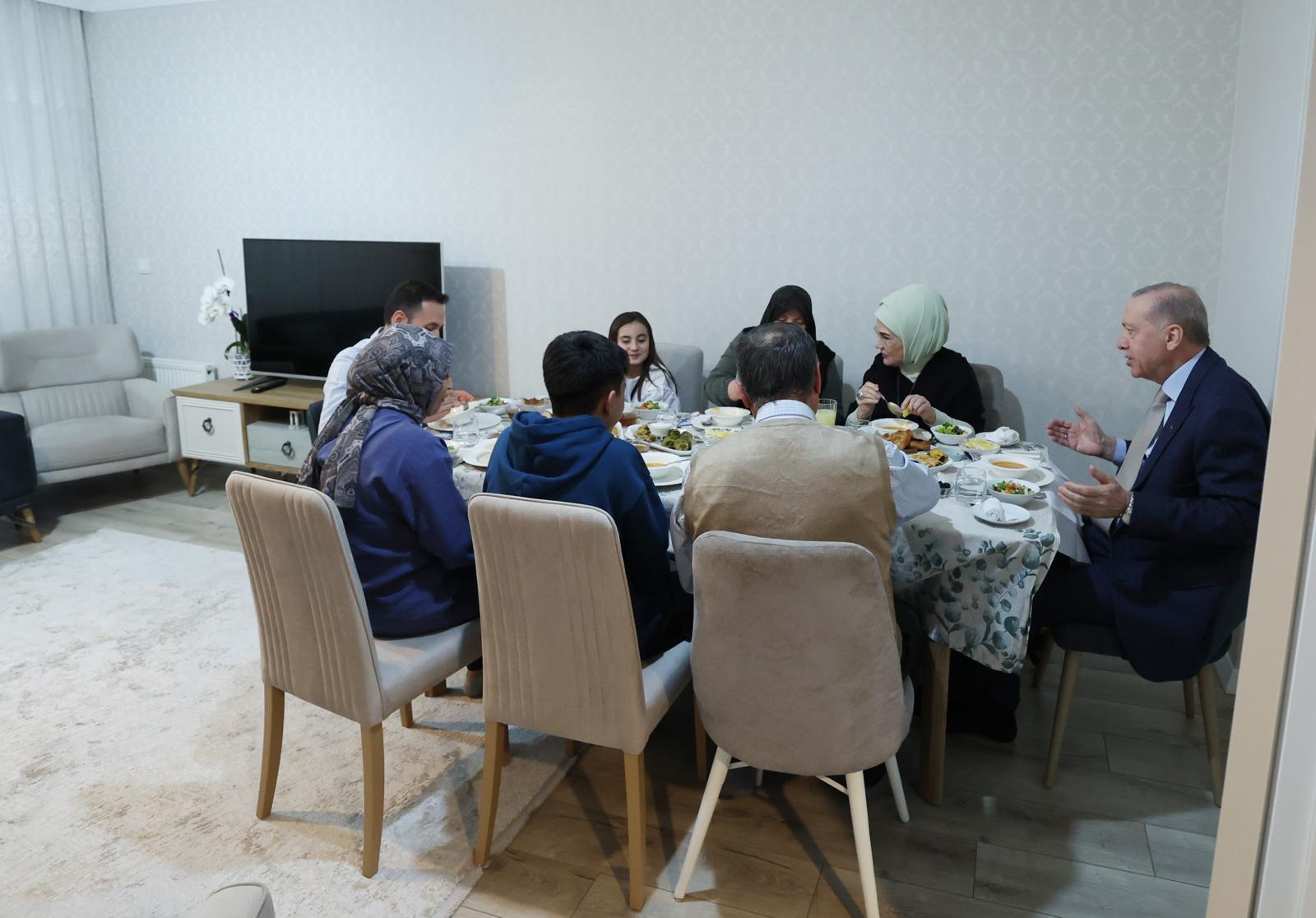 Cumhurbaşkanı Recep Tayyip Erdoğan ve eşi Emine Erdoğan, Murat ve Alime Fidan ailesini ziyaret ederek iftar sofrasına konuk oldu.