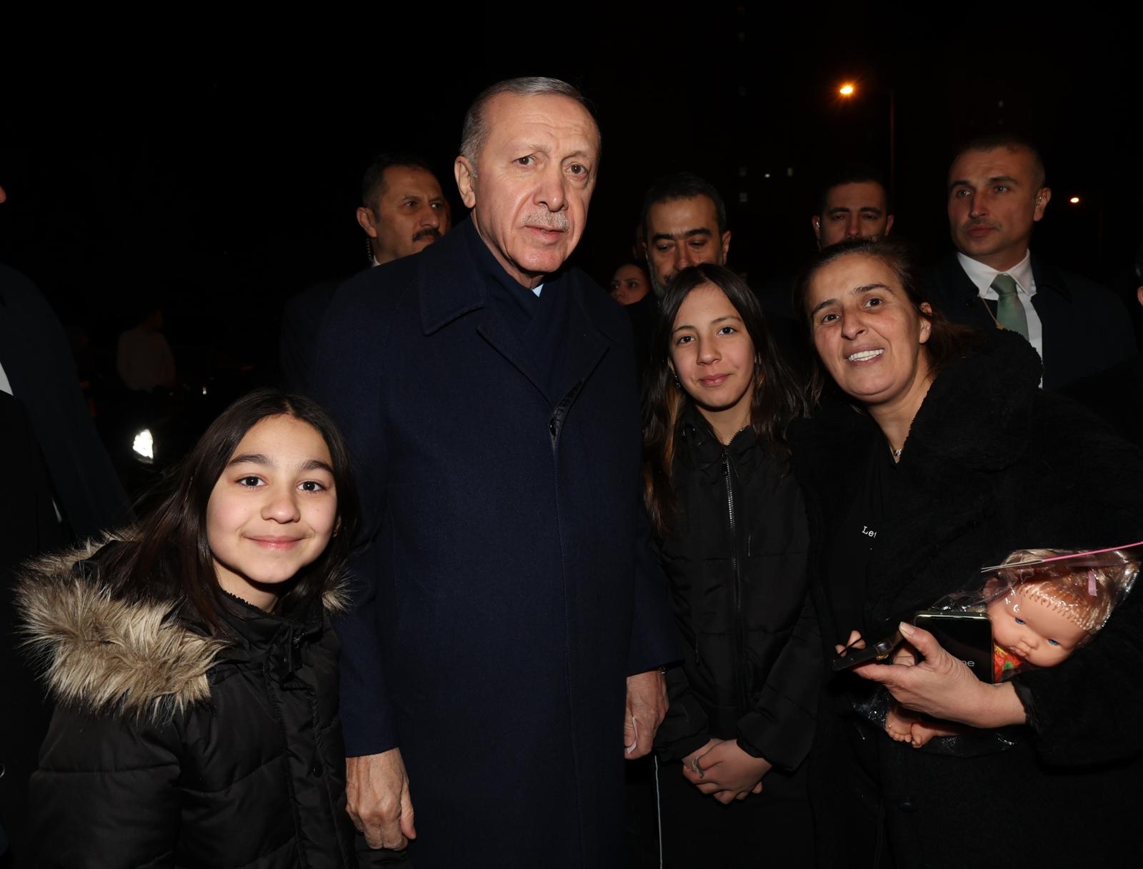 Cumhurbaşkanı Erdoğan ve eşi, Ankara'da Fidan ailesinin yaşadığı binaya geldiğinde çevredeki vatandaşları selamladı.