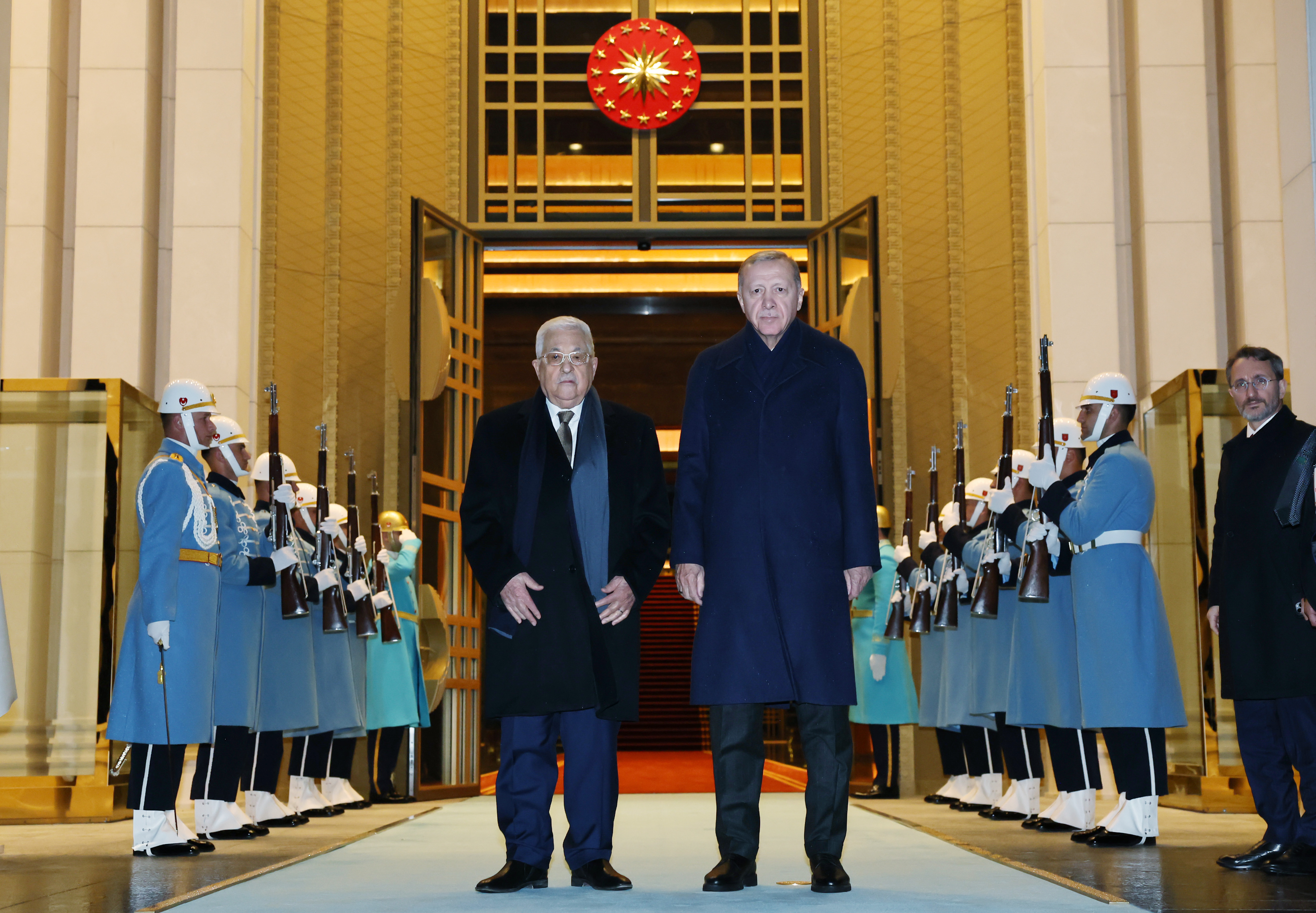 Cumhurbaşkanı Erdoğan, Abbas'ı Cumhurbaşkanlığı Külliyesi girişinde karşıladı.