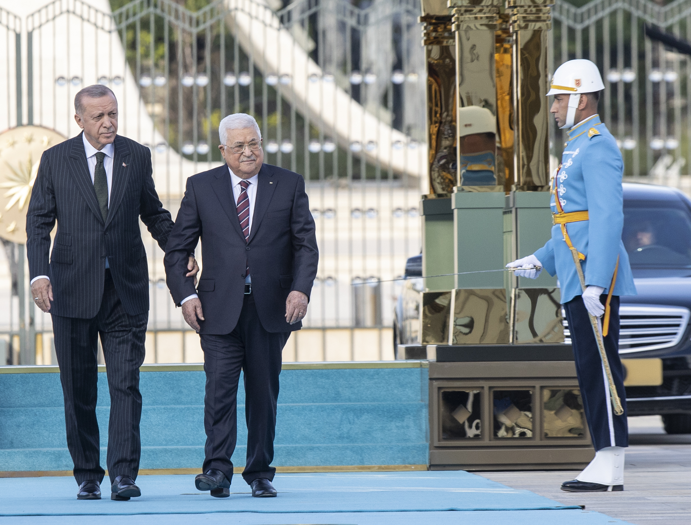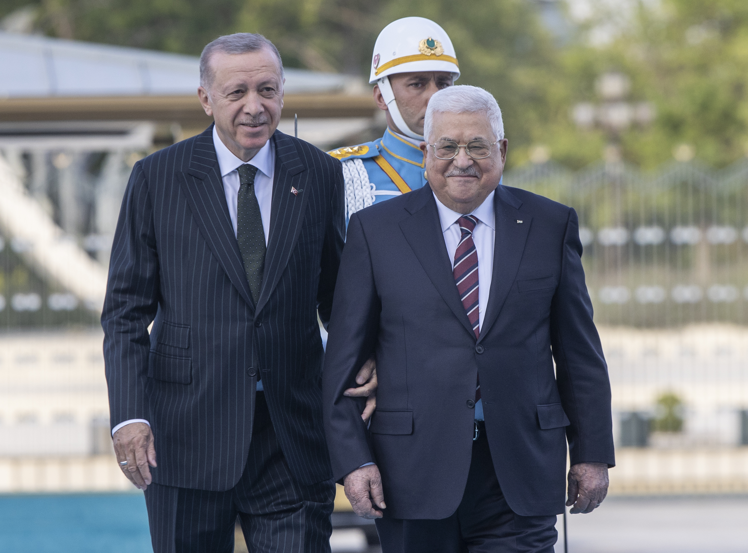 Cumhurbaşkanı Recep Tayyip Erdoğan, Türkiye'ye resmî ziyarette bulunan Filistin Devlet Başkanı Mahmud Abbas'ı, Cumhurbaşkanlığı Külliyesi’nde resmî törenle karşıladı.