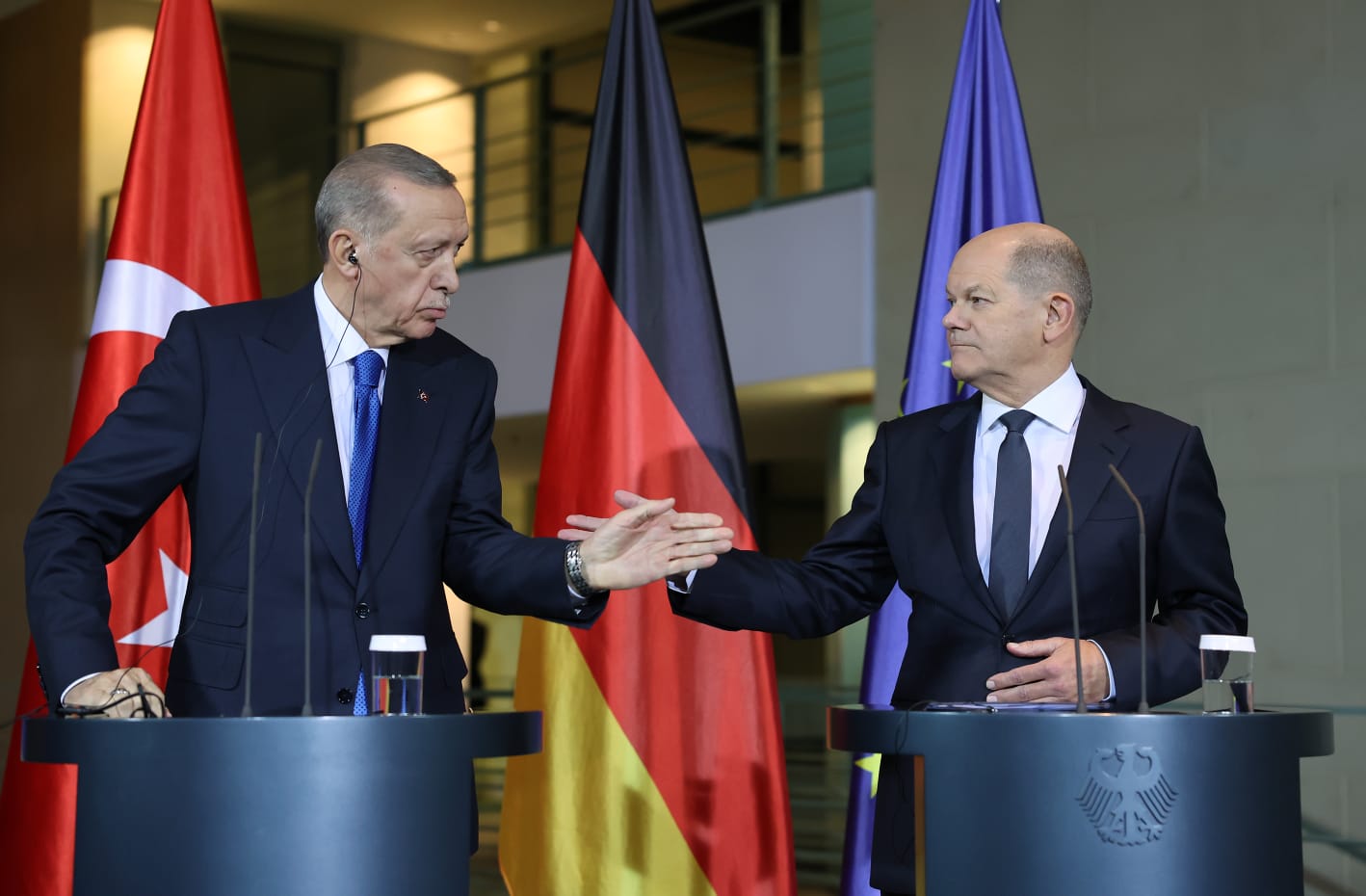 Scholz'un daveti üzerine gerçekleştirdiği ziyarete büyük önem verdiğini ifade eden Cumhurbaşkanı Erdoğan, Scholz ile Türkiye ve Almanya arasındaki ilişkileri tüm yönleriyle ele alacaklarını söyledi.